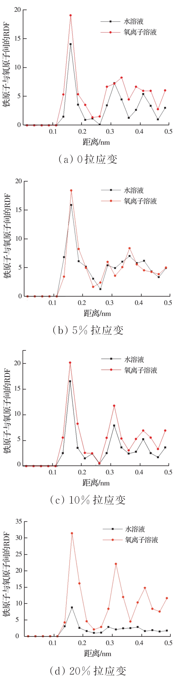 摘要:为了从微观层面揭示锚杆在复杂环境中的腐蚀破坏机理,将分子动力学方法引入锚杆的腐蚀研究中,借助Materials Studio软件建立分子动力学模型,并引入到Lammps软件中,进行分子动力学模拟,研究预应力锚杆在氯离子环境中的腐蚀特性,探究氯离子溶液与锚杆表面间的微观作用规律。结果表明:在预应力和氯离子的耦合作用下,铁基体能够吸收更多氧原子,加速氧原子与铁之间的结合以及锚杆的氧化腐蚀钝化;预应力的施加削弱了锚杆内部原子的束缚,使得铁原子的运动趋势增大,更容易与其他原子相结合;氯离子会增大铁原子与氧原子的作用强度,促进铁与氧的结合,且氯离子会随着预应力的增大逐渐活跃;随着预应力的增大,溶液中的氧原子由于更容易与铁发生反应形成稳定化学键,其运动特性逐渐减弱。氧化反应结束后,铁基体表面形成一层氧化膜,在氯化物溶液环境中,氧化层厚度明显增加,且预应力越大,氧化层越厚。