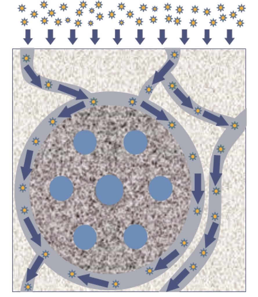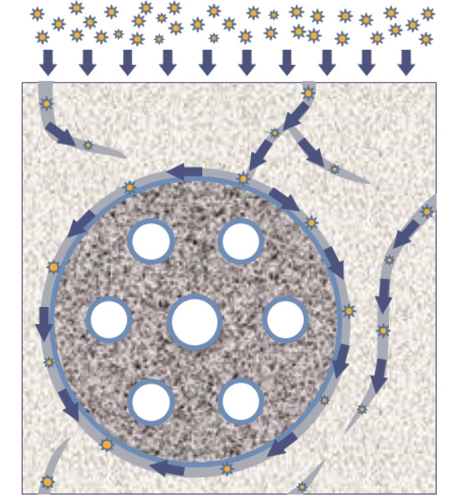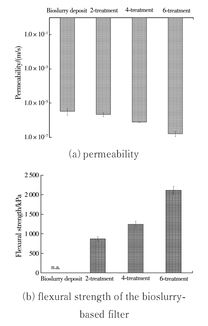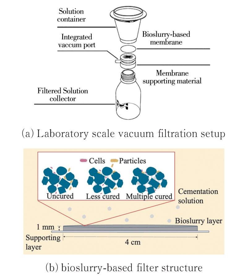 摘要:过滤是废水处理中常用的方法,根据过滤介质材料和性质的不同,可以分为4大类:微滤、超滤、纳滤和反渗透。基于微生物诱导碳酸钙沉淀(MICP)生物矿化过程制备一种新型多孔CaCO?微滤膜。首先,通过控制MICP矿化过程制备具有脲酶活性的CaCO?晶体颗粒;随后,利用二次微生物矿化将松散的碳酸钙颗粒进行胶结,从而形成具有一定机械强度的连续多孔固体CaCO?微滤膜。对细菌体、胞外蛋白质和多糖的过滤试验表明,MICP驱动的多孔CaCO?膜能高效去除大肠杆菌、布氏杆菌和活性污泥,去除率分别达到99.998%、99.983%和99.996%。与普通滤纸相比,该多孔CaCO?膜在去除胞外聚合物(EPS)方面表现出优越的性能。此外,基于MICP工艺制备的CaCO3微滤膜还展示了理想的孔隙空间、非堵塞特性和高渗透性。