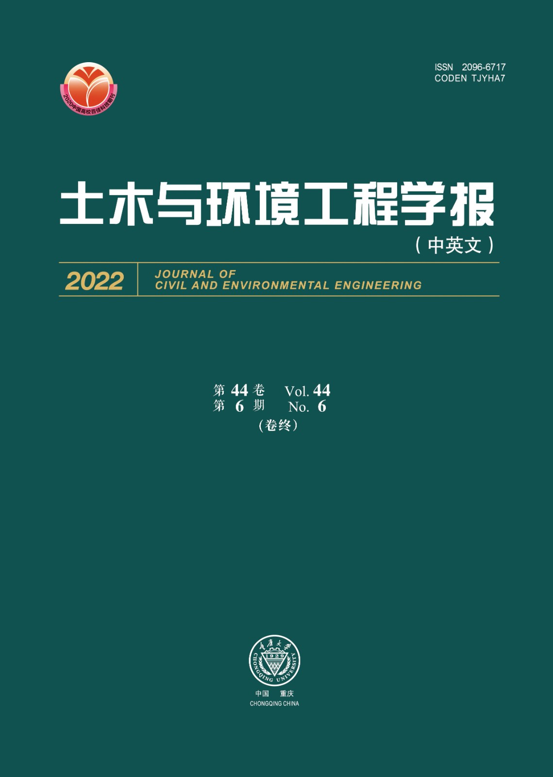 《土木与环境工程学报(中英文)》获评2022年度川渝一流科技期刊