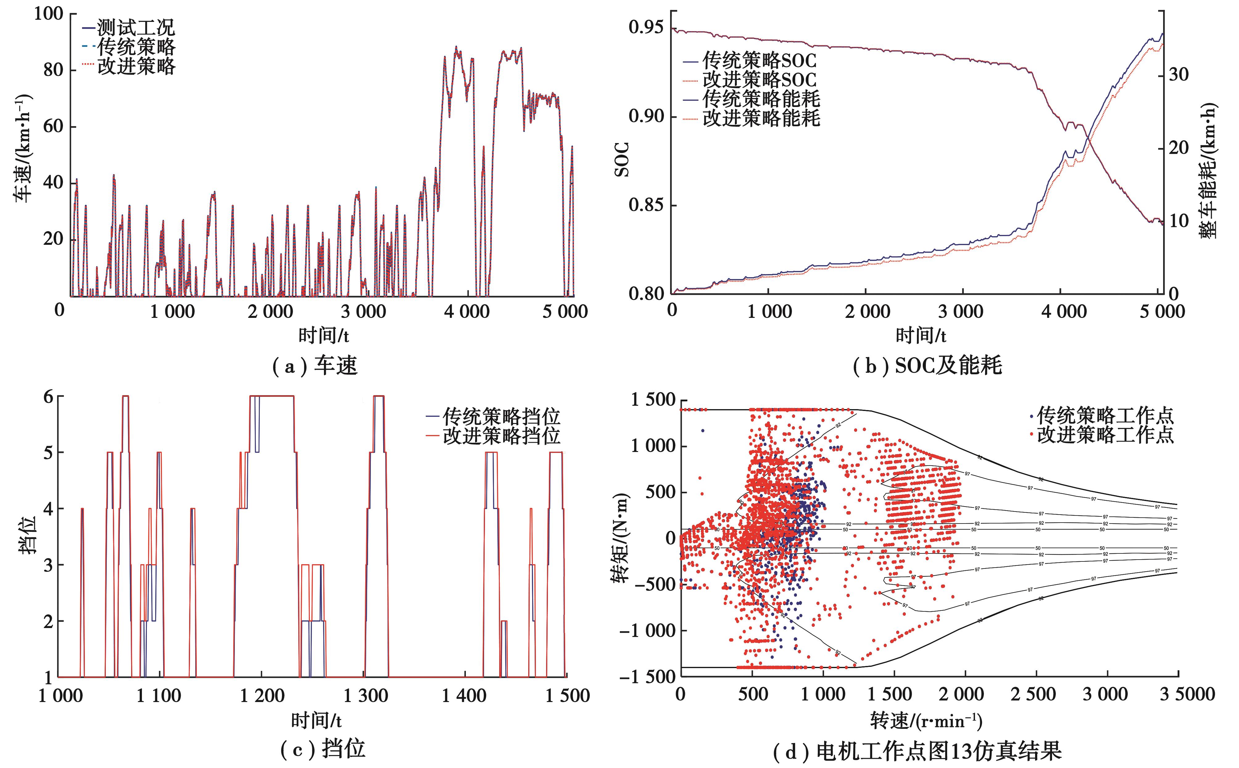 摘要:为提高电动商用车的能量利用率,充分发挥其节能潜力,文中以多挡电控机械式自动变速箱(automated mechanical transmission,AMT)电动重型商用车为研究对象,提出了一种基于系统效率最优的换挡策略。基于电驱系统构型深入分析各部件损耗机理和动态效率特性,通过电驱系统效率曲面制定基于系统效率最优的换挡策略;建立电驱系统键合图模型,利用重构城郊工况进行换挡策略仿真分析;结合实车实验验证了文中策略的有效性和优越性。研究结果表明:该策略能实现电驱系统输出效率最优,比传统经济性换挡策略的整车能耗降低了3.86%。