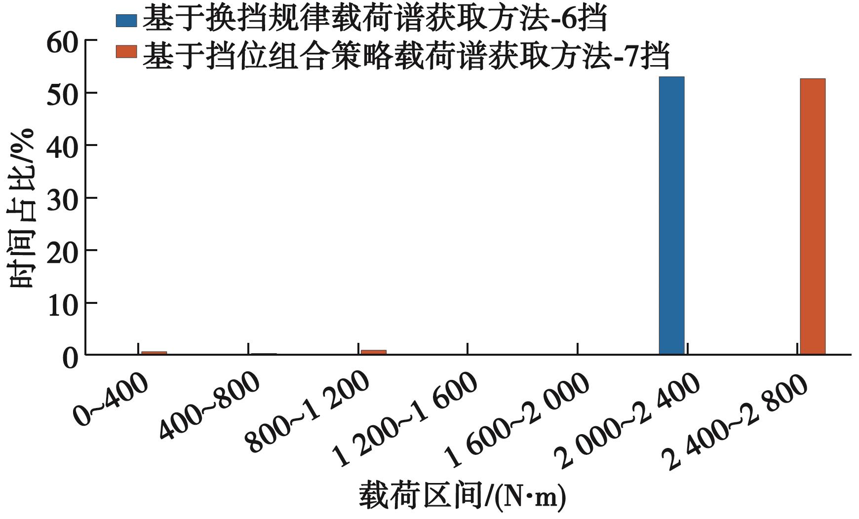摘要:目前变速箱仿真载荷谱的相关研究对驾驶员意图考虑不足,难以全面反映变速箱挡位的受载状态。为了提高变速箱可靠性分析的准确性,以装备12挡变速箱的矿用车辆为研究对象,在动力性与经济性换挡规律的基础上,充分考虑不同车速的许用挡位,提出一种考虑挡位组合策略的多挡变速箱仿真载荷谱获取方法。基于矿用车辆行驶工况,采用所提方法获得了多挡变速箱仿真载荷谱,并与基于动力性或经济性换挡规律获得的仿真载荷谱进行对比。结果表明:与基于换挡规律获得载荷谱的传统方法相比,所提方法得到了不同的危险挡位。传统方法得到的危险挡位是6挡,工作时间占循环工况的53.25%,载荷区间为2 000~2 400 N?m时占比最大,为53.14%,所提方法得到的危险挡位是7挡,工作时间占循环工况的54.49%,载荷区间为2 400~2 800 N?m时占比最大,为52.78%;从载荷累积量的角度可发现,所提方法得到的7挡载荷累积量较传统方法得到的6挡载荷累积量增加了2.33%。研究结果证明了所提方法的有效性,为多挡变速箱可靠性设计奠定了基础。