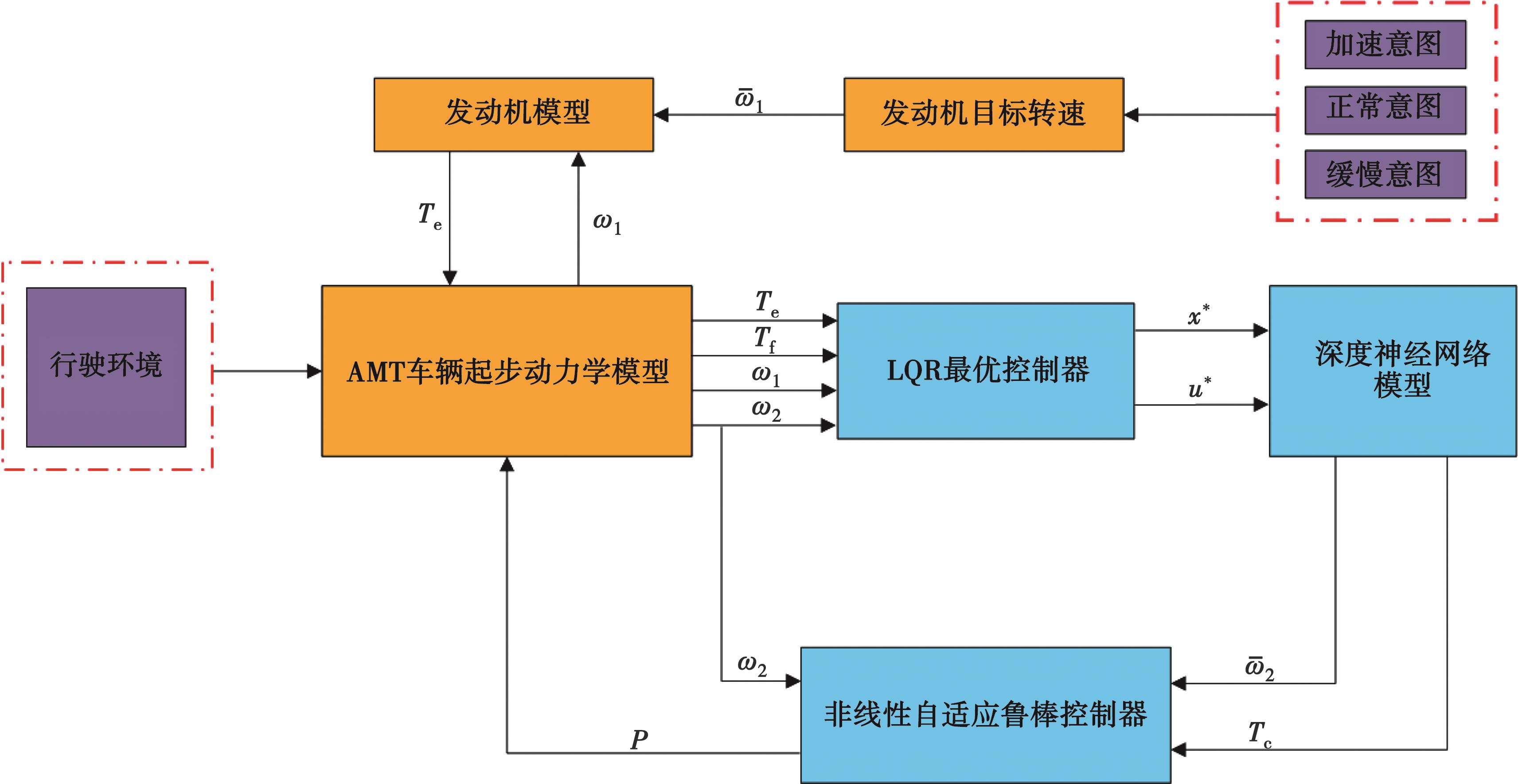 摘要:工程车辆在高扭矩、高负载和复杂运行环境下工作时,面临着诸多技术挑战,特别是在起步阶段,离合器片的滑摩现象显著影响了离合器转矩的控制精度。为实现搭载AMT的工程车辆在不同条件下的起步自适应控制,提出了一种融合二次型控制(linear quadratic regulator,LQR)和深度神经网络的AMT起步过程自适应控制方法。在控制策略的上层,根据不同起步意图制定了发动机恒转速策略,并利用线性二次调节器求得不同环境下的离合器参考转速对应的参考转矩;考虑到运行环境的复杂性,在车辆动力学模型中引入一定范围的扰动,生成一系列参考转速轨迹作为深度神经网络的训练数据集,离线得到鲁棒性较强的数据模型。在控制策略的下层,设计了离合器摩擦因数自适应控制器实时估计离合器的摩擦因数。通过仿真测试验证了搭载AMT的工程车辆起步自适应控制方法的有效性。结果表明:在未知摩擦因数变化规律条件下所提方法具有良好的起步性能,能够适应不同的起步意图与行驶环境,相较于工程上常用的PID控制器具有更强的自适应能力和鲁棒性。