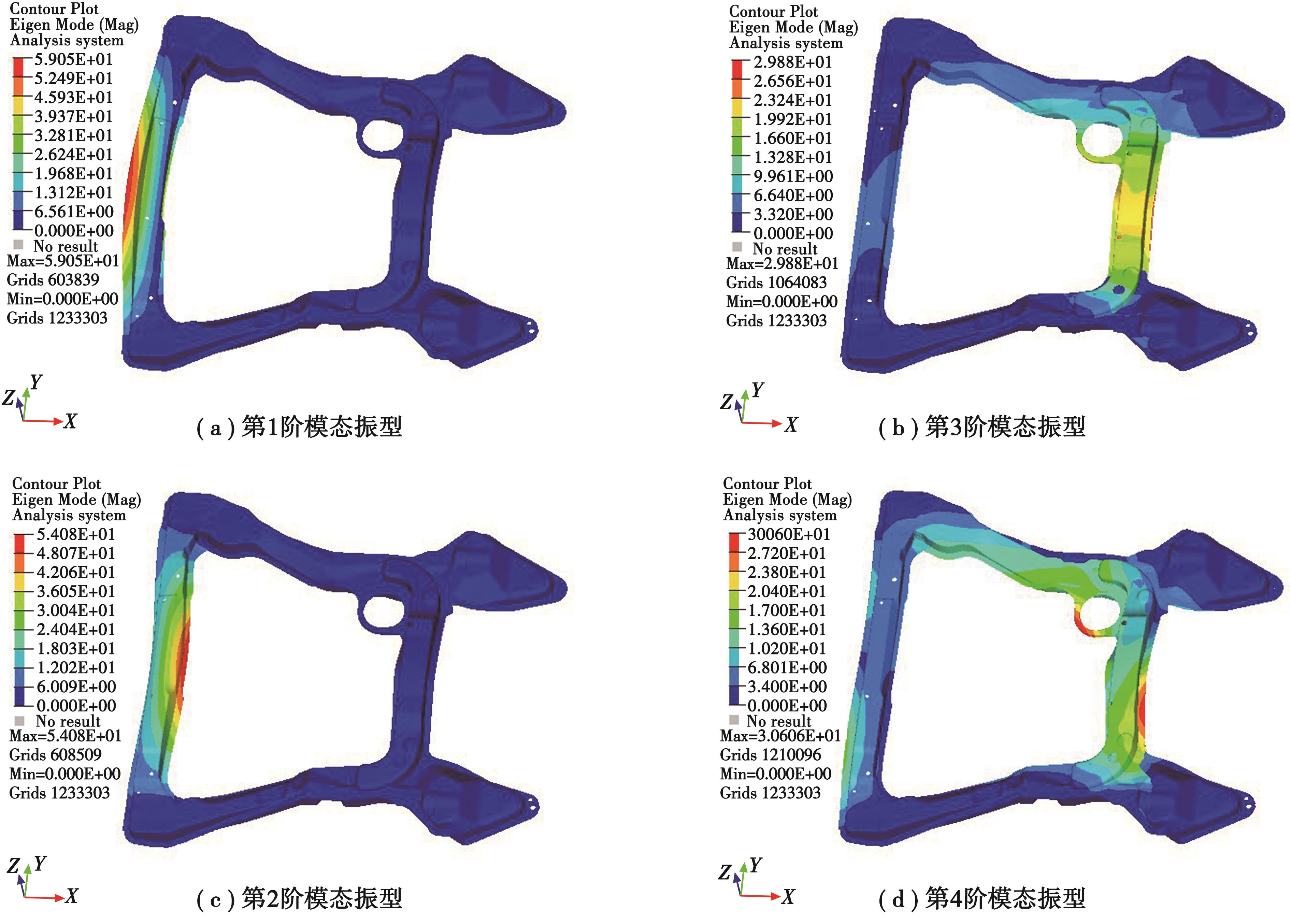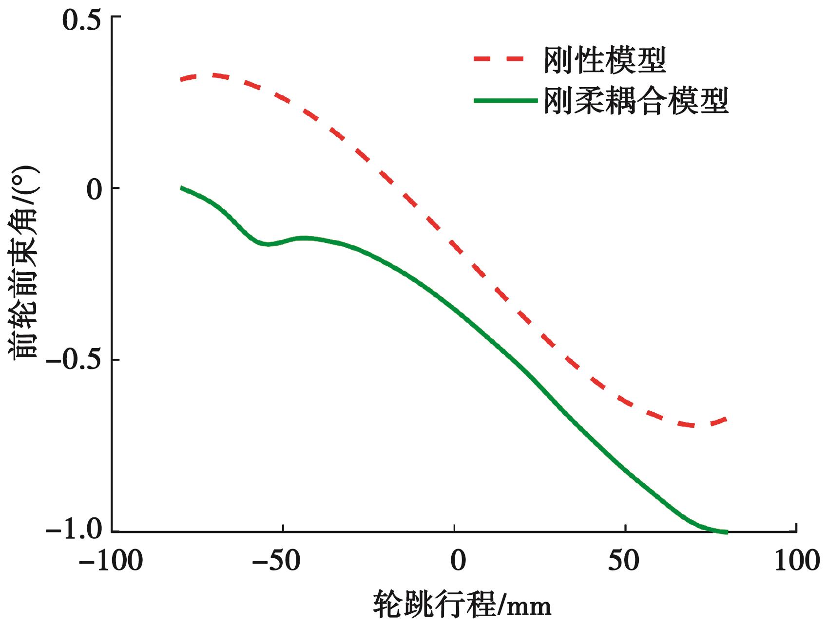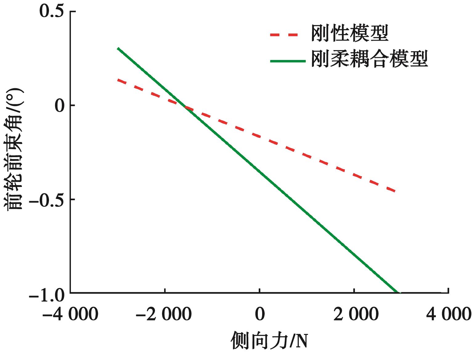 摘要:车辆的操纵稳定性是整车性能的重要组成部分,在车辆悬架与副车架系统中常将副车架作为刚性连接进行研究,然而前副车架在实际的行驶过程中会发生弹性变形,文中对某车型的前副车架进行柔性化处理,建立刚柔耦合模型来研究整车的操纵稳定性具有重要意义。对整车进行横向动力学分析,推导了三自由度车辆运动学方程。通过车辆运动学仿真对比分析,研究了该前副车架柔性对悬架系统KC特性与整车瞬态操纵稳定性的影响。运用NSGA-II算法对前副车架连接处的衬套刚度进行优化设计,改善了整车的瞬态操纵稳定性。优化结果表明:在0.5 Hz时,横摆角速度相对于方向盘转角增益降低了8%,车身侧倾角相对于侧向加速度增益降低了1.1%,侧向加速度相对于方向盘转角延迟时间减少了10.5%。