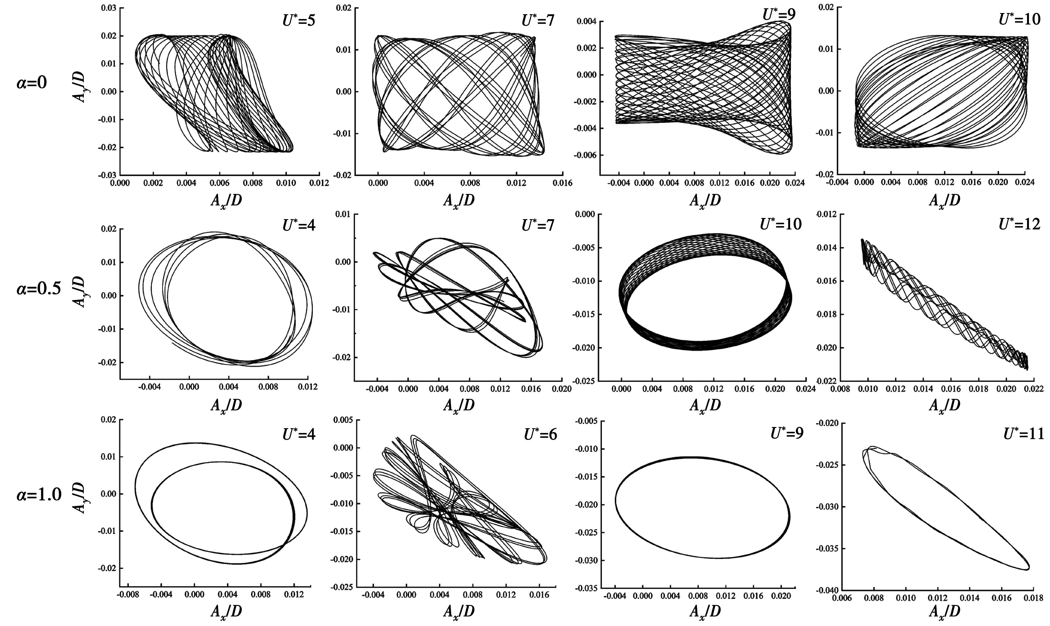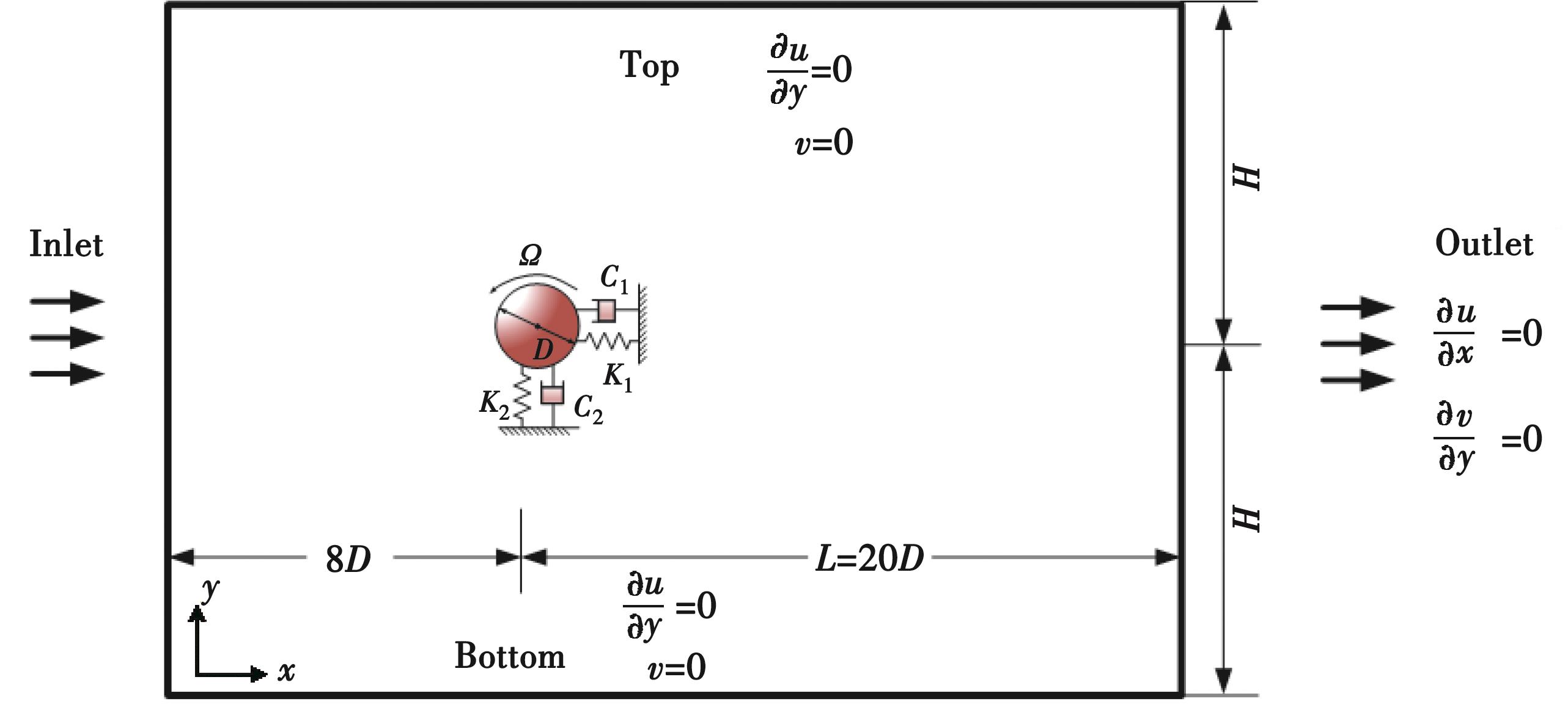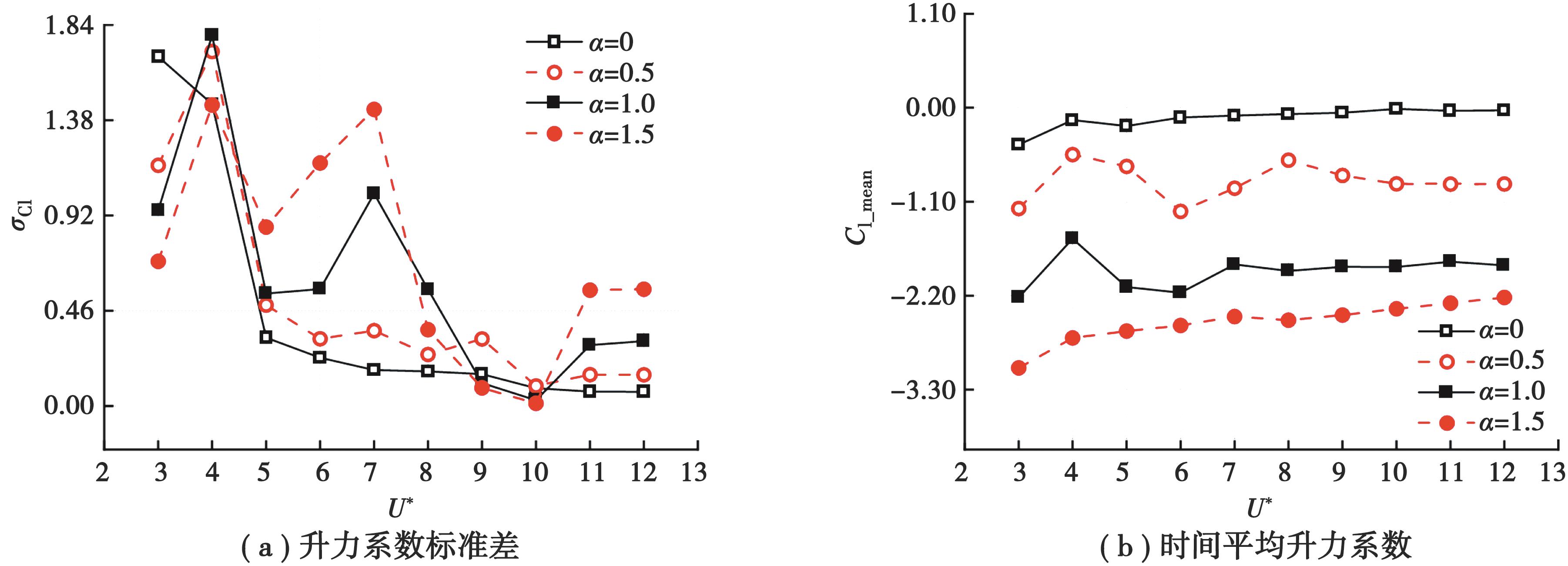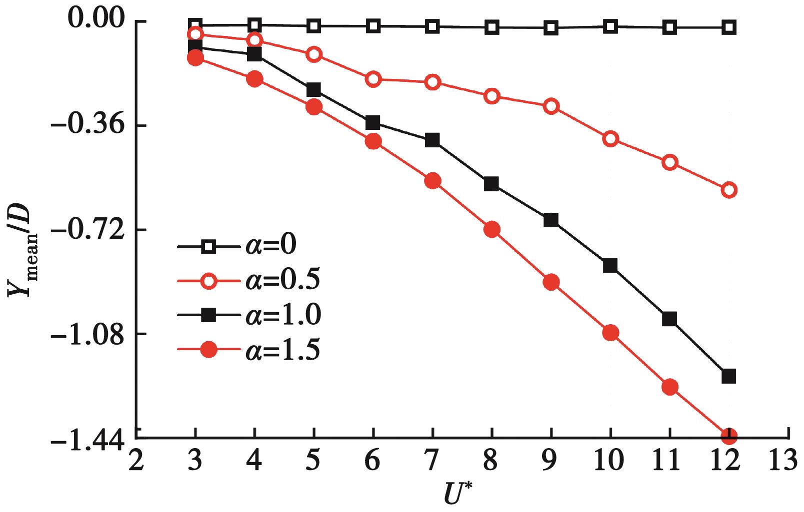 摘要:基于海洋深层流的特点,数值模拟了振荡来流条件下不同折减速度U*和旋转速率α对圆柱振动响应与传热特性的影响。结果表明,圆柱的x(A*peaks,x)和y方向(A*peaks,y)的振幅比存在多个极值点,且随着α增加,A*peaks,x的最大值增大,其对应的U*减小。位移和升阻力系数随着α和U*变化表现出显著差异,x方向的时间平均位移随U*的增加而增大,y方向平均位移和升阻力系数均随α的增大而增大。圆柱的运动轨迹在0≤α≤1.0时,无明显规律;在α=1.5 时,为圆环状。随着U*增加,圆柱平均努塞尔数增大,局部努塞尔数分布逐渐成圆形。随着α增大,涡旋脱落模式由2S转变为单排排列,尾迹逐渐拉伸并趋于U型模式。温度场结果表明,前驻点热交换较弱,后驻点热交换和局部传热效率显著提升。