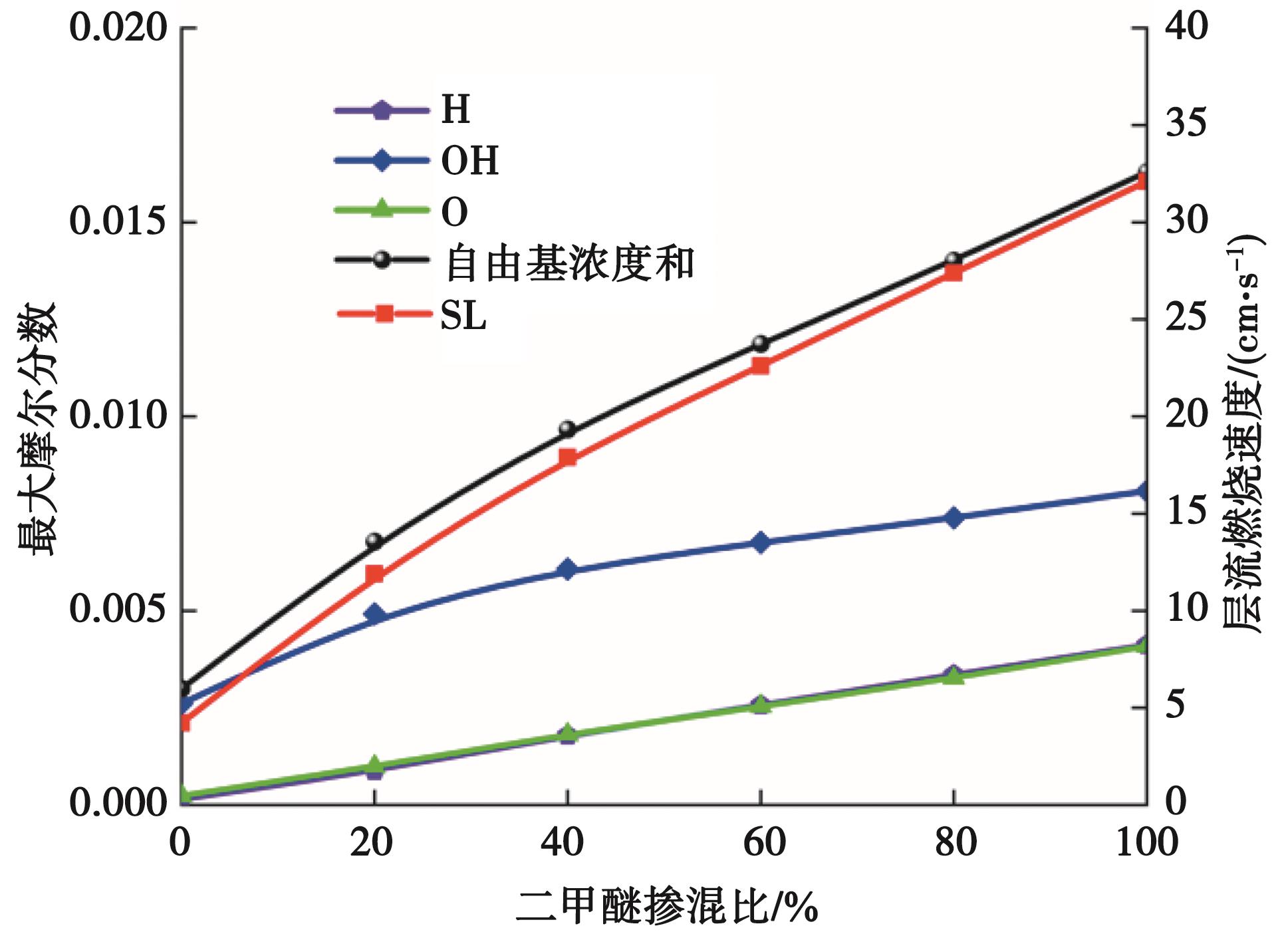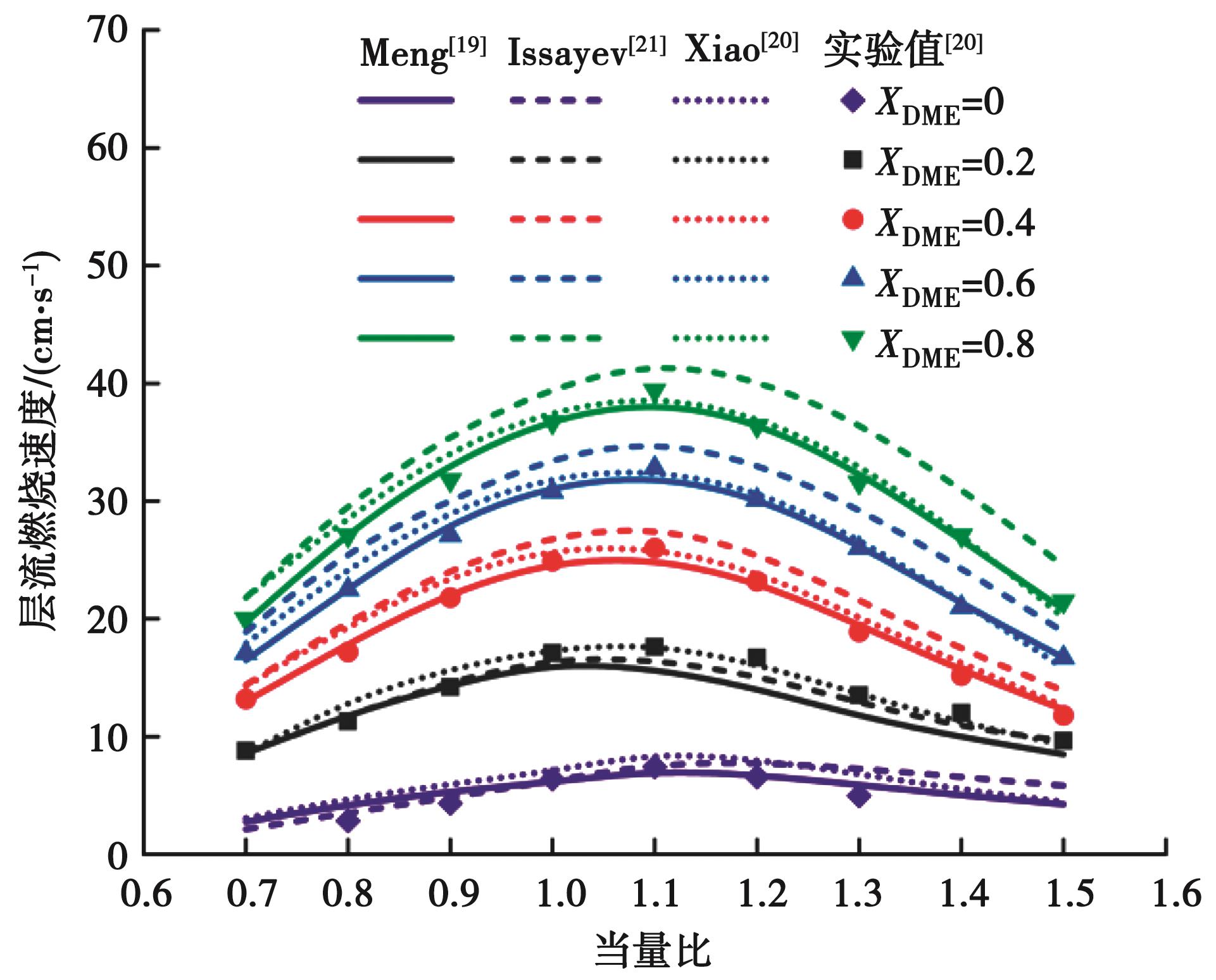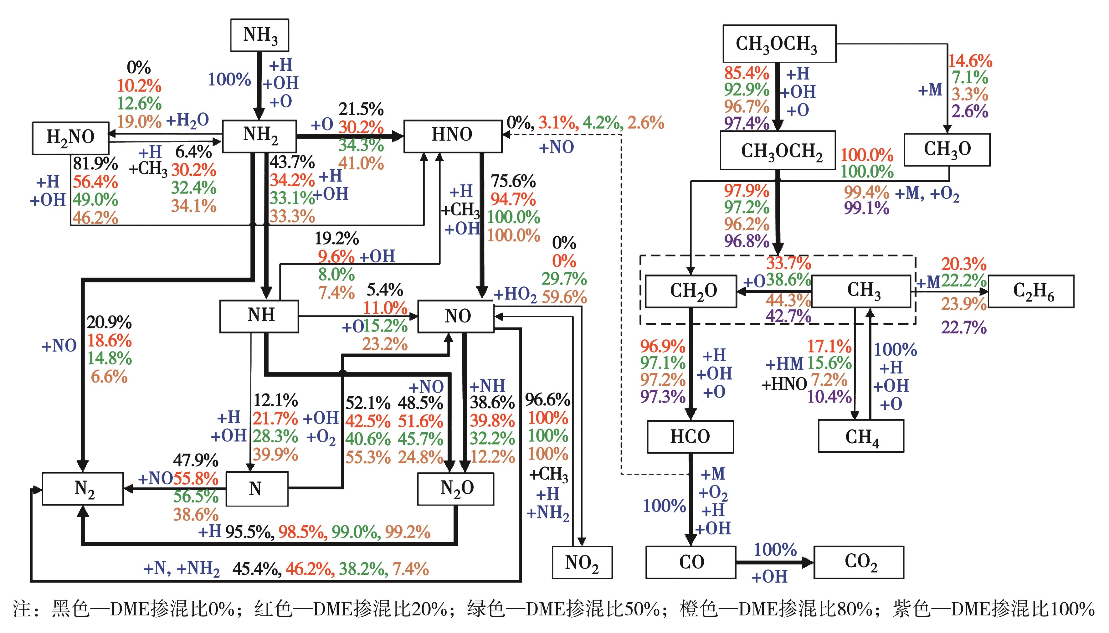 摘要:为了改善氨在内燃机中的着火燃烧性能,将其与反应活性高的二甲醚(DME)燃料掺混不失为一种有效措施。文中采用数值模拟方法研究了NH3/DME/空气预混层流火焰的燃烧过程,分析了DME掺混对氨层流燃烧速度、化学反应路径及一氧化氮(NO)生成特性的影响规律。仿真结果表明,随着DME掺混比的增大,NH3/DME/空气预混合气的层流燃烧速度和绝热火焰温度显著提升,DME掺混引起的自由基池浓度的增大是导致混合燃料层流燃烧速度增大的主要因素;随着DME掺混比的增大,火焰中NO归一化浓度显著增大,当掺混80% DME时,NO的归一化浓度达到了50%,路径分析表明,DME掺混不利于氨中氮元素向N2的转化,会引起NO排放增加;与DME掺混燃烧时,氮族基元反应的敏感性明显降低,燃烧过程以氢族和碳族基元反应为主导。
