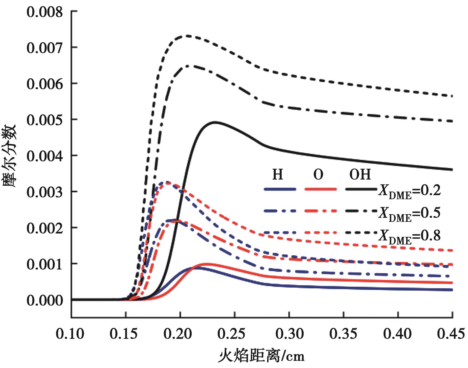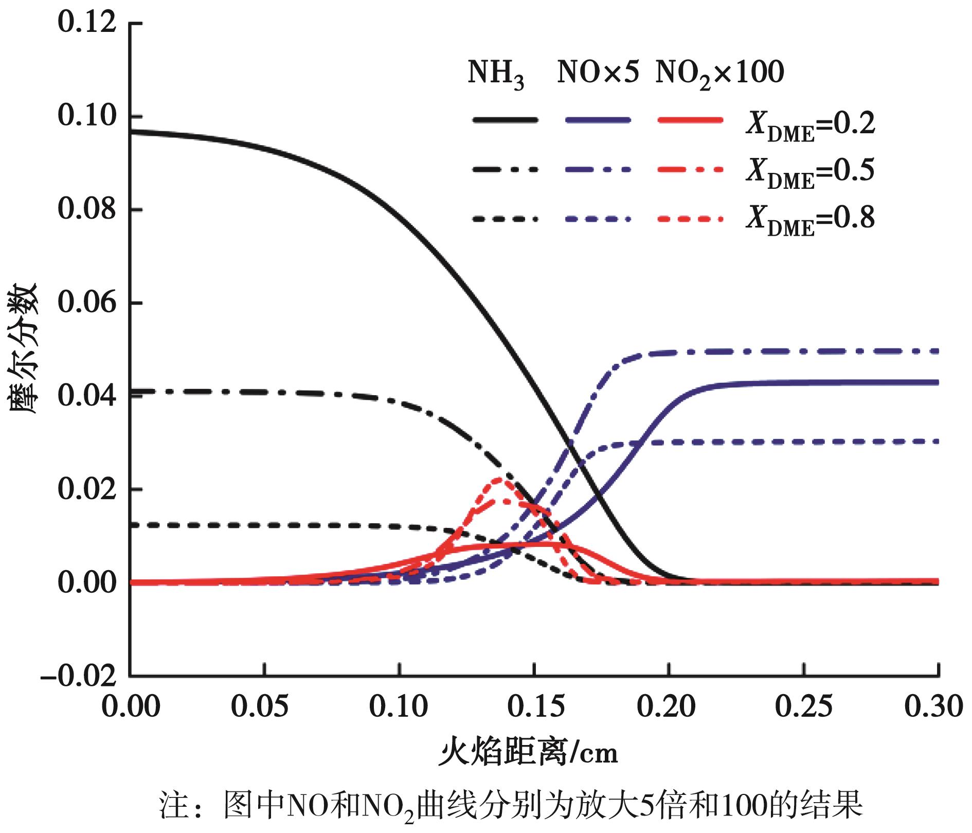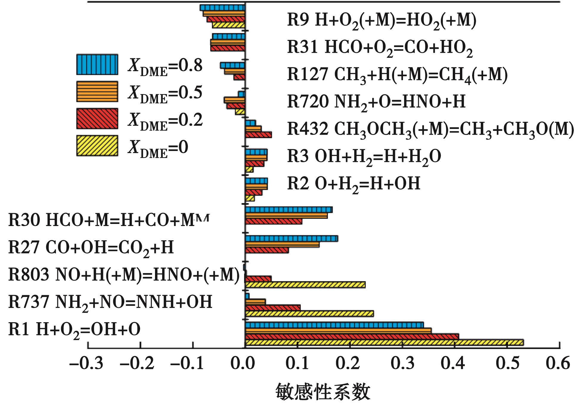 摘要:为了改善氨在内燃机中的着火燃烧性能,将其与反应活性高的二甲醚(DME)燃料掺混不失为一种有效措施。文中采用数值模拟方法研究了NH3/DME/空气预混层流火焰的燃烧过程,分析了DME掺混对氨层流燃烧速度、化学反应路径及一氧化氮(NO)生成特性的影响规律。仿真结果表明,随着DME掺混比的增大,NH3/DME/空气预混合气的层流燃烧速度和绝热火焰温度显著提升,DME掺混引起的自由基池浓度的增大是导致混合燃料层流燃烧速度增大的主要因素;随着DME掺混比的增大,火焰中NO归一化浓度显著增大,当掺混80% DME时,NO的归一化浓度达到了50%,路径分析表明,DME掺混不利于氨中氮元素向N2的转化,会引起NO排放增加;与DME掺混燃烧时,氮族基元反应的敏感性明显降低,燃烧过程以氢族和碳族基元反应为主导。