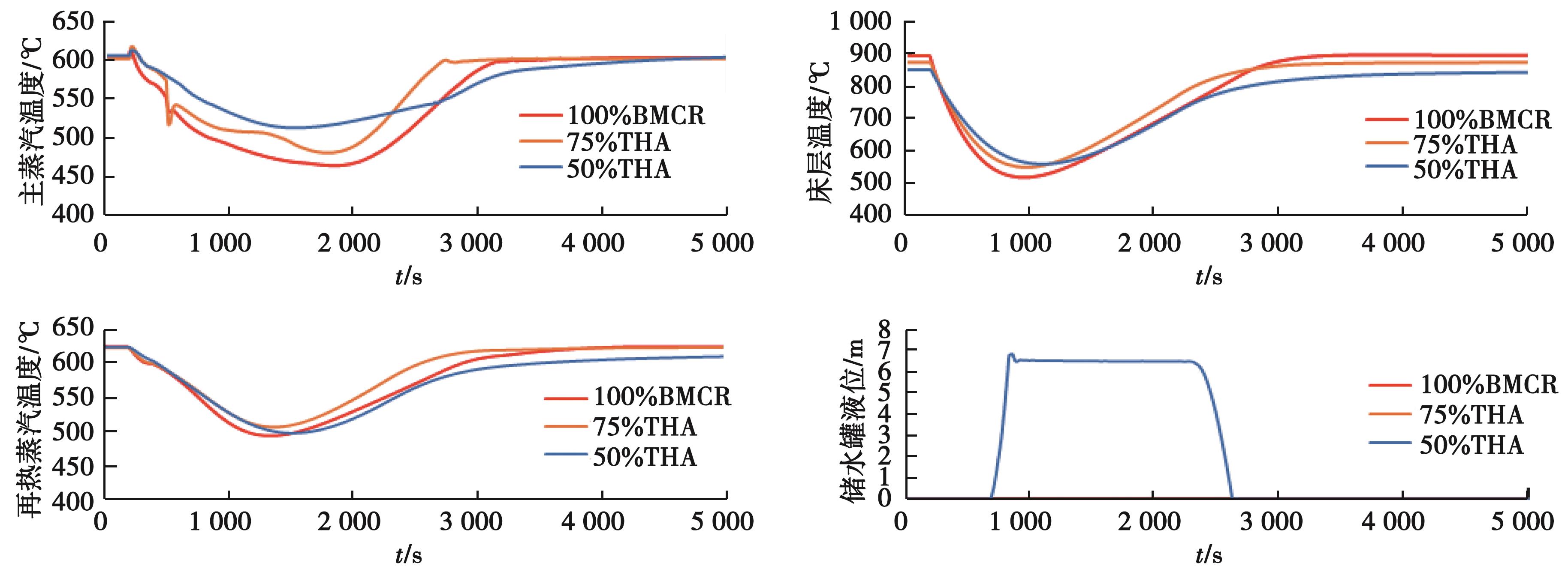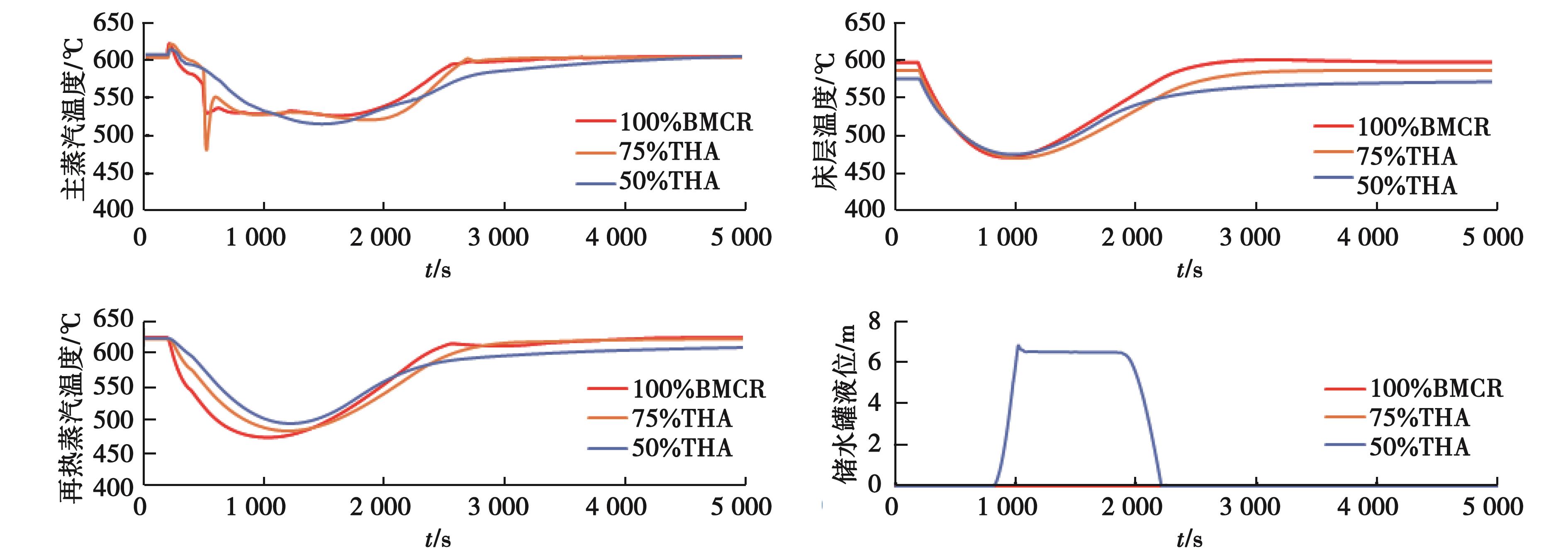 摘要:为研究超超临界循环流化床(circulating fluidized bed, CFB)锅炉在触发主燃料跳闸(main fuel trip, MFT)和锅炉跳闸(boiler trip, BT)时的动态特性,在Apros仿真平台上建立了660 MW超超临界循环流化床锅炉仿真模型,分别在100% BMCR(boiler maximum continuous rating)、75% THA (turbine heat acceptance) 和50% THA工况下燃煤时对 MFT和BT进行动态仿真。结果表明,在50% THA工况下,锅炉触发MFT与BT后汽水分离器很快由干态转为湿态运行,MFT、BT复位后逐渐由湿态转为干态运行。频繁干、湿态转换会增大汽水分离器热应力,影响设备寿命与安全,应避免在低负荷下触发锅炉MFT与BT。