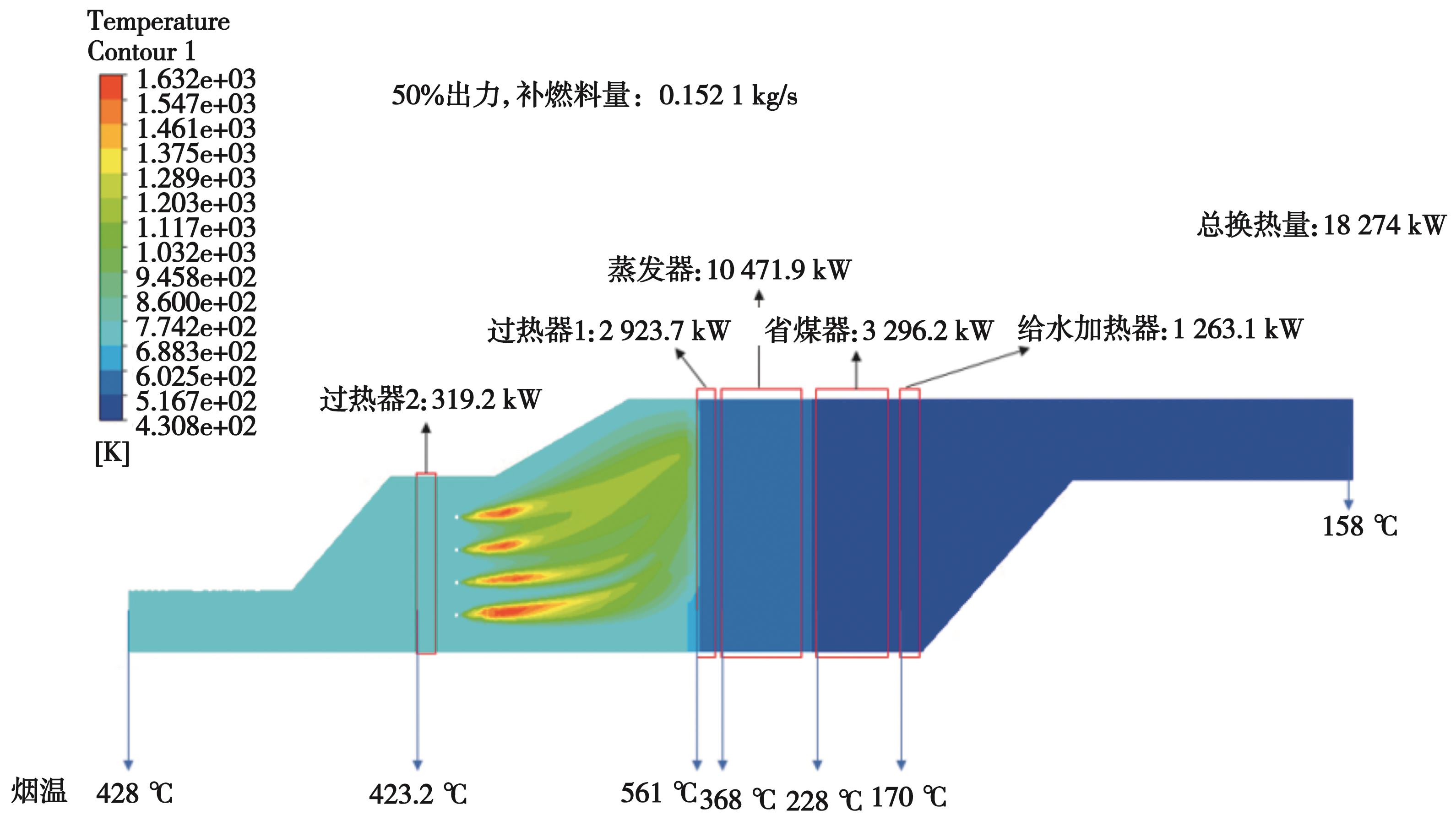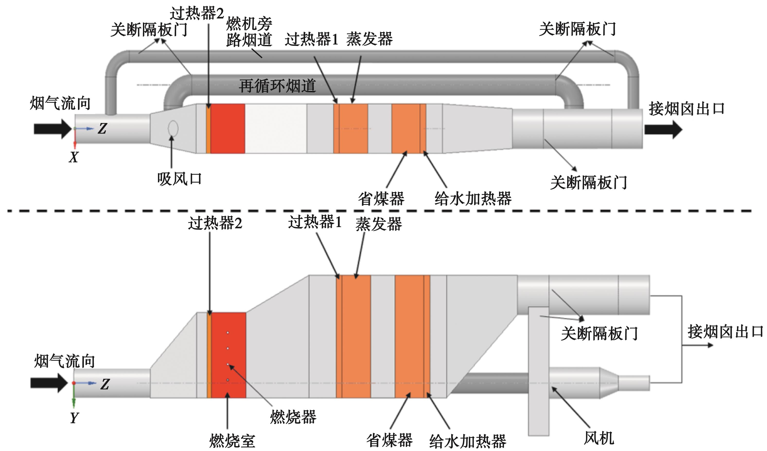 摘要:文中设计并模拟了一种可独立运行的复合型高效余热锅炉,该锅炉可以实现燃气?蒸汽联合循环,并能脱离燃气轮机独立运行。利用计算流体力学软件,建立了该锅炉的三维数值模型并模拟了该锅炉在3种稳态运行模式下的运行特性,分析了不同模式间动态切换过程整体特性变化。结果表明,3种模式在稳态运行时均可通过调整燃气补燃量来满足热负荷需求。在动态切换过程中,文中提出的控制方法可以保证整个过程中余热锅炉运行状态平稳,3种工作模式实现无缝切换。