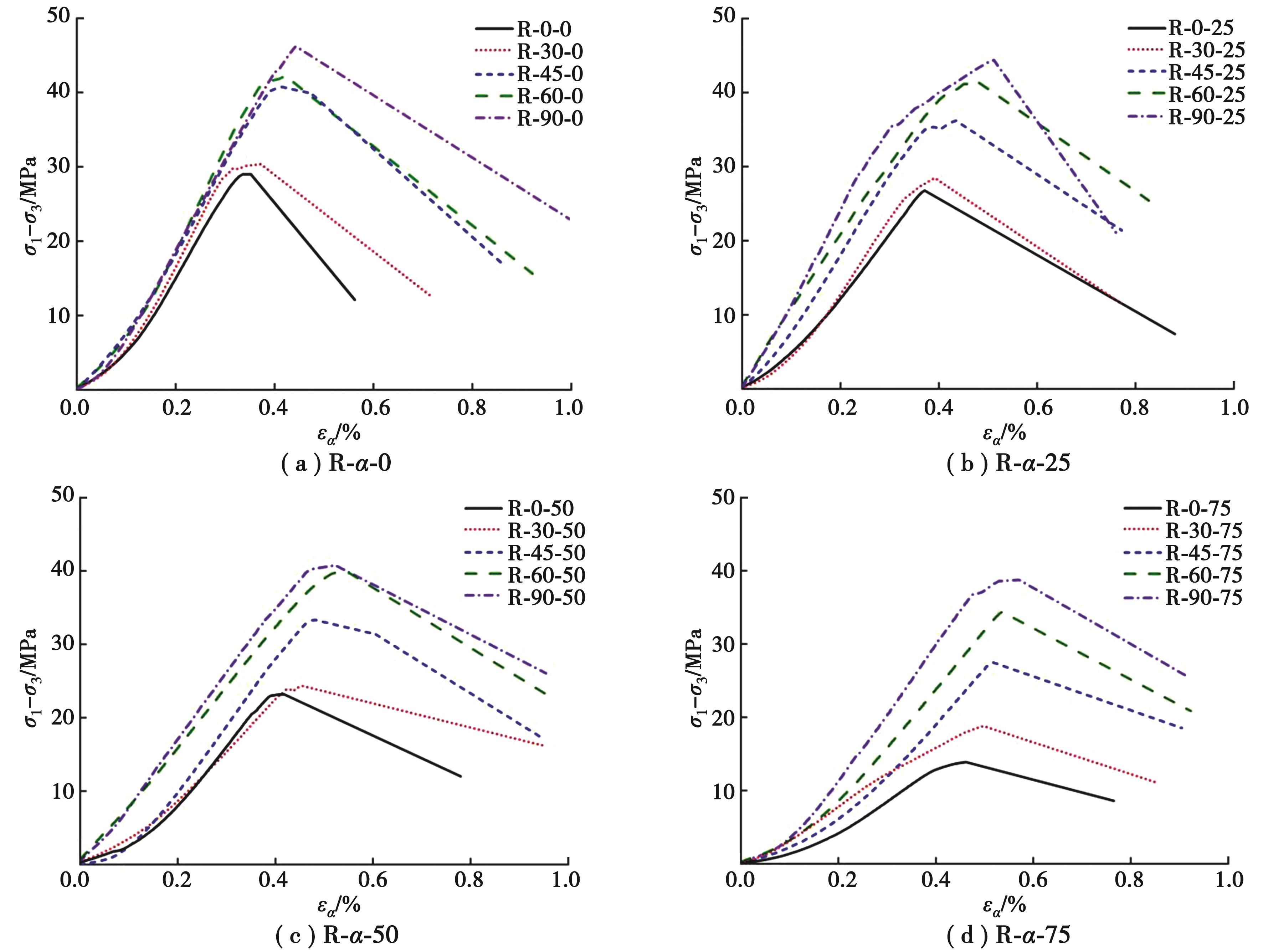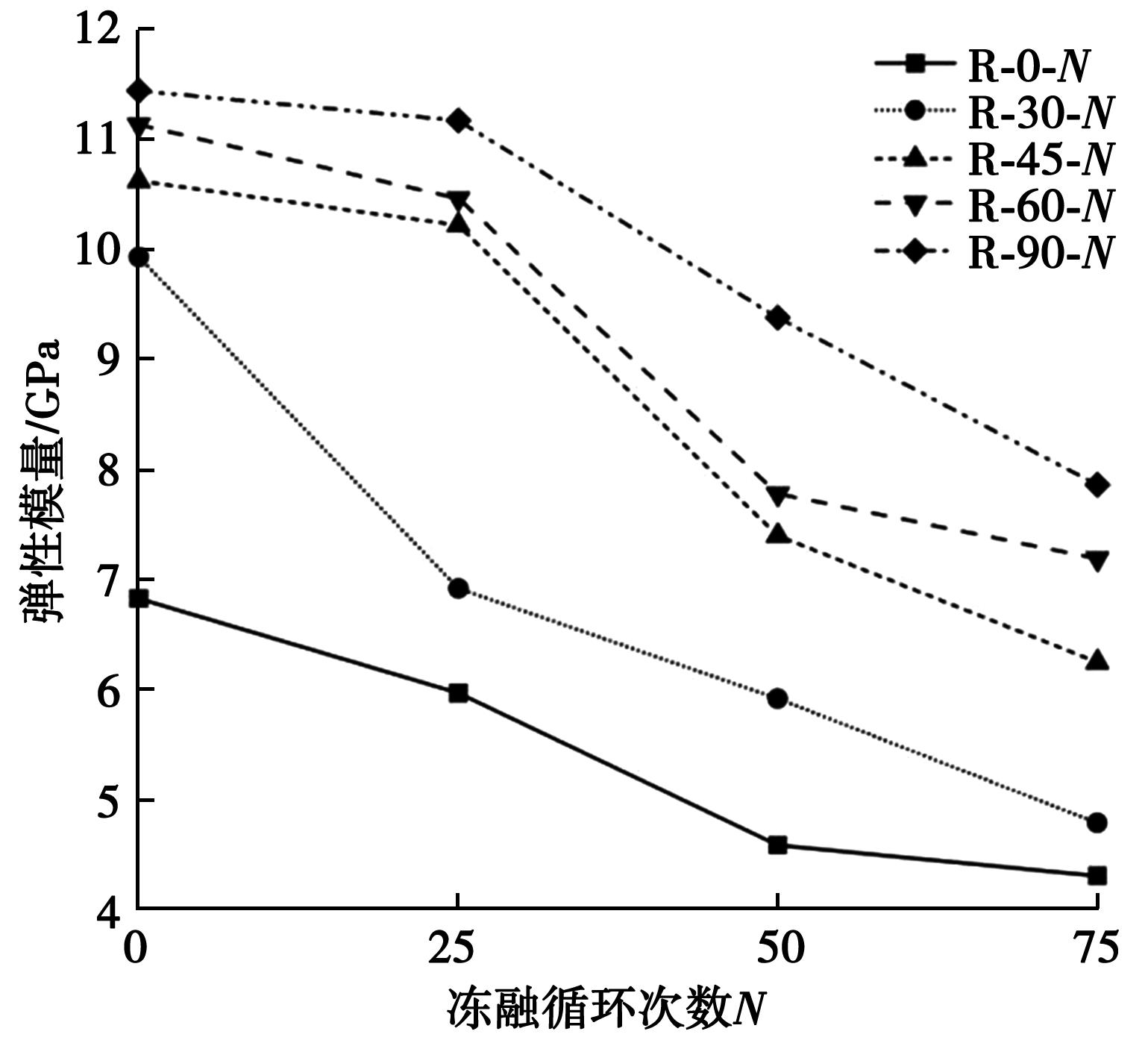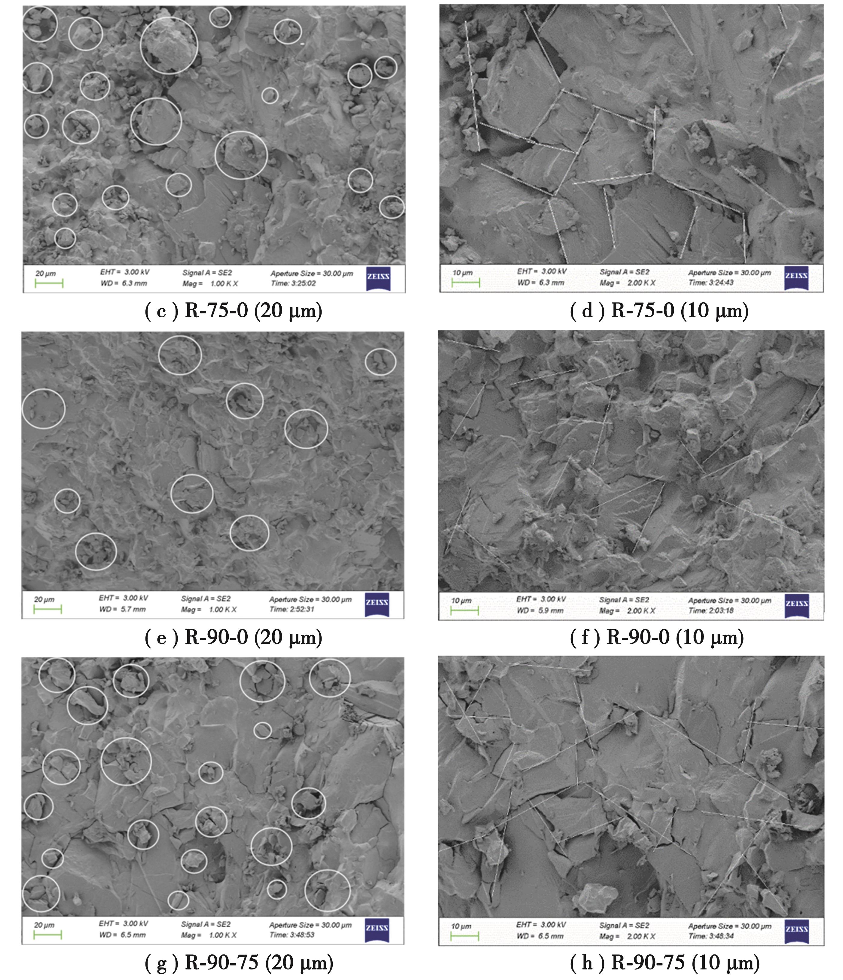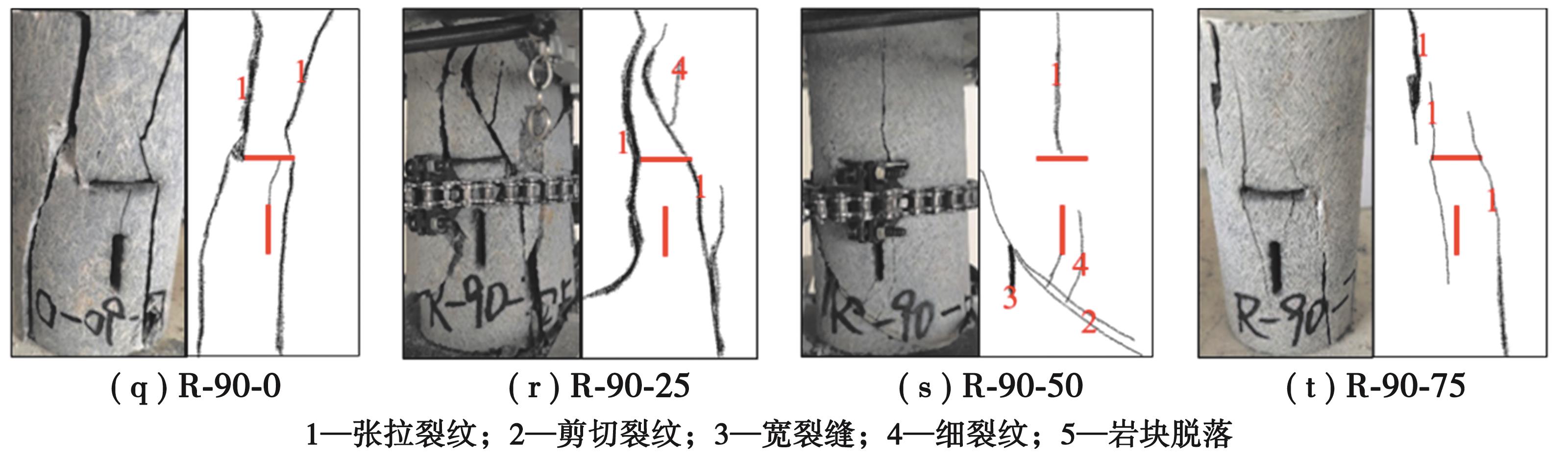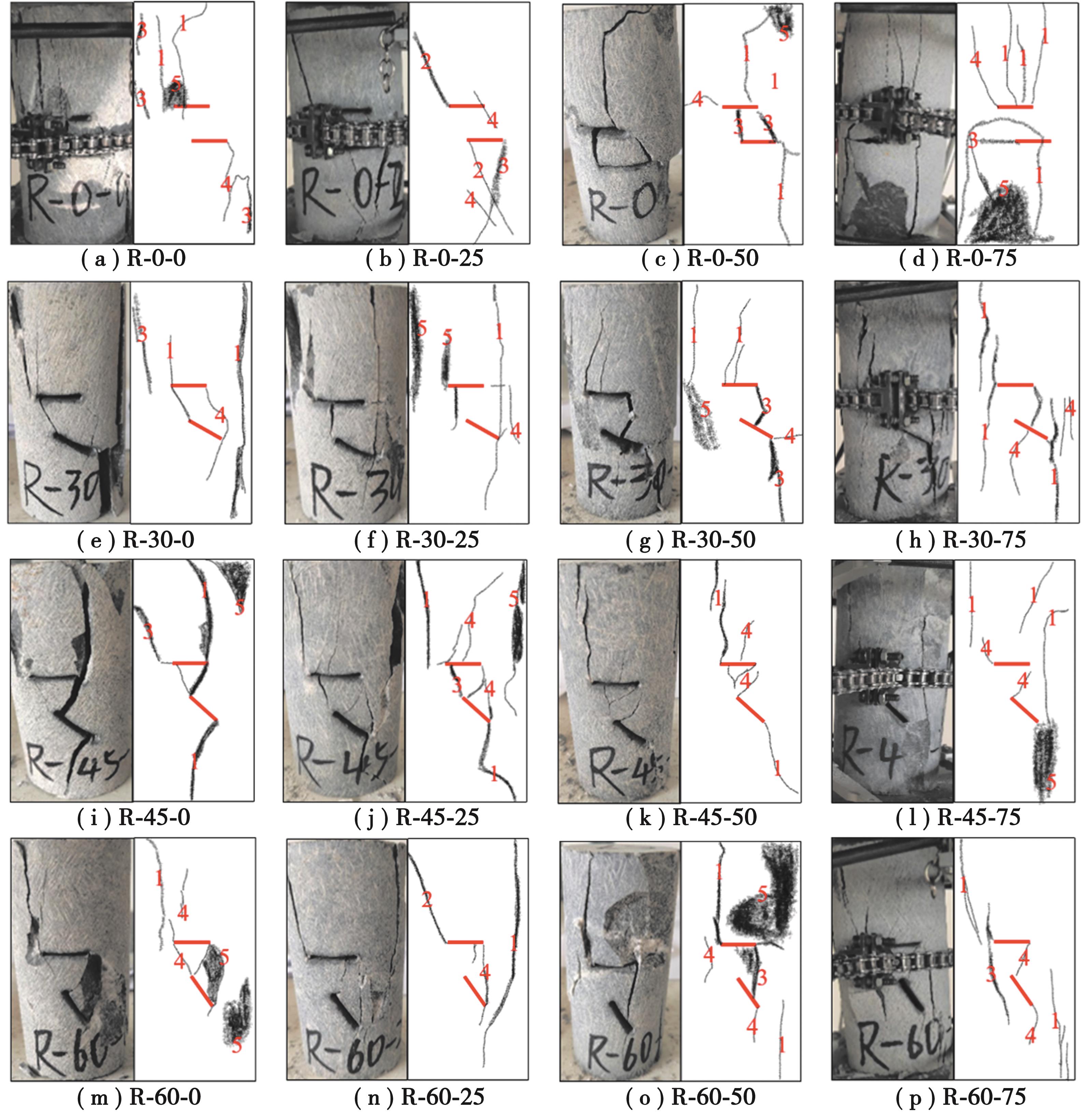 摘要:寒区岩体由于反复冻融导致的变形破坏是当前亟待研究和解决的前沿课题。为研究冻融循环作用下裂隙岩体的力学特性及裂纹扩展特征,针对冻融循环作用下不同裂隙倾角的裂隙灰岩开展单轴压缩试验,得到相应的应力-应变曲线及宏观破坏特征,并采用电镜分析破坏面的微观特征。试验结果表明:冻融后裂隙灰岩的破坏特征呈明显的脆性破坏,其峰值应力、弹性模量随裂隙倾角的增大而增大,随冻融循环次数的增加而减小;峰值应变随裂隙倾角、冻融循环次数呈正相关。宏观破坏模式主要以裂纹模式为主,片落模式为辅,破坏面与预制裂隙有关,多为张拉裂纹,与冻融循环无明显相关性。微观试验揭露了冻融循环对裂隙灰岩的损伤,微裂纹的平均长度、累计长度和平均宽度随冻融循环次数增加而增大,预制裂隙对破坏面的微观特征无明显影响。对于不同裂隙倾角的裂隙灰岩,预制裂隙影响了宏观破坏裂纹发育,而冻融加剧了内部微裂纹的扩展;裂隙倾角的增大抑制了冻融循环带来的损伤,提高了岩体耐久性。研究成果可为寒区矿山工程开采提供重要参考价值。