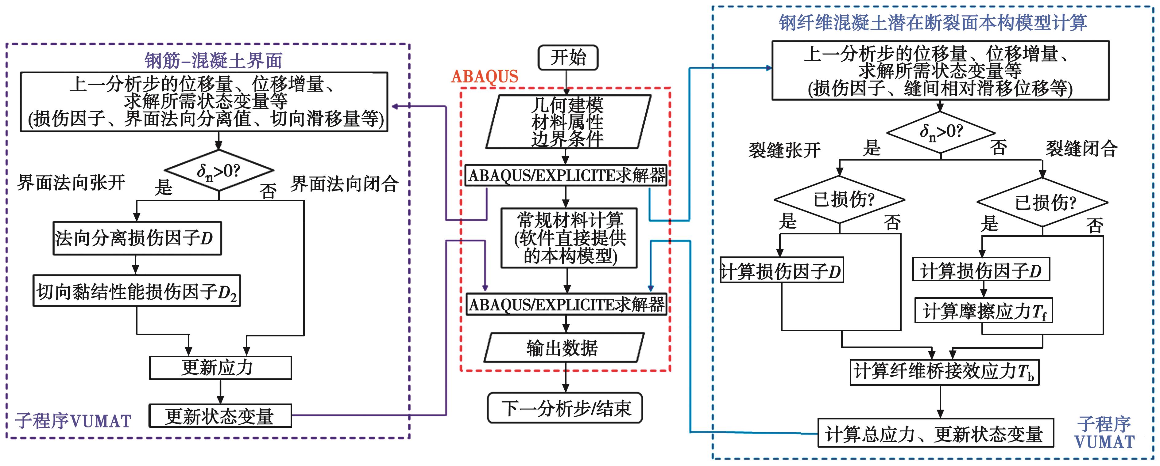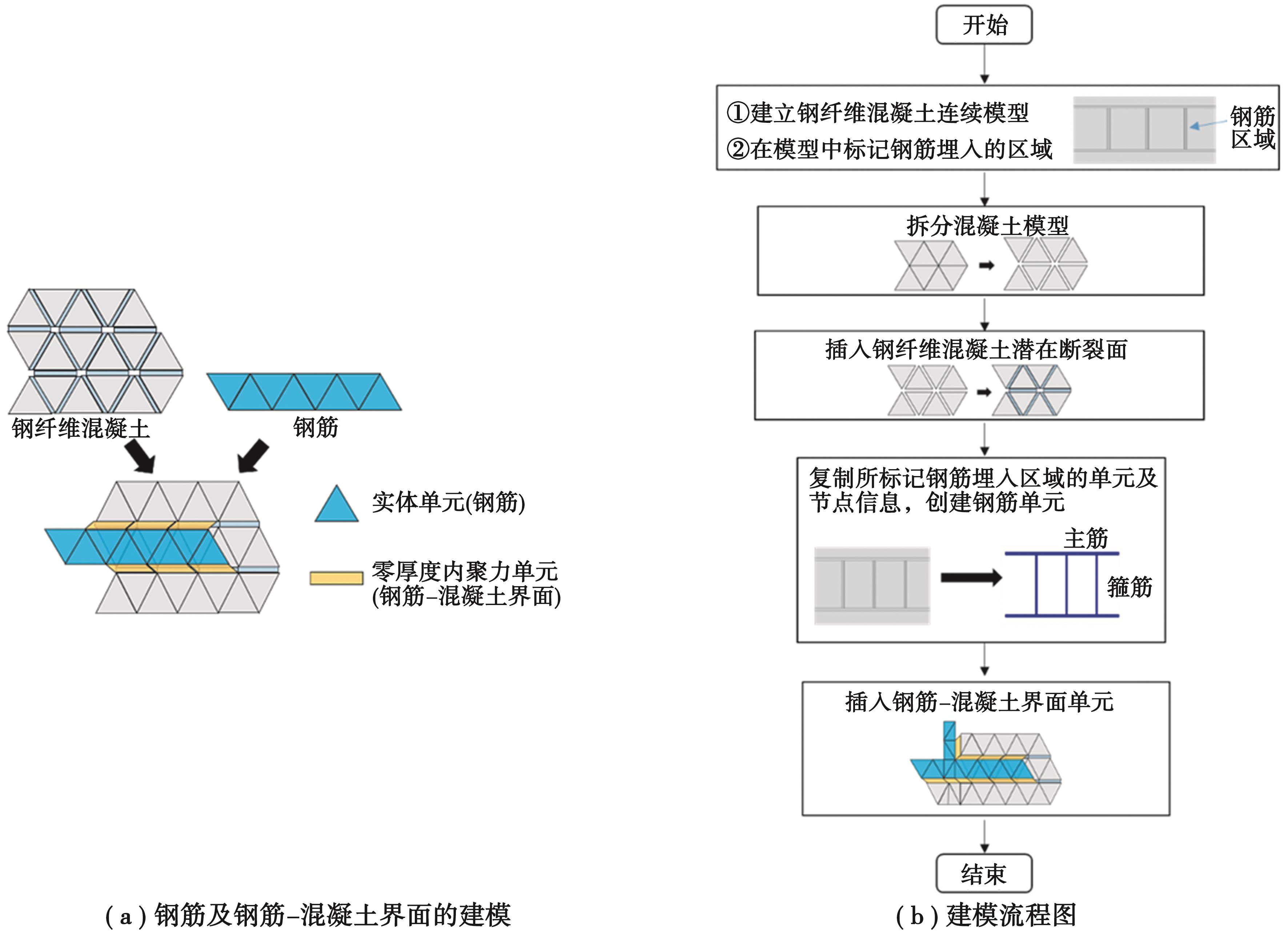 摘要:为研究配筋钢纤维混凝土结构在断裂破坏全过程中的力学响应及断裂损伤机理,基于内聚力单元提出了一种配筋钢纤维混凝土结构数值模型的建模方法,内聚力单元被用于表征钢纤维混凝土潜在断裂面及钢筋-混凝土界面。基于所建立模型,提出了综合考虑复合损伤作用、缝间摩擦以及纤维桥接效应的钢纤维混凝土本构模型。此外,在经典钢筋-混凝土界面黏结滑移模型的基础上,补充考虑界面法向分离及其对切向黏结性能弱化作用,建立了一种改进的钢筋-混凝土界面本构模型。为验证模型准确性,设计了一组配筋钢纤维混凝土梁的四点弯曲试验。通过对比模拟与试验结果,所建立的数值模型具有一定的适用性,能够较好地模拟配筋钢纤维混凝土的断裂破坏全过程力学响应以及相应的断裂形态。基于所建立本构模型的特点,进一步研究了纤维掺量和钢纤维混凝土缝间摩擦系数对结构承载性能的影响。研究结果表明,当纤维掺量较小以及摩擦系数取值不合理时(系数偏小或不考虑摩擦),结构的承载性能在塑性阶段会受到显著影响,主要表现为承载能力下降且脆性增大。