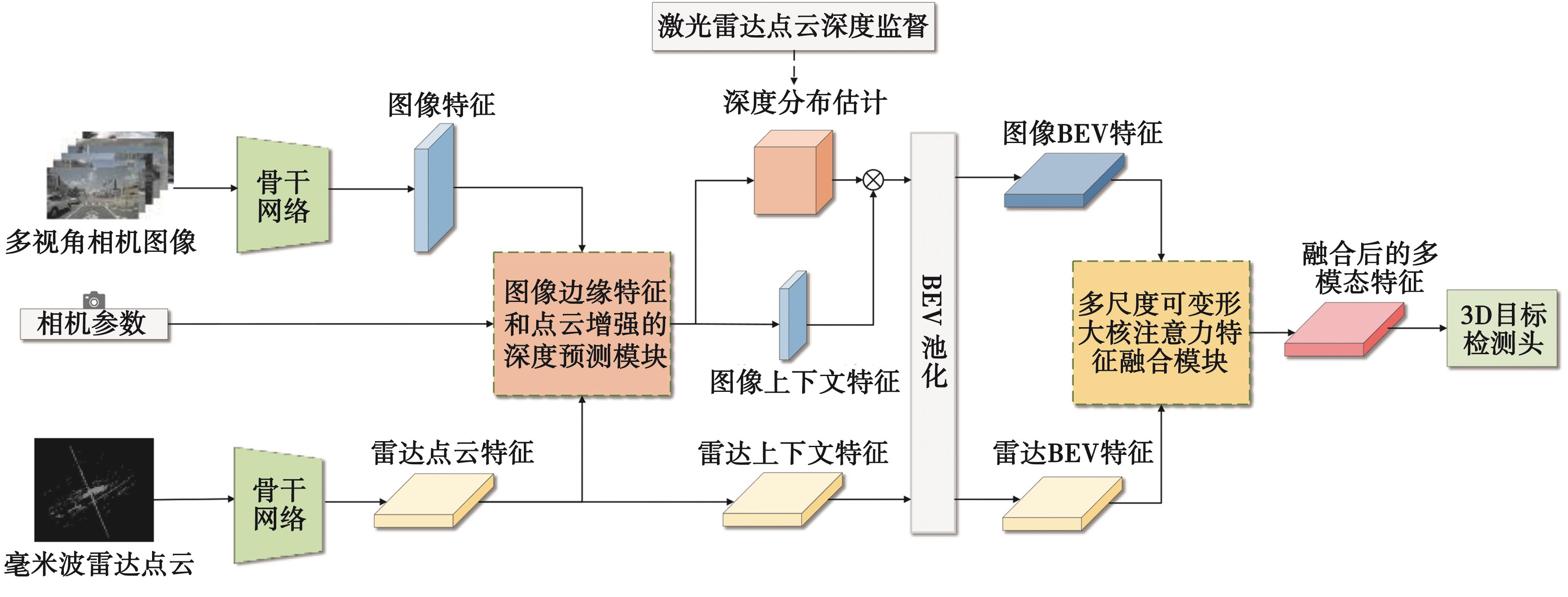 摘要:基于BEV(bird’s eye view)多传感器融合的自动驾驶感知算法近年来取得重大进展,持续促进自动驾驶的发展。在多传感器融合感知算法研究中,多视角图像向BEV视角的转换和多模态特征融合一直是BEV感知算法的重点和难点。笔者提出MSEPE-CRN(multi-scale feature fusion and edge and point enhancement-camera radar net),一种用于3D目标检测的相机与毫米波雷达融合感知算法,利用边缘特征和点云提高深度预测的精度,实现多视角图像向BEV特征的精确转换。同时,引入多尺度可变形大核注意力机制进行模态融合,解决因不同传感器特征差异过大导致的错位。在nuScenes开源数据集上的实验结果表明,与基准网络相比,mAP提升2.17%、NDS提升1.93%、mATE提升2.58%、mAOE提升8.08%、mAVE提升2.13%,该算法可有效提高车辆对路面上运动障碍物的感知能力,具有实用价值。