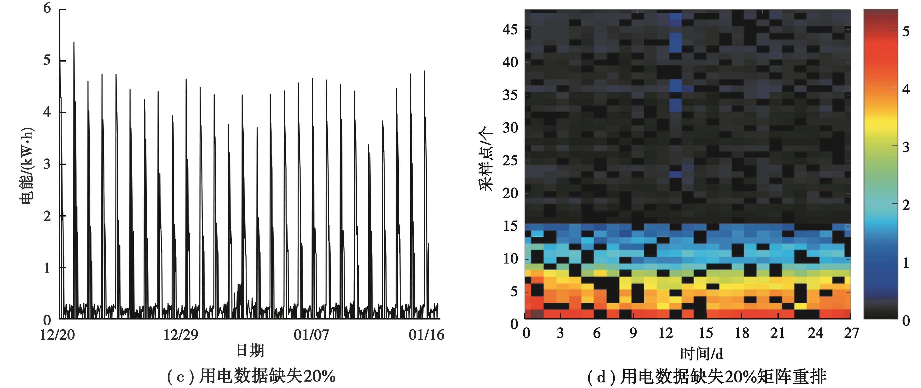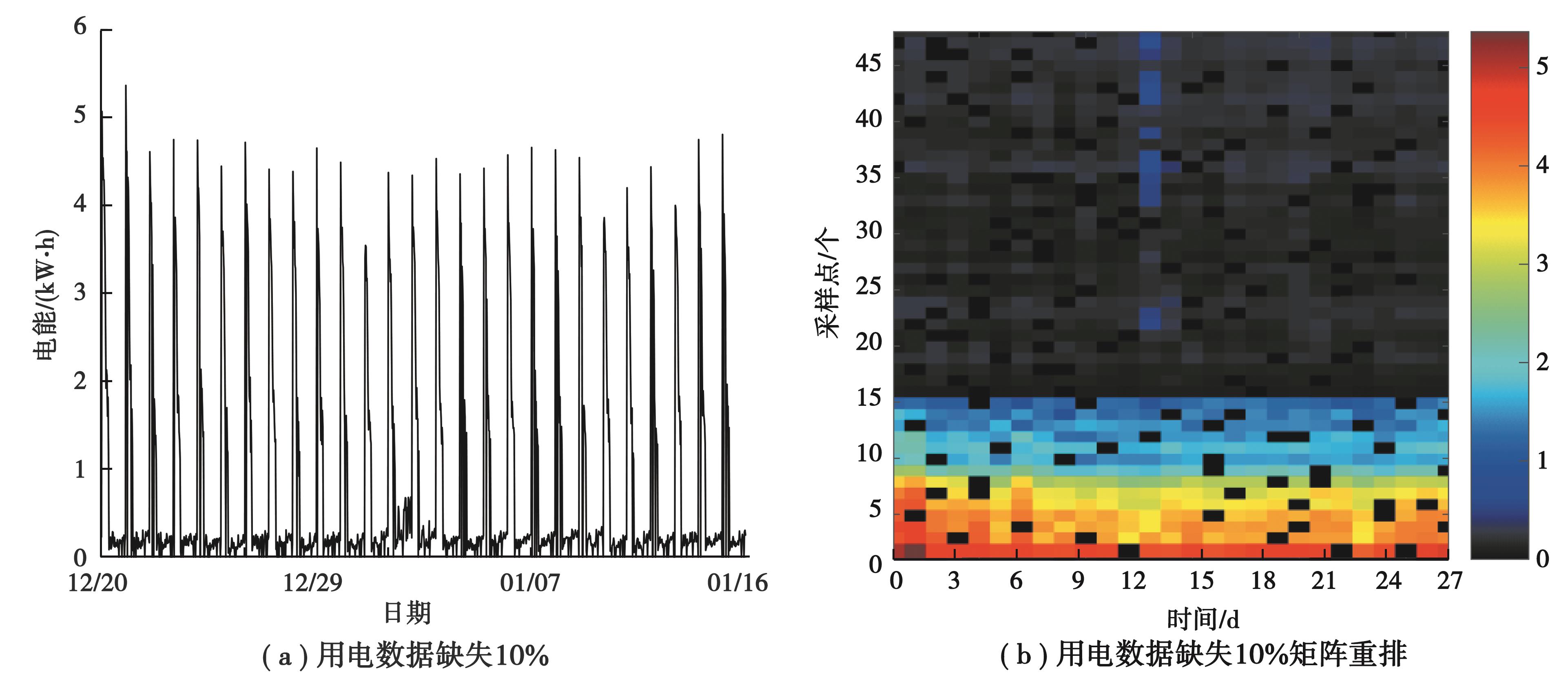摘要:随着智能电表的广泛应用,电网公司积累了大量原始用电数据,然而复杂工作环境下用电信息采集设备仍存在数据丢失的现象。在充分考虑高斯噪声影响的情况下,对存在缺失的原始用电数据进行填补。对独立用户数据序列重排得到原始用电数据矩阵,将其中的理想用电数据矩阵进行非负矩阵分解替代;分别选择F范数和核范数对高斯噪声和具有低秩特性的理想用电数据进行正则化约束以构建优化模型;最后,基于块坐标最小算法框架使用EM算法和直接法交替更新非负矩阵分解得到的矩阵因子,从而有效实现数据的准确插补。仿真分析和实验结果验证了算法的有效性和准确性。
