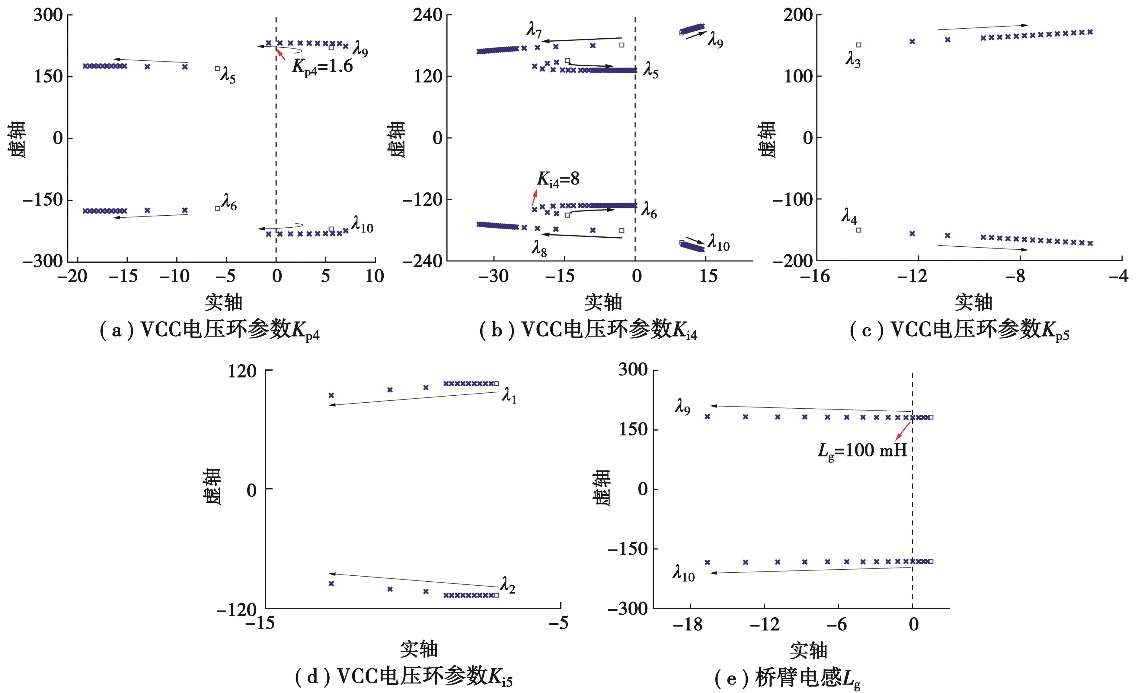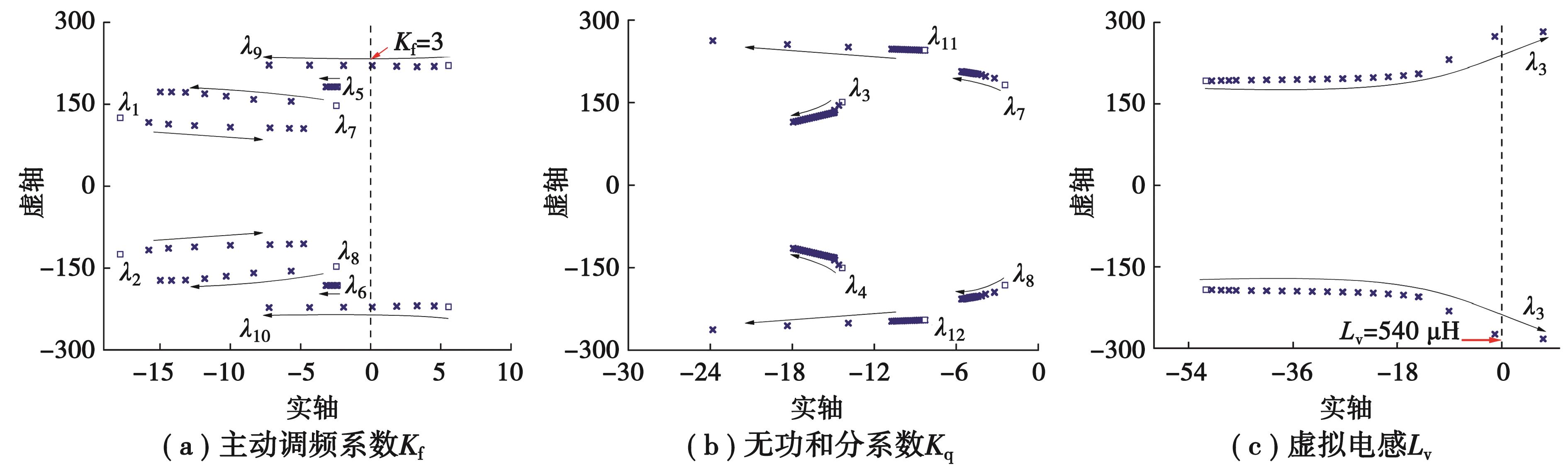 摘要:针对光伏虚拟同步发电机(virtual synchronous generators,VSG)经高压直流输电(modular multilevel converter based high voltage direct current,MMC-HVDC)送出系统所存在的次同步振荡(subsynchronous oscillation,SSO)风险,建立系统线性化数学模型。提出一种改进型虚拟同步控制策略,利用特征值法分析当功率发生扰动时,光伏虚拟同步发电系统有功控制环节、无功控制环节、虚拟电感、MMC-HVDC桥臂电感、电流矢量控制环节对系统SSO的阻尼特性和频率特性均会产生影响,并在PSCAD/EMTDC仿真平台进行验证。结果表明:引入VSG控制后,在外送系统中发生功率扰动的过程中,存在光伏VSG和MMC-HVDC共同参与的次同步振荡模式;在光伏VSG侧,有功调频系数Kf过大或虚拟电感Lv过小均会导致系统失稳;MMC-HVDC侧,电压环积分系数Ki4增大会导致系统失稳,而增大桥臂电感Lg会增强系统稳定性。
