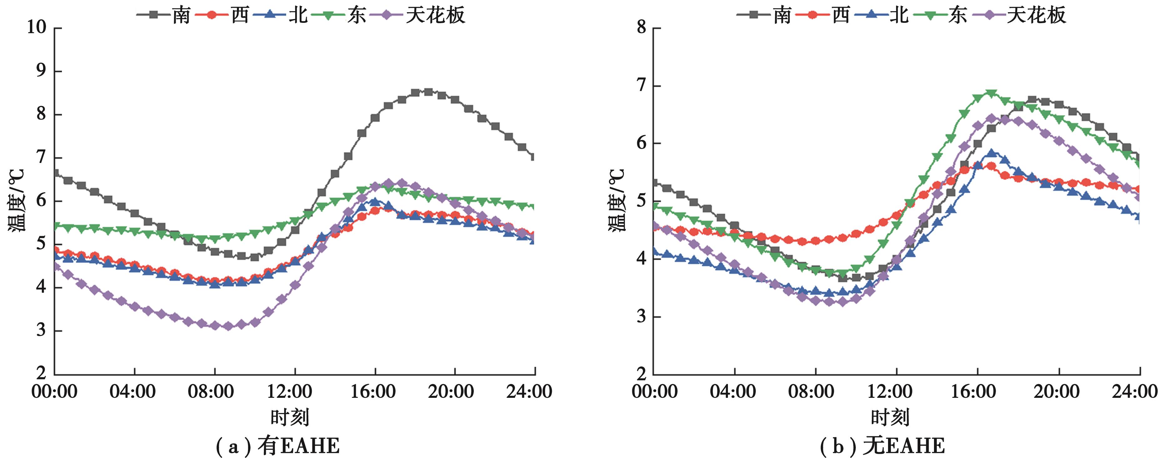 摘要:土壤-空气换热器是一种浅层地热利用技术(earth-to-air heat exchanger, EAHE),可以显著降低建筑能耗。当与太阳能烟囱(solar chimney ,SC)耦合时,利用太阳能烟囱制造的热压将新鲜空气引入室内环境的同时,还可以消除房间的部分负荷。文中研究了夏热冬冷地区SC-EAHE系统改善建筑室内热环境的效果。结果表明,夏季工况下,配置SC-EAHE系统的测试房间相比对比房间夏季室内温度最高能降低3.2 ℃,与室外空气相比最大温降为5.9 ℃,换气次数在2.2~10.1次/h;冬季最大升温1.6 ℃,与室外空气相比最大温升为15.5 ℃,换气次数在3.4~13.5次/h。建筑得热量最大的外表面是屋顶和南墙,与没有EAHE的对比房间相比,在夏季工况下,南墙内表面平均温度降低约1.1 ℃,屋顶内表面温度几乎保持一致;冬季工况下,南墙内表面平均温度升高1.5 ℃,屋顶内表面平均温度升高1.7 ℃。