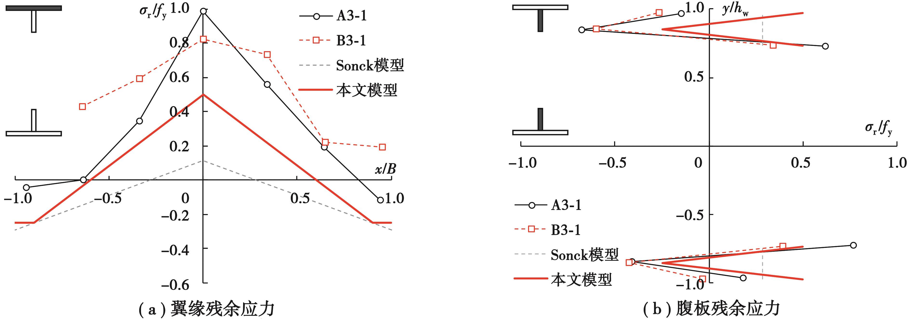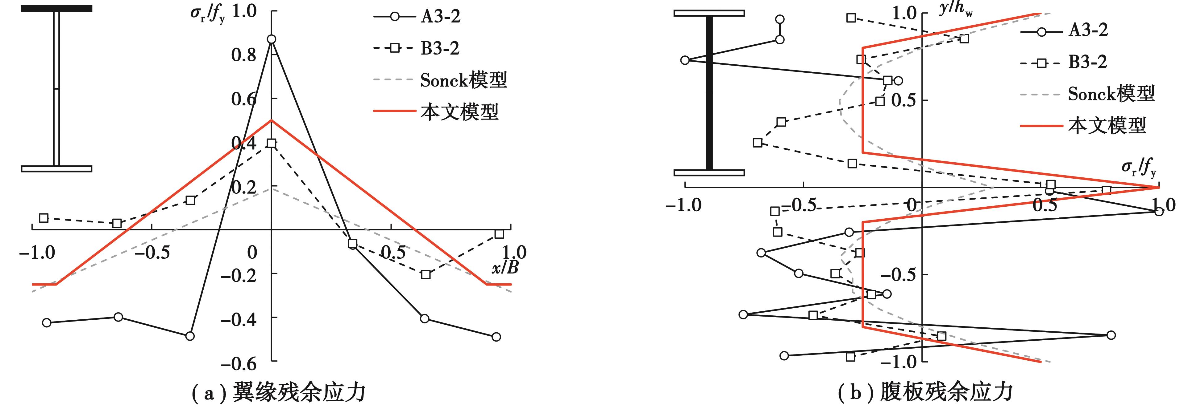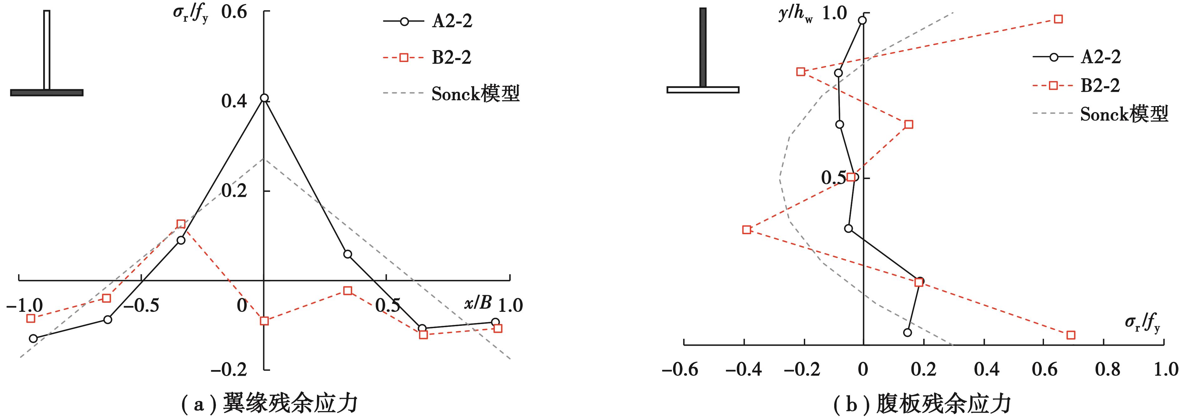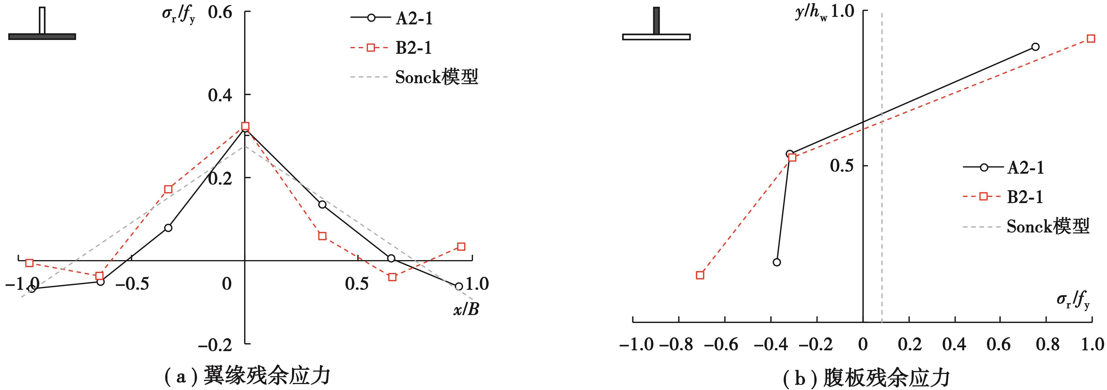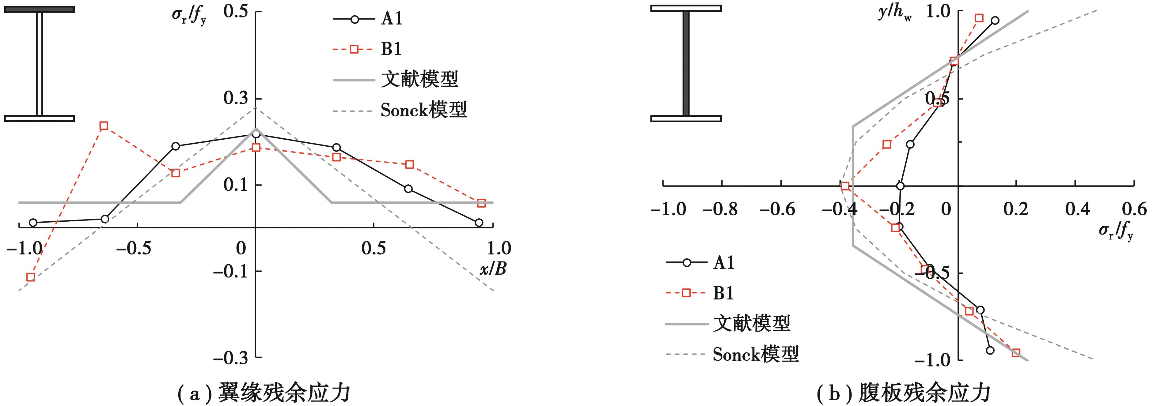 摘要:蜂窝梁作为一种新型构件,通常由热轧工字形或H形截面构件的腹板按照特定折线进行切割,再将上下两部分错位焊接而成。相比于传统实腹梁,具有轻质高强、平面刚度大、造价更低等优点。由于截面增高并带有孔洞,蜂窝梁更容易出现失稳问题,截面残余应力分布对其整体稳定性能具有较大影响。文中采用切条法测得了2个实腹梁、4个矮高腹板、4个蜂窝梁试件截面的残余应力分布,研究了切割和焊接过程对蜂窝梁残余应力的影响。结果表明,蜂窝梁切割和焊接后,翼缘残余应力分布形状相比于实腹梁无明显变化,但翼缘和腹板连接处残余拉应力明显增大,焊接后可达到屈服强度;矮高腹板试件腹板切割处出现了较大残余拉应力;蜂窝梁梁桥截面处腹板残余应力分布相比于矮高腹板试件无明显变化,受焊接影响梁墩截面处拉应力变化较大,焊缝处可达到屈服强度。基于试验结果和已有模型,提出了简化的蜂窝梁纵向残余应力分布折线模型,可为蜂窝梁的稳定性研究和工程设计提供参考。