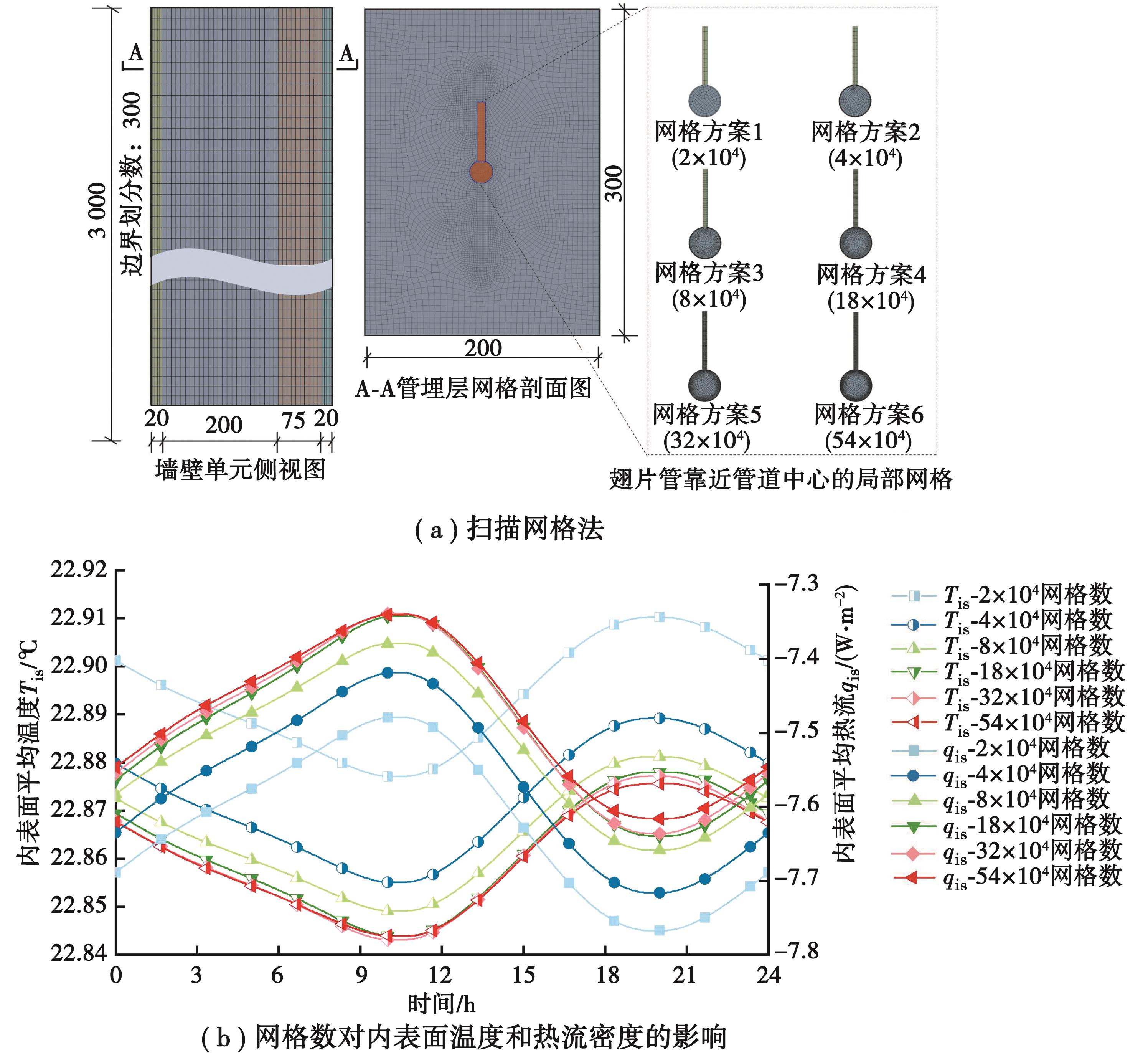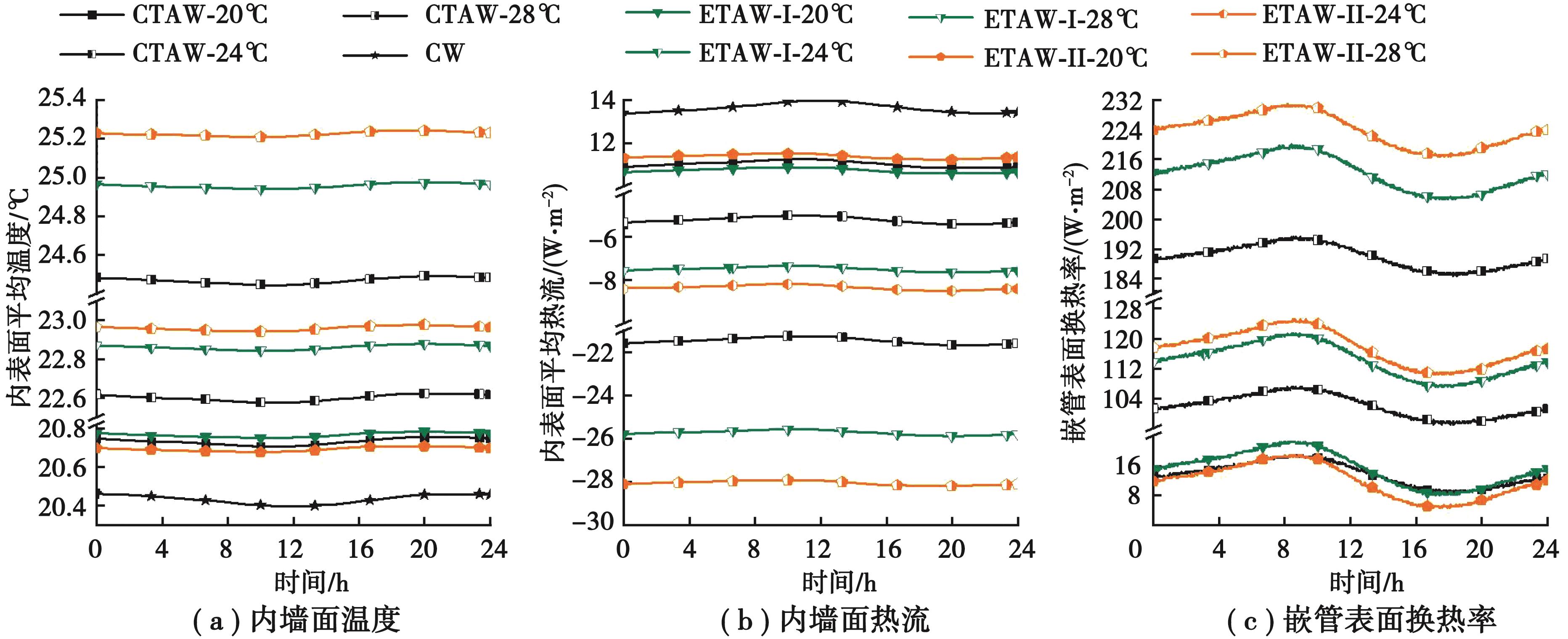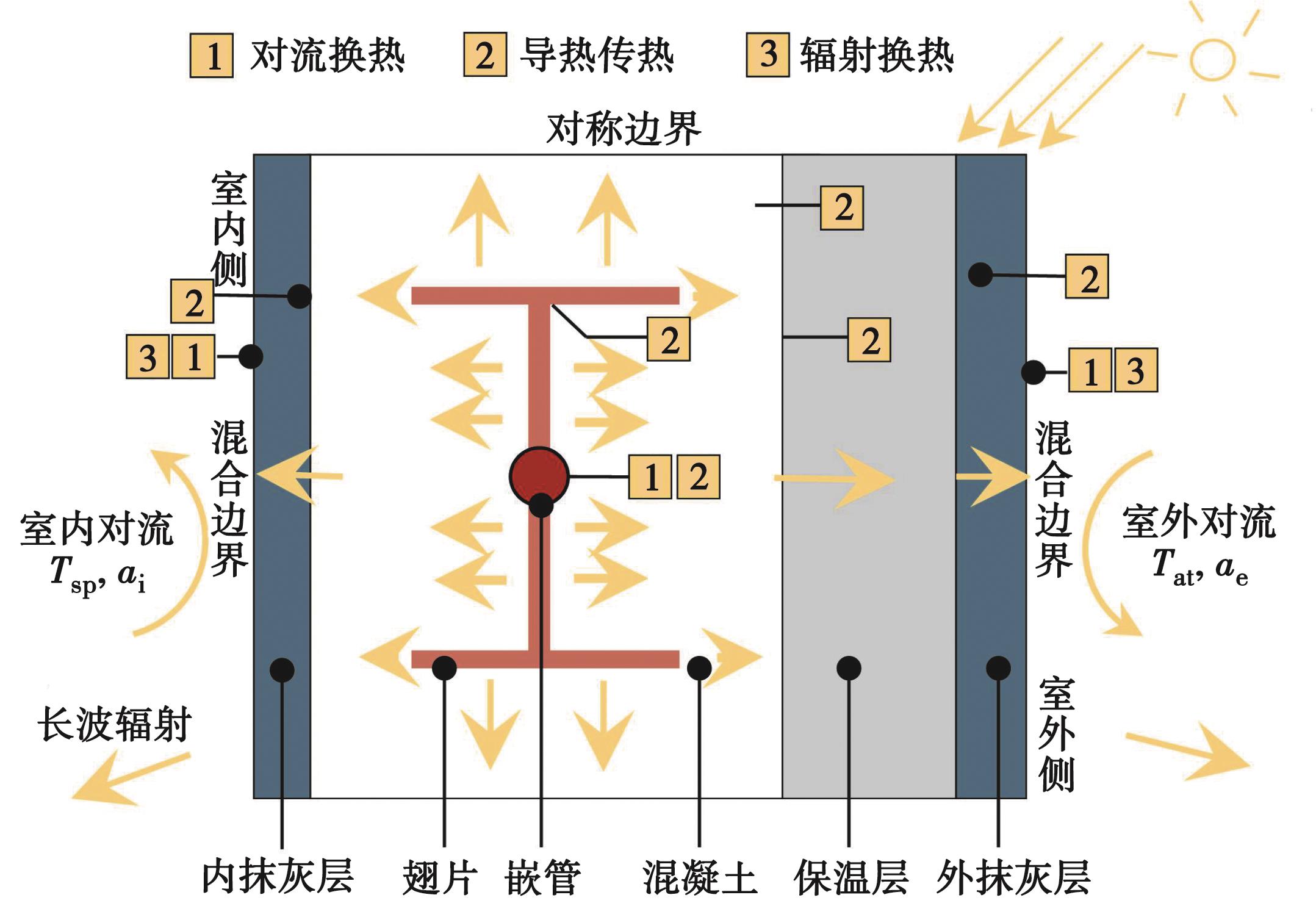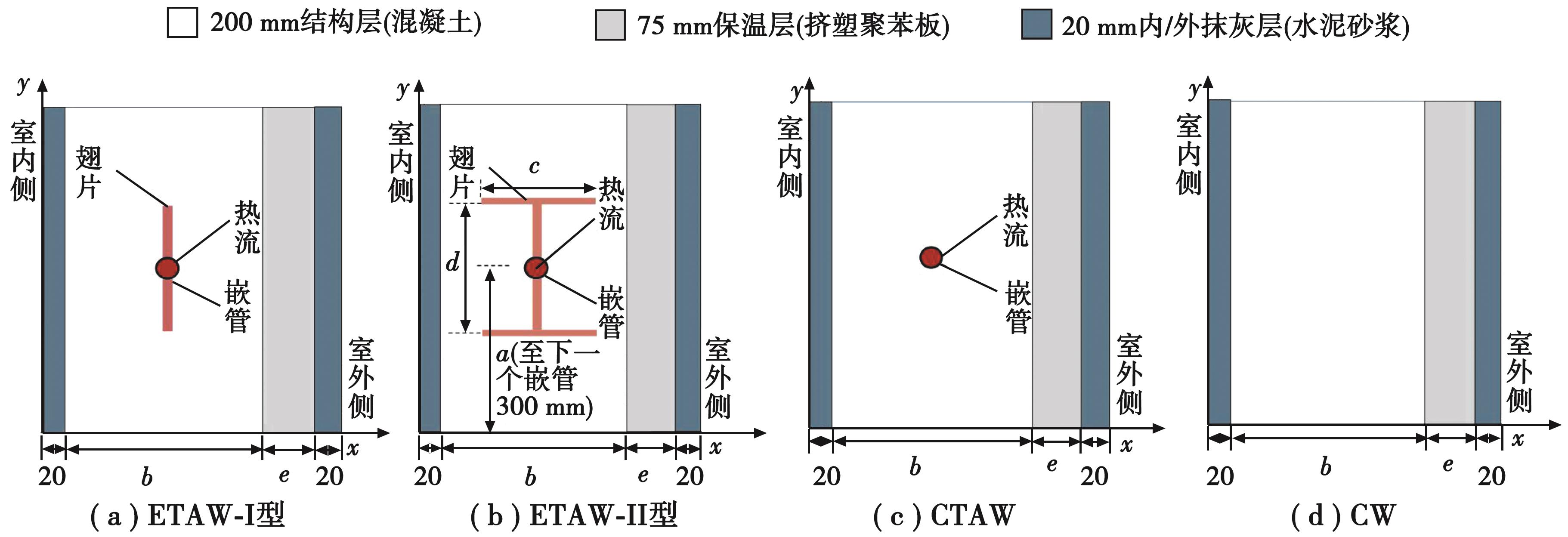 摘要:针对热激活蓄能复合墙体嵌管注热效率与热扩散不匹配问题,提出一种内嵌单层树形金属翅片的定向强化注热设计(enhanced thermally activated wall,ETAW),以提升蓄能效率与节能潜力。通过动态传热模型对比分析ETAW、传统热激活墙体(conventional thermo-activated wall,CTAW)及普通节能墙体(conventional energy-saving wall,CW)的热特性差异,结合局部敏感性分析方法探究翅片参数、气候因子及保温层厚度对经济性的影响。结果表明:ETAW在动态热行为上显著优于CTAW和CW,但性能因注热模式而异;增加主翅片高度和副翅片宽度均能有效降低ETAW总运行能耗和费用,其中副翅片宽度影响更显著;选择较小副翅片角度(如60°)和左朝向安装,运行费用和能耗可分别降低约10.9%和10.7%;保温层厚度与节能效率及经济性密切相关,严寒地区建议消减率不超过40%,夏热地区可放宽至60%。