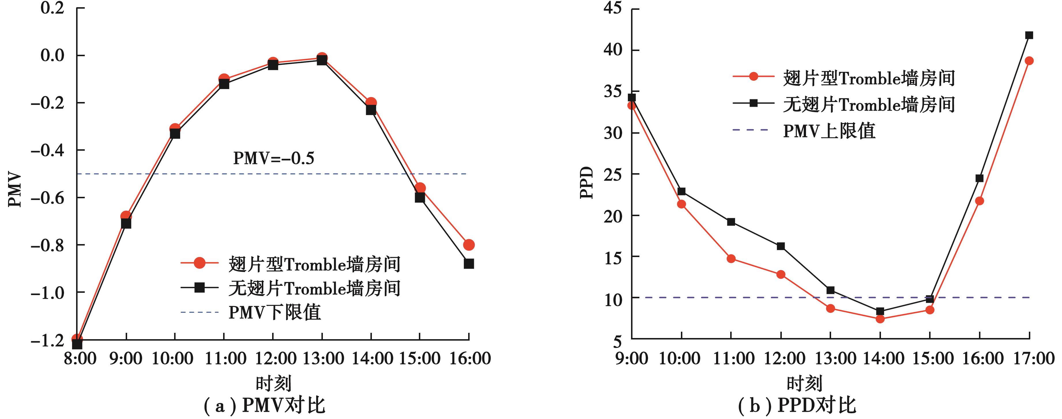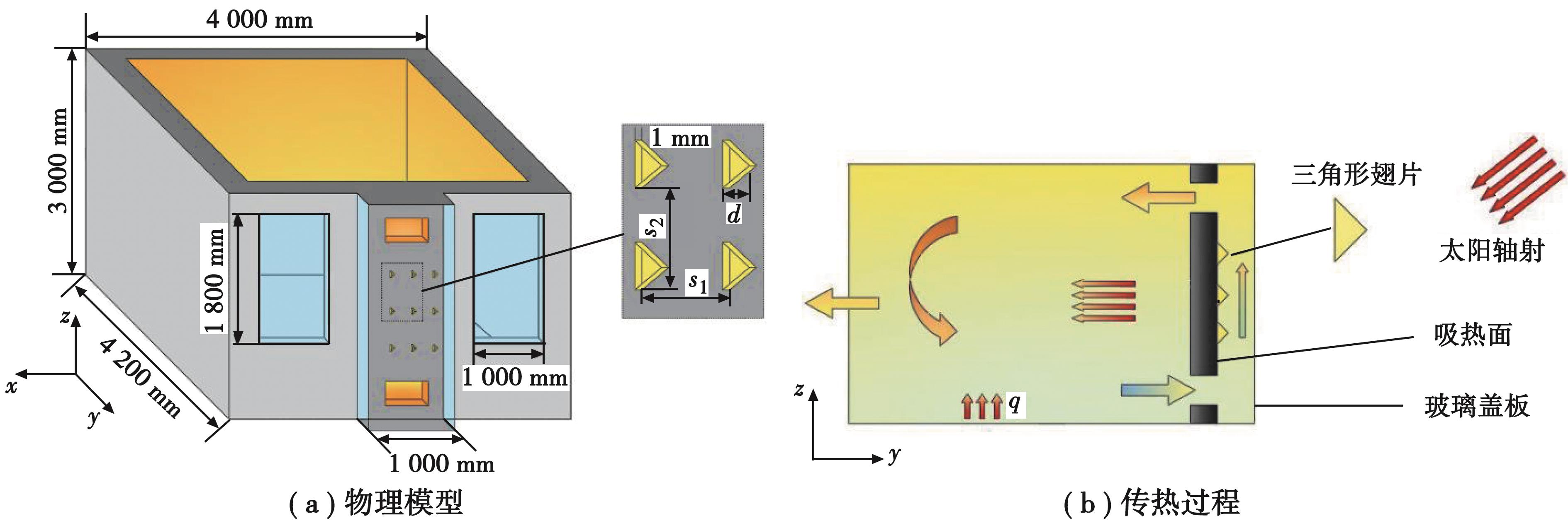摘要:为研究内置翅片型Trombe墙对降低室内供暖能耗的贡献率,以兰州地区普通民宅为研究对象,通过在Trombe墙吸热面上布置翅片来强化传热,从而达到改善室内热环境的目的。结果表明:高度为20 mm、横向间距为0.20 m、纵向间距为0.533 m、顺排布置的等腰直角三角形翅片对Trombe墙传热性能及房间热环境的改善效果最好。在整个模拟时段,翅片型Trombe墙吸热面
