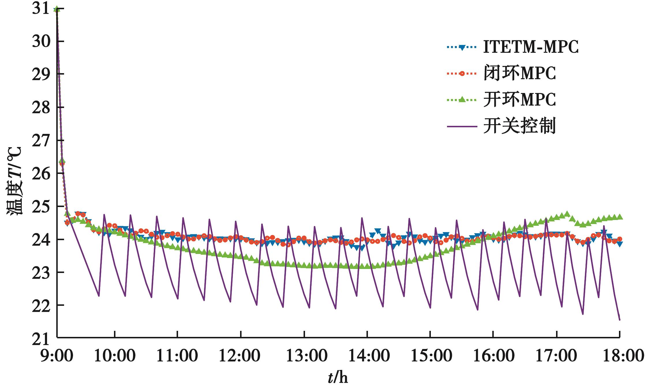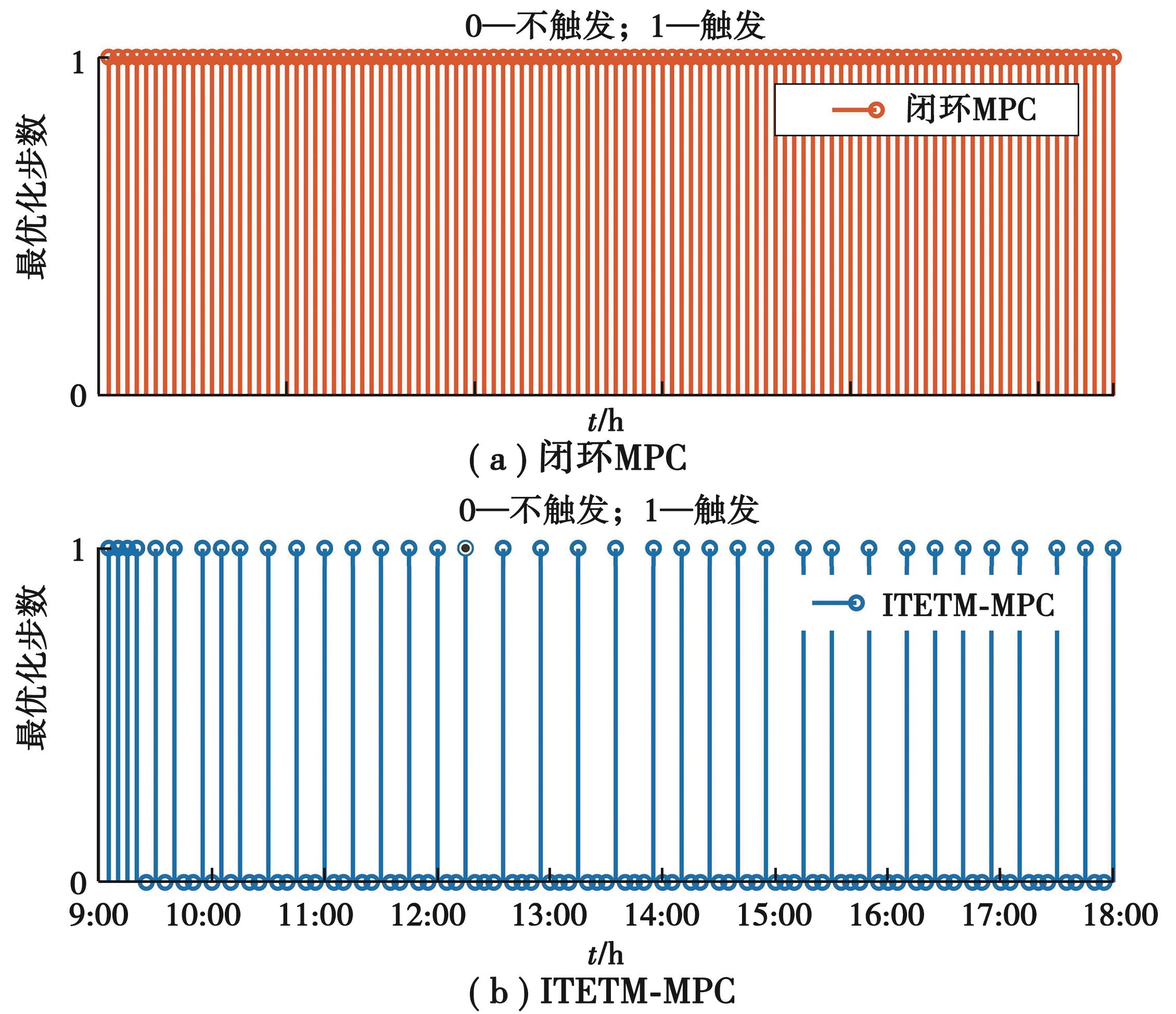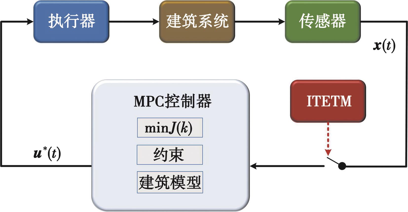 摘要:针对建筑室内热环境模型预测控制中的计算冗余和通信负担问题,提出了一种积分型事件触发控制策略。首先,考虑相邻热区温度的影响,基于等效电路法建立了一种简化的建筑电阻电容(resistance-capacitance,RC)热网络模型,并验证了模型的准确性;然后,提出了一种基于状态误差的积分型事件触发机制(integral-type event-triggered mechanism,ITETM),在此基础上,提出了基于RC热网络的积分型事件触发模型预测控制(model predictive control,MPC)方法;最后,通过EnergyPlus和MATLAB的联合仿真实验对所提出的控制方法性能进行验证。结果表明,所提出的控制策略可以有效减少优化问题的求解计算量和信息传输次数,并在保证室内温度舒适的同时降低建筑运行能耗。