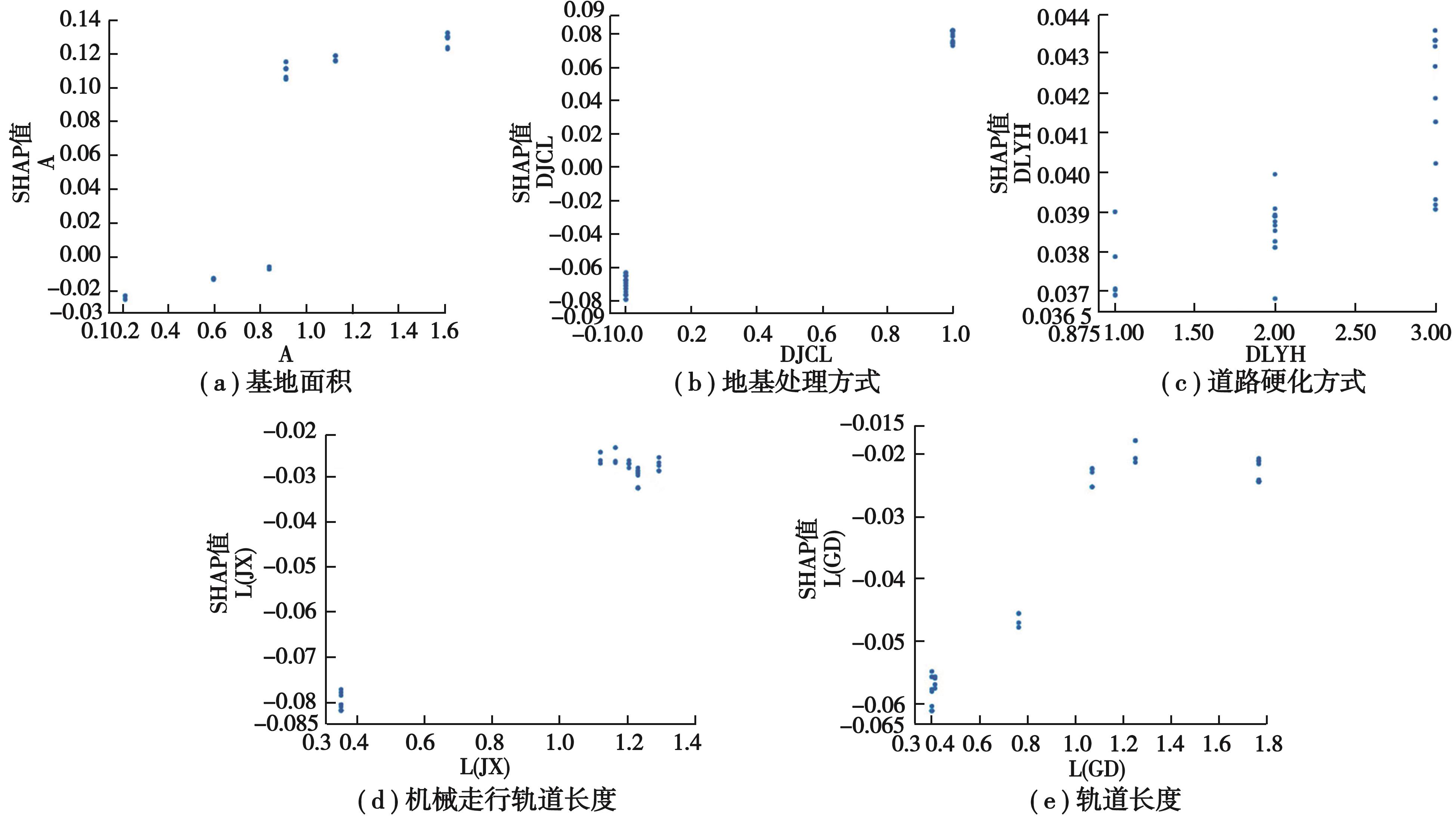 摘要:铺轨基地作为铁路工程重要的大型临时工程,其碳排放是铁路工程物化阶段不容忽视的碳排放来源。通过碳排放因子法建立铺轨基地全生命周期碳排放测算模型;然后提取铺轨基地碳排放特征作为影响因素,并通过特征重要度排序识别关键影响因素;最后通过可解释机器学习模型将关键影响因素对碳排放贡献可视化,剖析关键影响因素对碳排放的影响机理。结果表明:铺轨基地全生命周期碳排放总量为4 825.134~15 122.059 t;铺轨基地建材生产阶段碳排放占比最高(72%~86%);根据铺轨基地影响因素重要度排序结果,识别出5个关键影响因素分别为基地面积、地基处理方式、道路硬化方式、机械走行轨道长度和股道长度;通过SHAP(Shapley additive explanations)概括图和依赖性散点图分析关键影响因素对碳排放产生的影响。研究结论可以为铁路工程铺轨基地碳减排相关研究提供理论依据。
