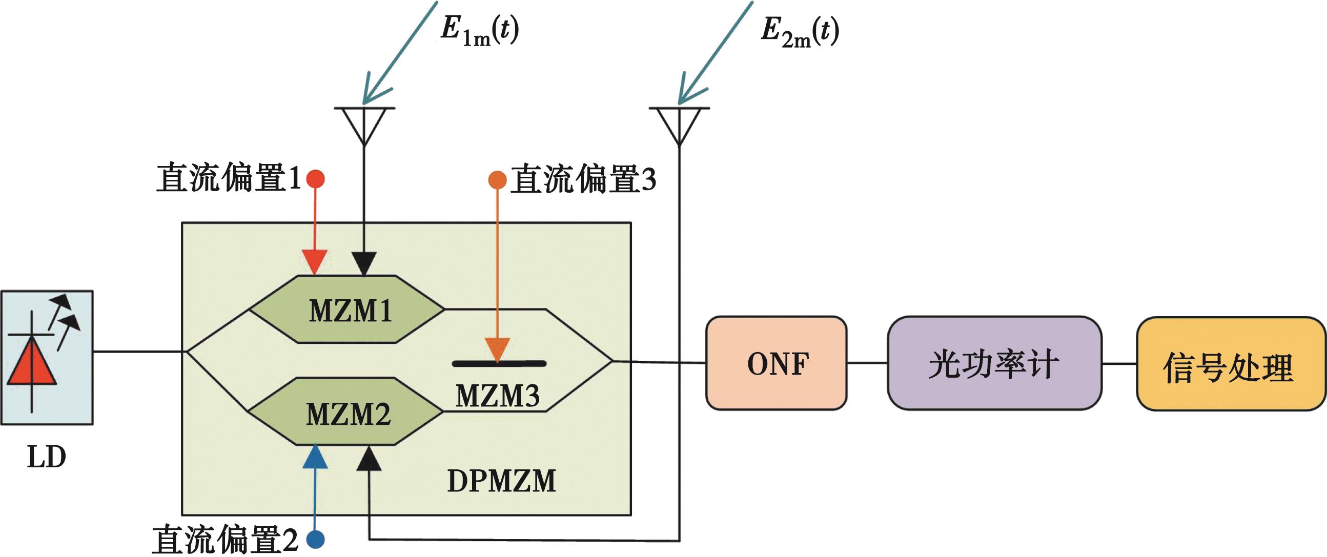 摘要:相关干涉仪测向具有算法简单、测量精度高、抗干扰能力强等优点,是主流测向体制之一。均匀圆阵能够实现二维测向,且具有结构紧凑、测向精度均匀等优点。结合两者优点,笔者研究了均匀圆阵相关干涉仪测向算法。为克服电域鉴相器工作频率低、带宽窄、易受电磁干扰影响的缺点,提出一种微波光子鉴相器。利用双平行马赫曾德尔调制器(dual-parallel Mach-Zehnder modulator,DPMZM)建立一个光干涉仪,将两路微波信号的相位差映射为输出信号的光功率。通过调整DPMZM直流偏置电压,使DPMZM中的相位偏置分别为0°和180°,并分别测量2种情形下的光功率;利用光功率的比值建立相位差映射函数,提高功率测量的分辨率和相位差测量的精度;最后,通过仿真验证了所提方案的有效性,设计的微波光子鉴相器能够实现0°~360°的相位鉴定,测量误差为±1°,对应测向算法的测向精度为1.008 2°。