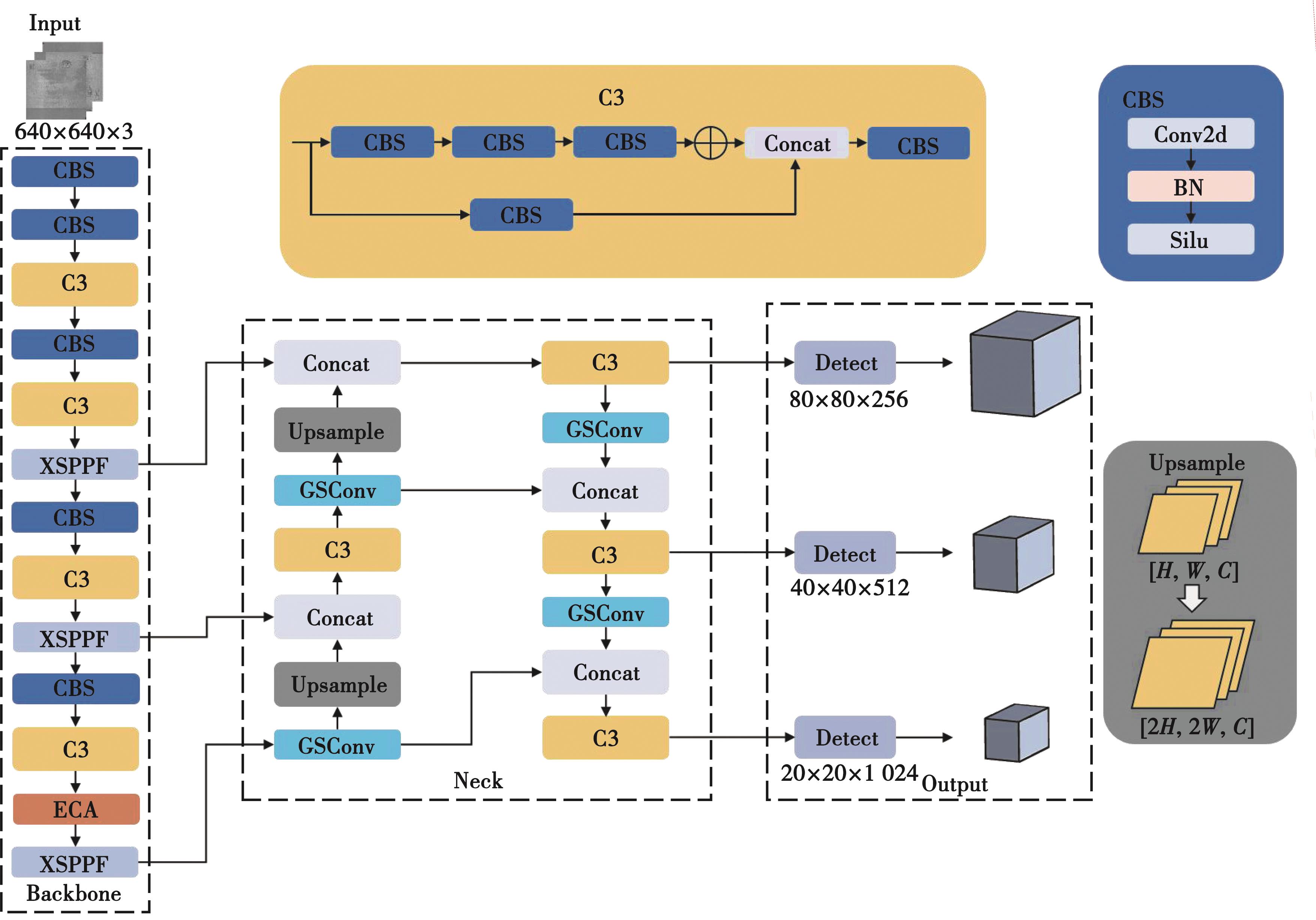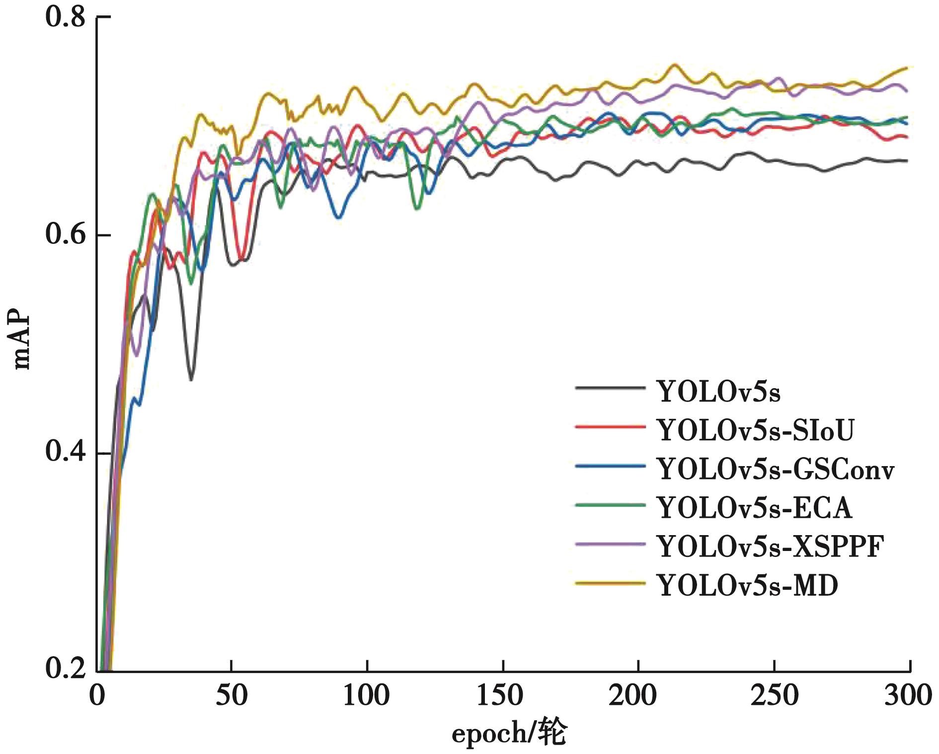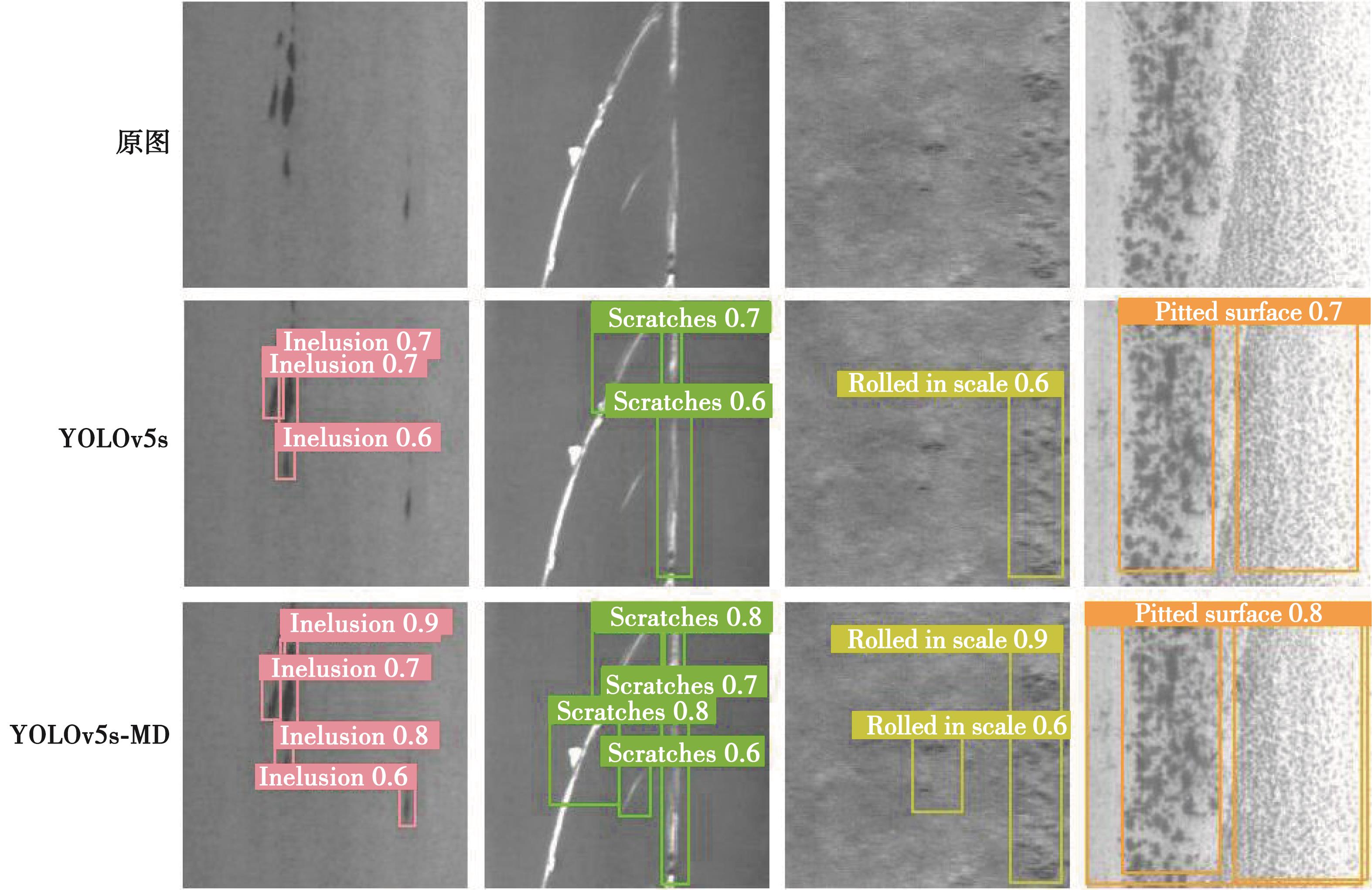 摘要:金属零部件大量应用于生产生活的等各个领域,但其表面缺陷分布不均匀且部分特征微弱,常常造成金属零件表面缺陷检测的漏检和误检。针对这一问题,研究提出一种YOLOv5s-MD(you only look once-modified detection)算法。针对金属表面缺陷特征成分复杂的问题,引入改进的空间金字塔池化模块以提高算法对不同尺度微小目标的深度特征提取能力。针对金属表面缺陷特征分散及计算量增大问题,加入轻量化注意力机制及GSConv模块,提高模型对不同尺度缺陷特征的有效获取。考虑到金属表面缺陷尺寸信息无规律导致边界回归不匹配问题,采用考虑向量角度的损失函数。结果表明,提出的YOLOv5s-MD算法在对金属表面缺陷检测时,检测平均精度mAP@0.5达到75.3%,能够有效提升检测精度,降低误检率。