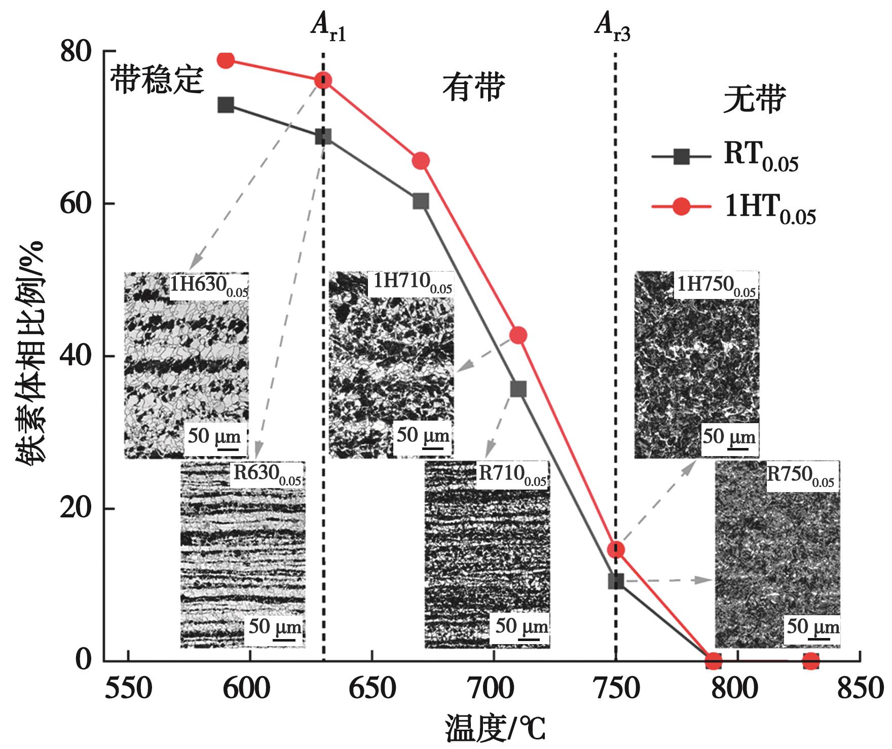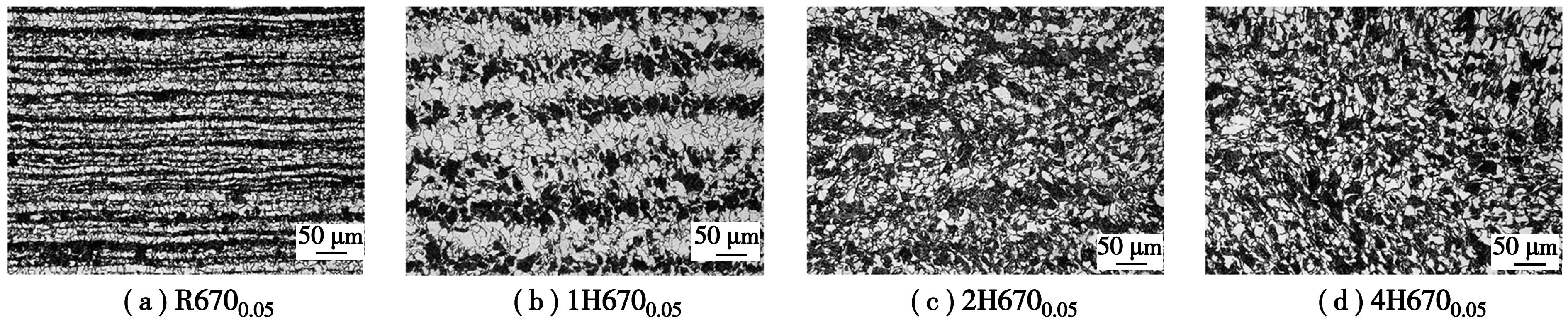 Abstract:The formation mechanism and influencing factors of banded structures in steel materials are investigated through homogenization treatment tests and slow cooling experiments, combined with optical microscopy and electron probe micro-analyzer. The results indicate that banded structures primarily form within the temperature range of the two-phase region, and their banding characteristics become more pronounced with decreasing cooling temperatures. Homogenization treatment effectively reduces the segregation of Mn elements, thereby inhibiting the formation of banded structures. Specifically, under a slow cooling rate of 0.05 ℃/s, short-term homogenization treatment (1 h) weakens the banding characteristics, while long-term homogenization treatment (≥2 h) completely eliminates the banded structures. However, after slow cooling at a rate of 0.02 ℃/s, banded structures still appear in samples even after long-term homogenization treatment (≥2 h). In conclusion, the combined effects of cooling rate and homogenization treatment significantly influence the formation of banded structures in steel materials.