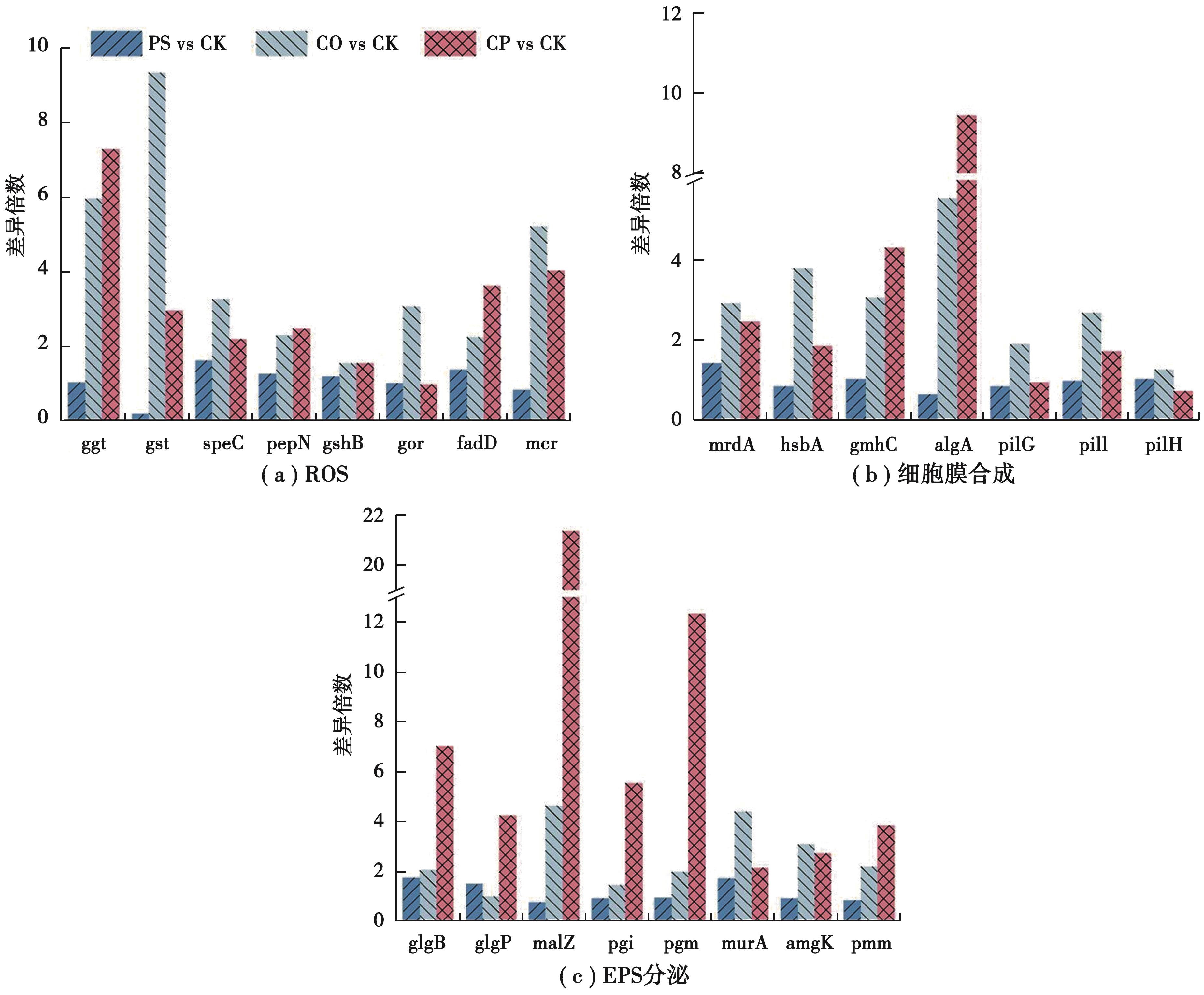 Abstract:The coexistence of polystyrene nanoplastics (PS-NPs) and Cu2+ in wastewater can induce compound stress effects on microorganisms. This study investigated the effects of PS-NPs and Cu2+ on the growth, nitrogen removal, and biochemical characteristics of the aerobic denitrifying bacterium Pseudomonas stutzeri, and further elucidated the stress mechanism through transcriptomics analysis. The results showed that under exposure to 50 mg/L PS-NPs, bacteria growth activity increased by 25.3% compared to the control, accompanied by enhanced nitrogen removal and significant upregulation of genes related to ribosome function, the tricarboxylic acid (TCA) cycle, and ABC transport pathways. In contrast, under 10 mg/L Cu2+ stress, bacterial growth activity decreased by 83.2% compared to the control, with severe inhibition, cell membrane damage, and marked downregulation of ribosomal, nitrogen metabolism, and ABC transport pathways. Genes related to extracellular polymeric substances (EPS) secretion and cell membrane synthesis were significantly upregulated. Under combined stress, Cu2+ exerted the dominant inhibitory effect; however, PS-NPs promoted EPS secretion, which, along with PS-NPs themselves, adsorbed part of the Cu2+ ions and mitigated their toxicity.