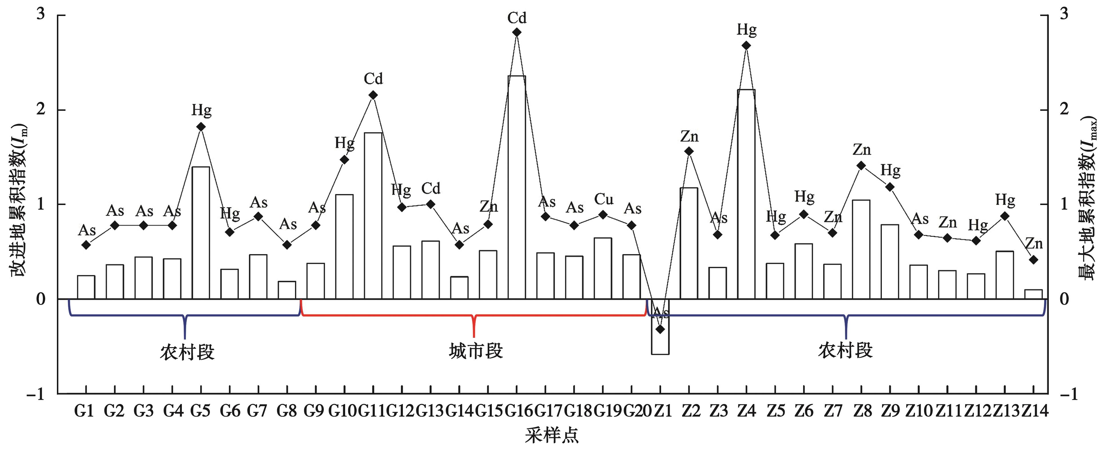 Abstract:The spatial distribution of heavy metals in the sediments of mountainous rivers is significantly influenced by population density and industrial structure. In December 2019, sediment samples were collected from the Taohuaxi River-a typical mountainous river spanning both urban and rural areas in Changshou District, Chongqing-to investigate heavy metal contamination. The concentrations of eight heavy metals were measured, revealing that their average contents in the urban section were higher than those in the rural section, with cadmium(Cd) and copper (Cu) showing significant differences. Population density was found to be a key factor shaping the spatial distribution of heavy metals in river sediments. According to the improved geoaccumulation index (Im), 20.59% of the monitored sites exhibited near moderate or moderate pollution, indicating localized enrichment of heavy metals along the river. Based on the potential ecological risk index (RI), 67.65% of sites presented medium or high potential ecological risks. The sediment quality guidelines (SQGs) assessment further indicated that heavy metals posed a moderate toxicological risk to aquatic organisms. Overall, the ecological risk of heavy metals in the sediments of the Taohuaxi River should not be overlooked. Positive matrix factorization (PMF) model analysis identified five major sources of heavy metals, with contributions in the order of aquaculture sources (38.79%) > natural sources (20.40%) > mixed anthropogenic sources (20.35%) > industrial sources type II (16.69%) > industrial sources type I (3.78%).