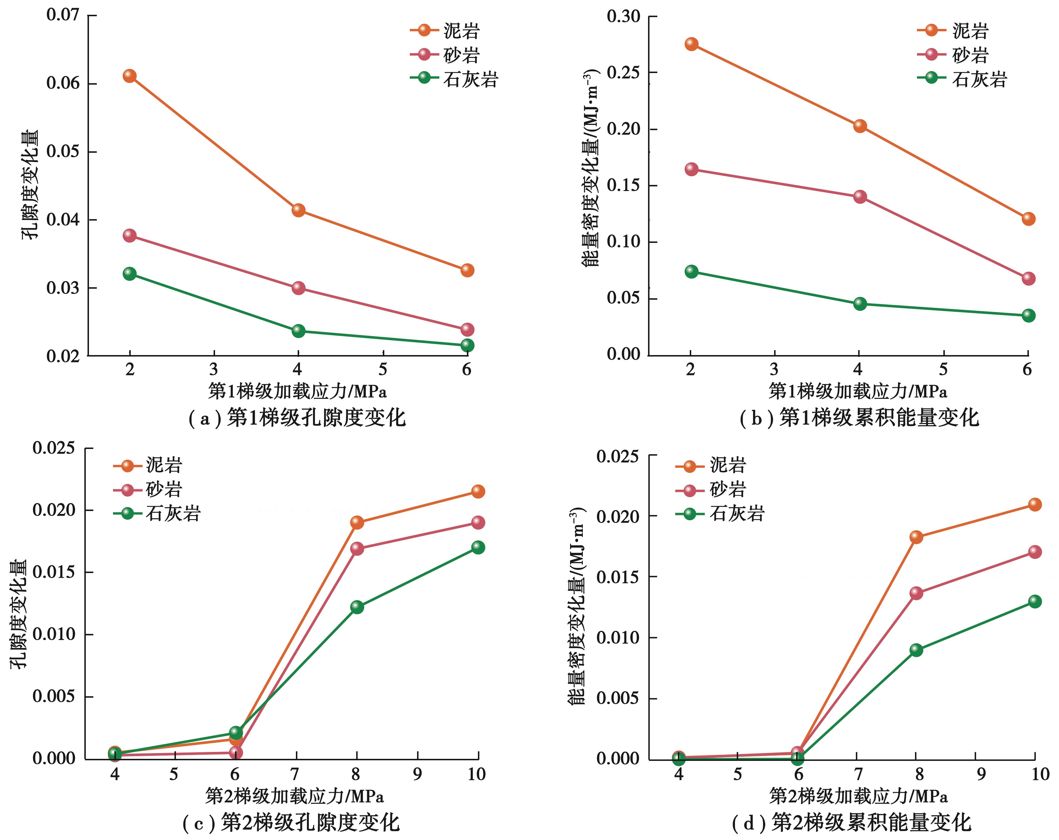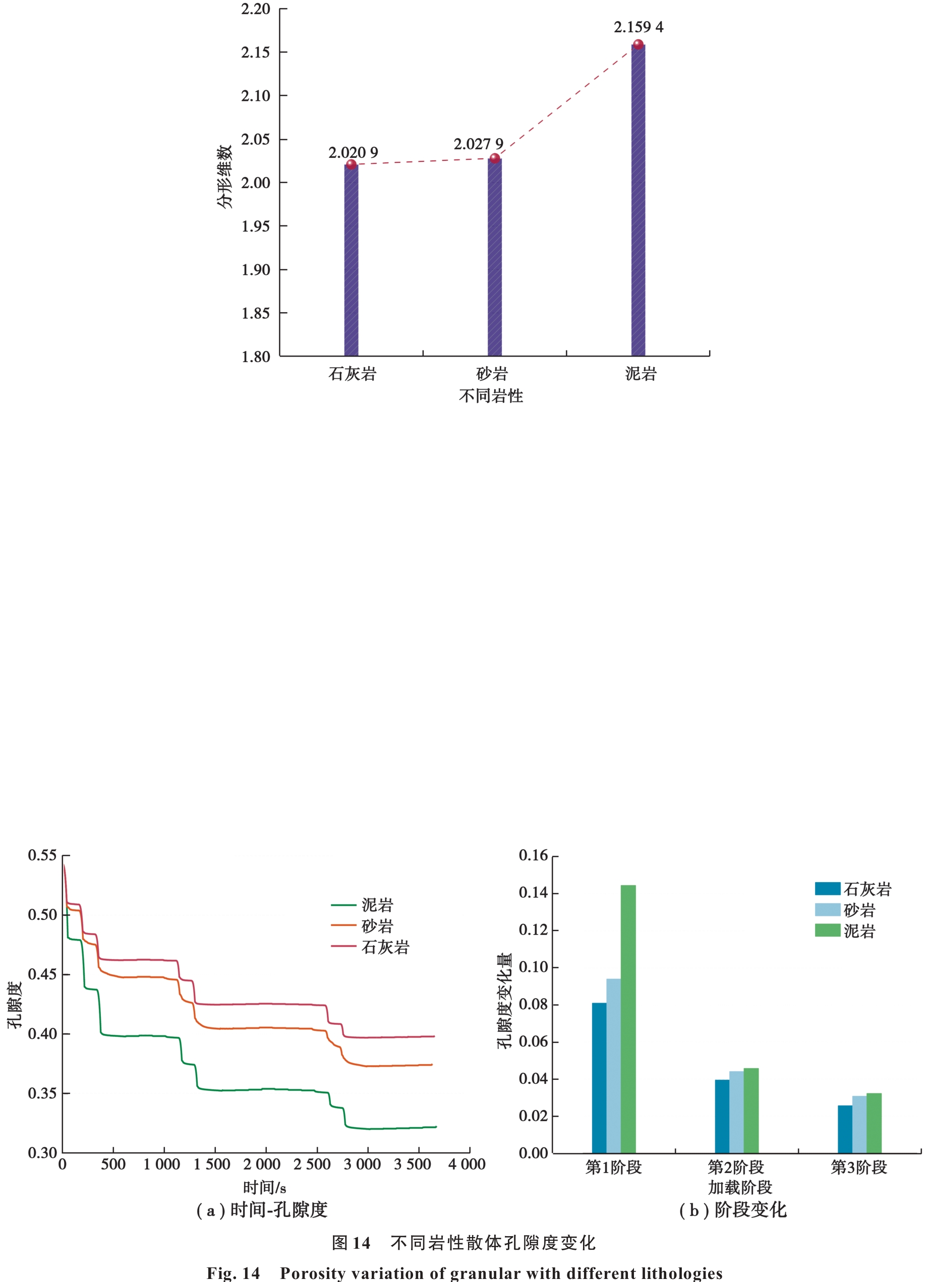 Abstract:To investigate the compaction and re-crushing characteristics of fractured rock under multiple mining. This study conducted cyclic loading and unloading mechanical tests on aggregates of different lithologies. The variation patterns of mechanical parameters of granules were systematically investigated. The granules energy evolution characteristics and fractal dimension were clarified. The research findings indicate that low-strength mudstone granules exhibit the greatest strain under identical loading conditions, requiring relatively low cumulative energy during compaction. Meanwhile, mudstone shows the highest fractal dimension, indicating the greatest degree of crushing. During the initial loading stage, the granules porosity rapidly decreases, the compressive modulus rises, and the granules is rapidly compacted. When stress exceeds a certain threshold, the compressive modulus continues to decrease, energy density increases significantly, and the granules undergo extensive fracture. The research findings provide significant support for elucidating the compaction and re-crushing mechanisms of granules in caving zones under multiple mining.