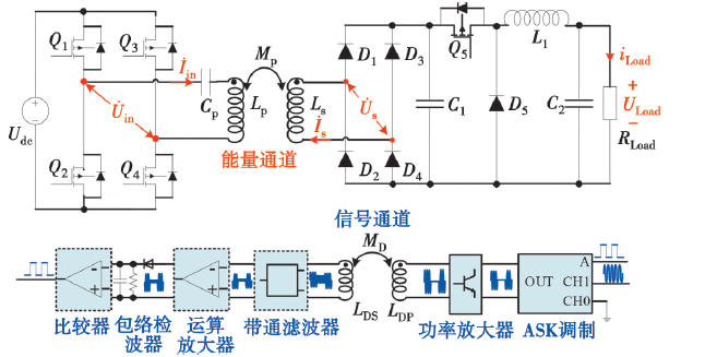 Abstract:To solve the problem of power and data parallel transmission simultaneously in wireless power transfer system for rotating mechanism, a parallel transmission method of power and signal based on dual-channel mode was proposed. Based on analyzing the power and signal transmission mechanism in dual-channel mode, a mutually decoupled power and signal transmission coil is designed. The power transmission is based on the induction coupling technology of series-none (SN) topology, and the signal transmission is based on the amplitude modulation mode, combined with the envelope demodulation technology, realizing the two-way signal transmission. Experimental results verify the effectiveness of the proposed method, the power signal transmission channels do not interfere with each other, and the signal transmission error rate is zero.