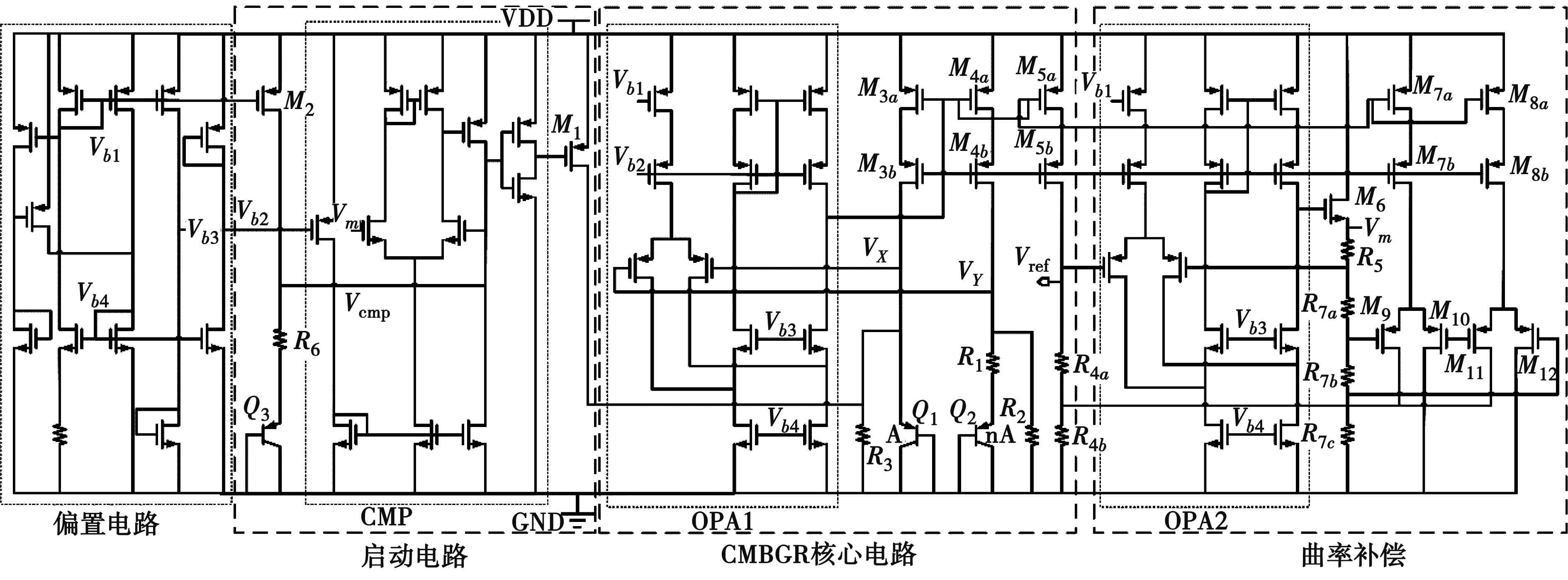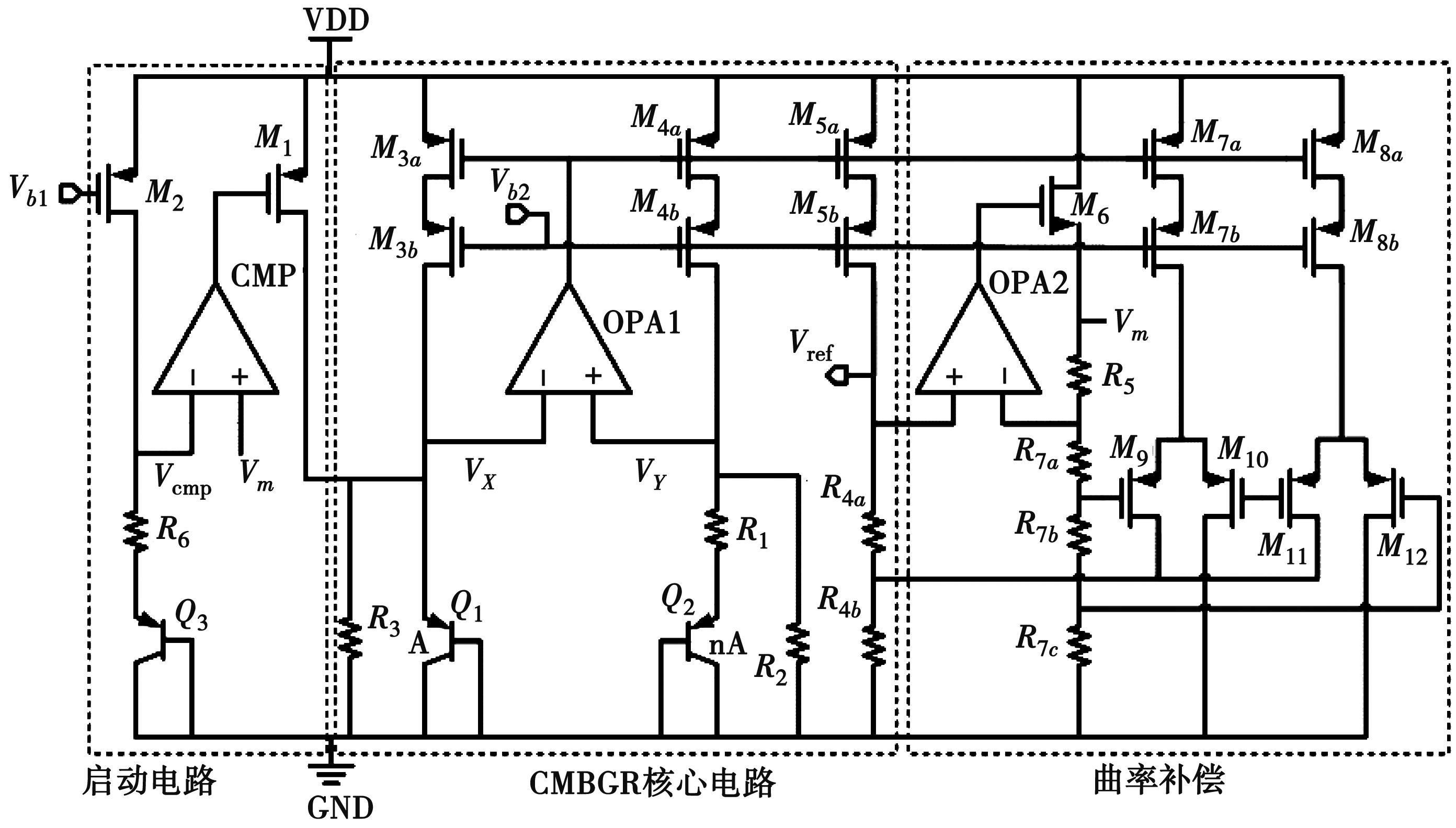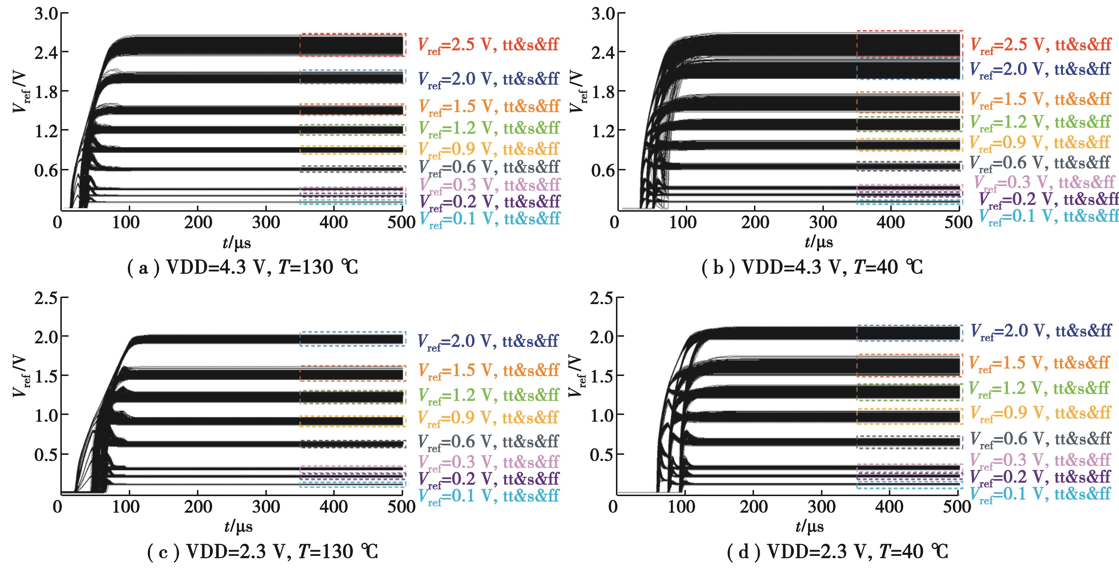Abstract:This paper proposes a novel startup circuit for a current-mode bandgap reference (CMBGR) to resolve startup issues in low-voltage CMOS processes while balancing design cost, PVT (process, voltage, temperature) robustness, CMBGR performance, and curvature compensation compatibility. The proposed circuit employs a dynamic threshold voltage mechanism, implemented in 0.11 μm CMOS technology, which dynamically adjusts the startup threshold to ensure reliable operation across varying PVT conditions. Validation through 20 400 Monte Carlo simulations under diverse PVT settings confirmed successful startup without failure. The CMBGR operates over a supply voltage range from 2.3 V to 4.3 V, delivering a configurable reference voltage output from 0.1 V to 2.0 V. A temperature coefficient of 8.7×10-6 /℃ was achieved, which is superior to current 41.5×10-6 /℃ and maintains the inherently low-temperature sensitivity of the CMBGR. Moreover, the design preserves full compatibility with curvature compensation strategies and requires no additional circuitry or performance trade-offs. This approach provides a comprehensive and efficient solution for achieving stable startup in configurable CMBGR applications.