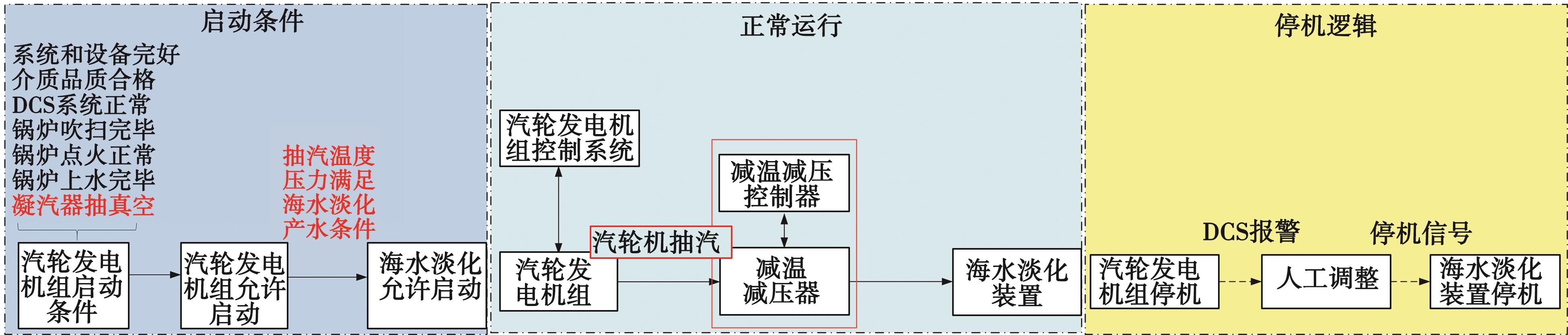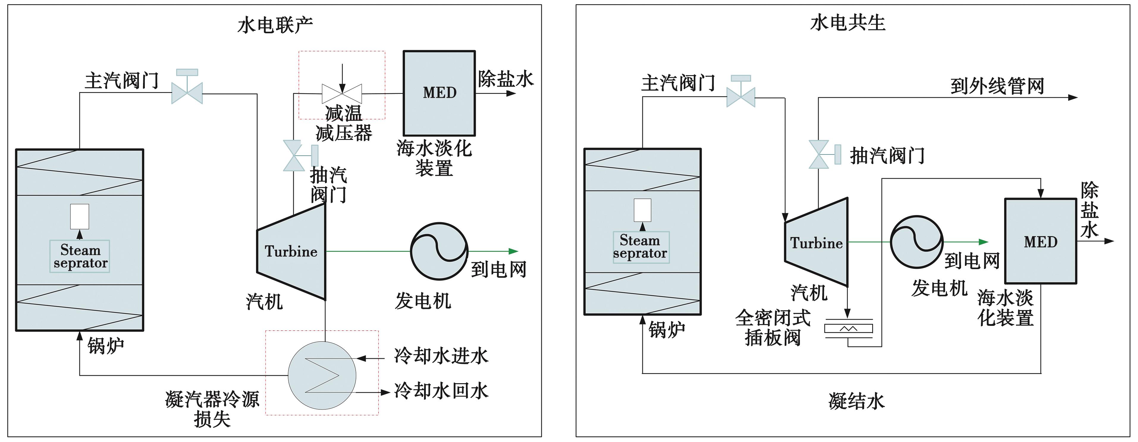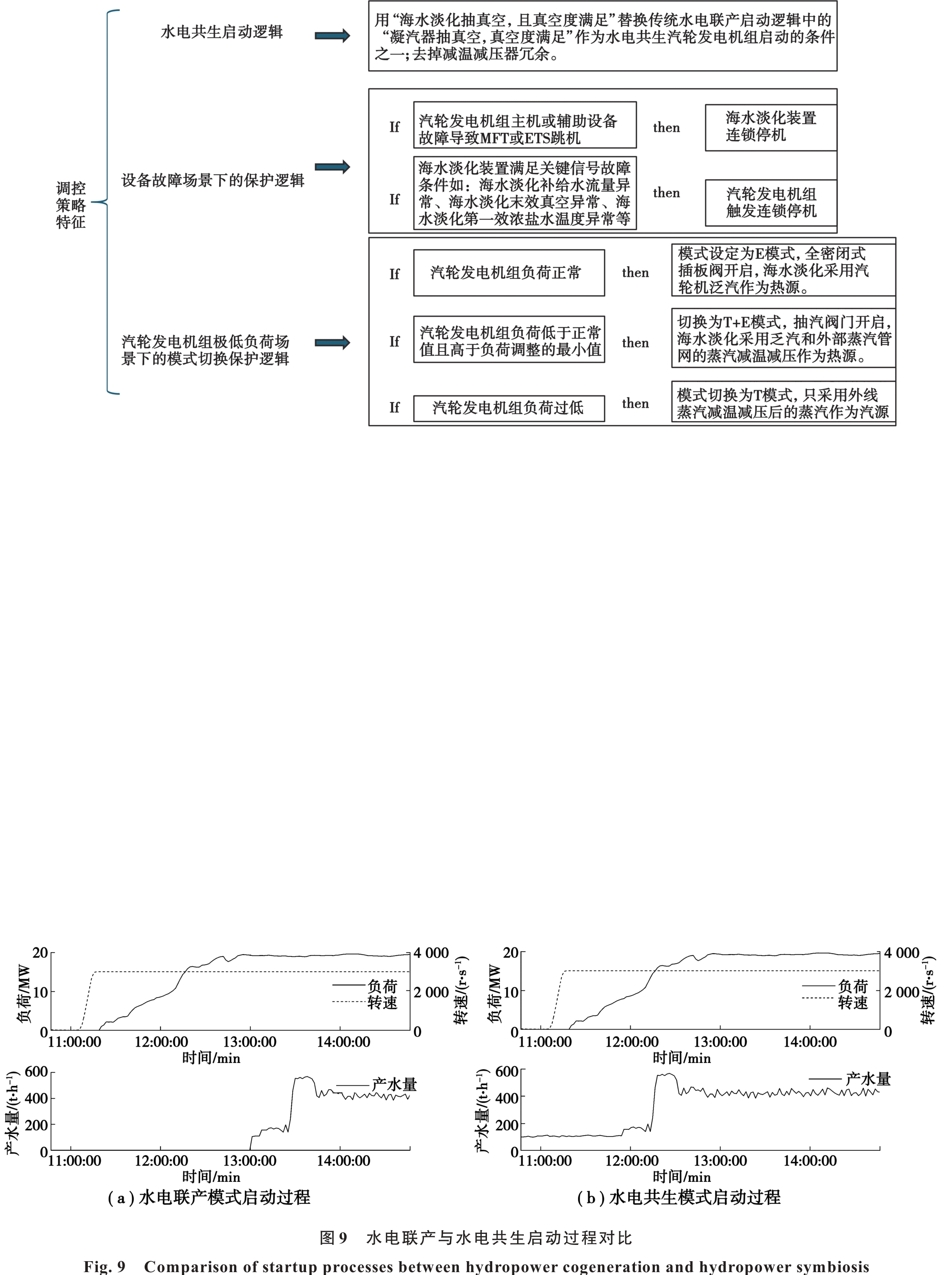 Abstract:Focusing on a hydropower-seawater desalination symbiosis system implemented in a coastal steel enterprise, this study addresses the challenges of using exhaust steam from a steam turbine as the heat source for low-temperature multi-effect desalination. In this highly coupled configuration between the steam turbine generator set and the desalination unit, coordinated safety control remains difficult and lacks mature technical solutions. To ensure equipment safety, this paper proposes a set of safety control strategies tailored to the symbiosis process, including start-up logic, equipment safety interlock protection under failure conditions, and mode-switching protection for the desalination unit under low steam turbine load. These strategies establish bidirectional interlock protection between the steam turbine generator set and the desalination unit. Application of the proposed control scheme in an actual coastal steel plant verifies its effectiveness. The strategy enables safe and orderly start-up and achieves bidirectional emergency shutdown when either subsystem fails, allowing desalination shutdown induced by turbine failure and vice versa. Concurrently, it accommodates large-scale load fluctuations in the plant’s gas supply, significantly enhancing operational safety.