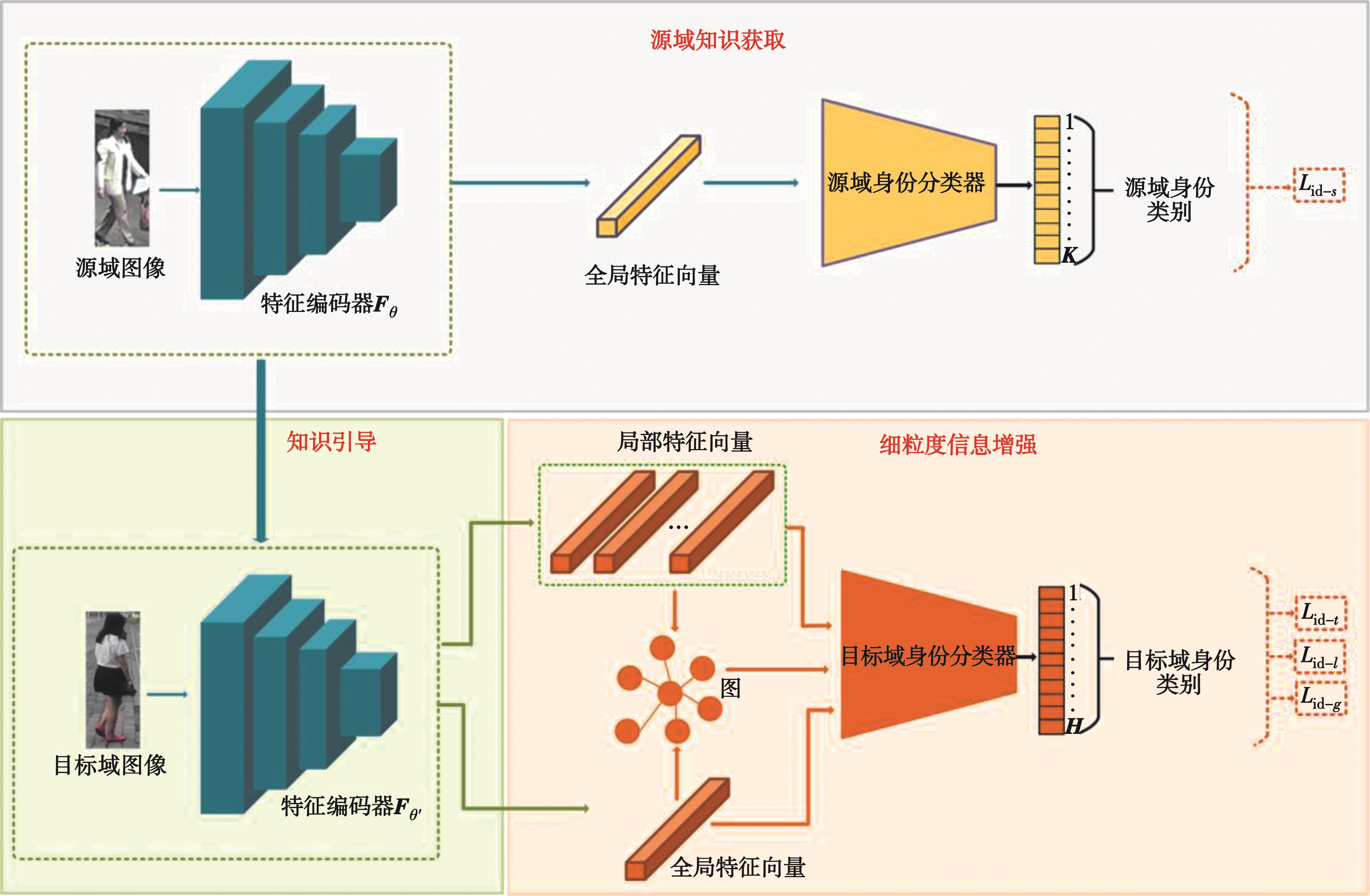 Abstract:Unsupervised domain adaptation (UDA) aims to transfer knowledge learned from a labeled source domain to an unlabeled target domain, playing a very important role in person re-identification. In real-world applications, video-based pedestrian data are often available, making it feasible to obtain single-camera-view labels in the target domain. However, existing UDA methods typically ignore this readily accessible information, thereby limiting performance improvements. To address this issue, we propose a knowledge-guided and fine-grained information enhancement framework for UDA person re-identification. A novel paradigm is introudced that leverages single-view labeled pedestrian samples in the target domain to fully exploit intra-domain information. Meanwhile, source-domain knowledge is used as guidance to assist the model to extract more discriminative target-domain pedestrian representations, effectively mitigating domain shift compared with conventional knowledge-transfer strategies. Furthermore, local pedestrian cues are integrated into global features to strengthen fine-grained feature expression. Experiments conducted on two publicly datasets fully demonstrate the effectiveness and superiority of the proposed method.