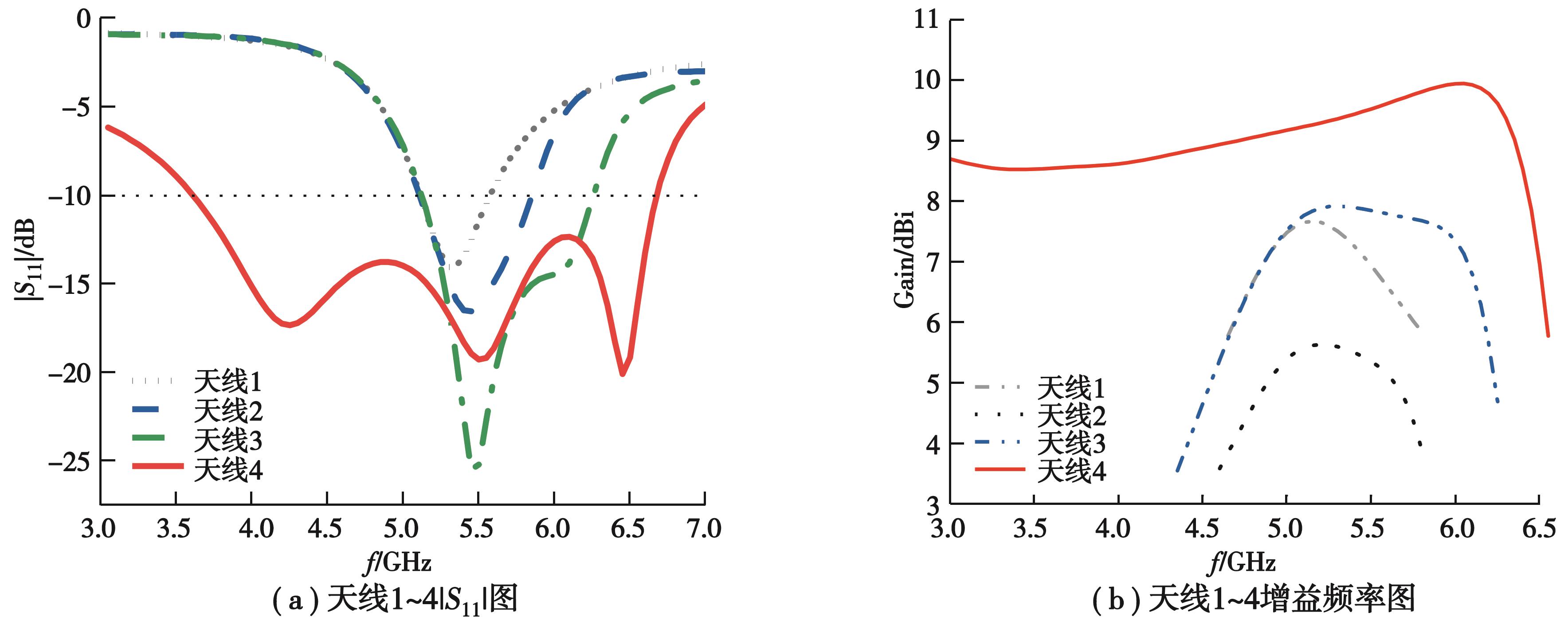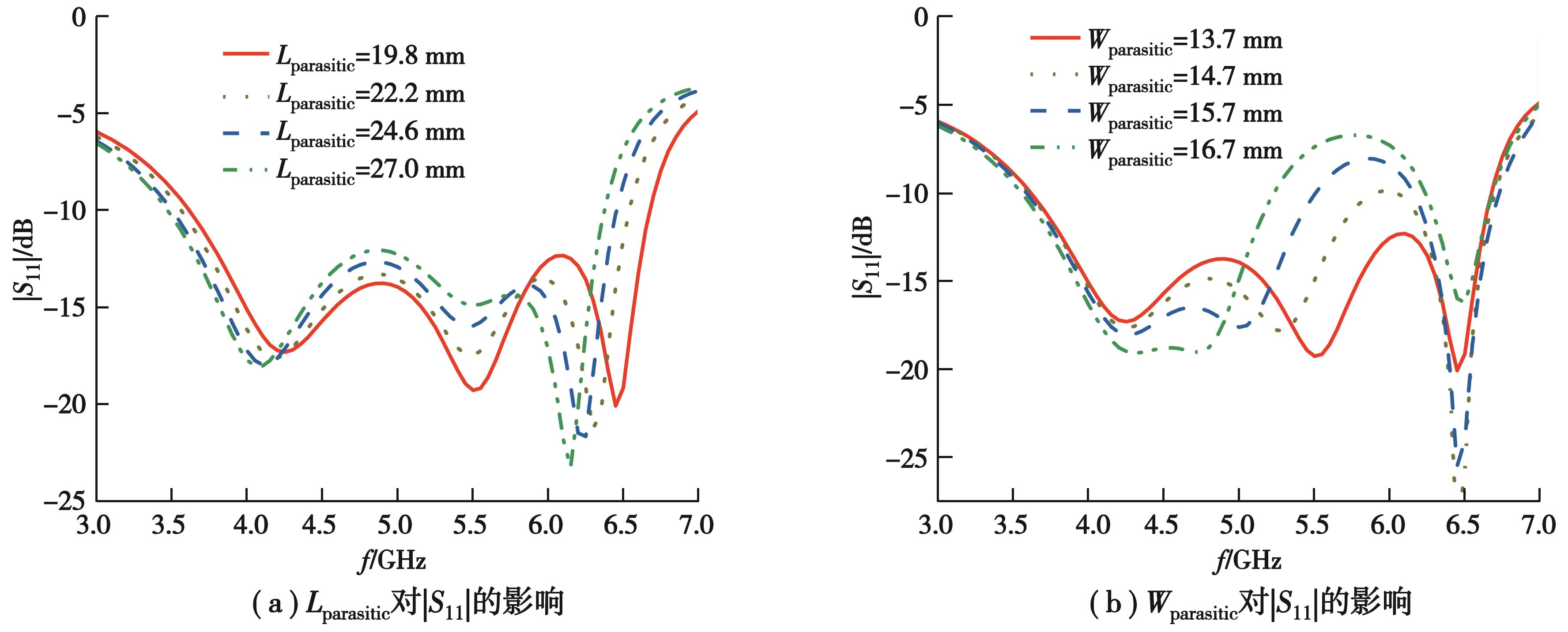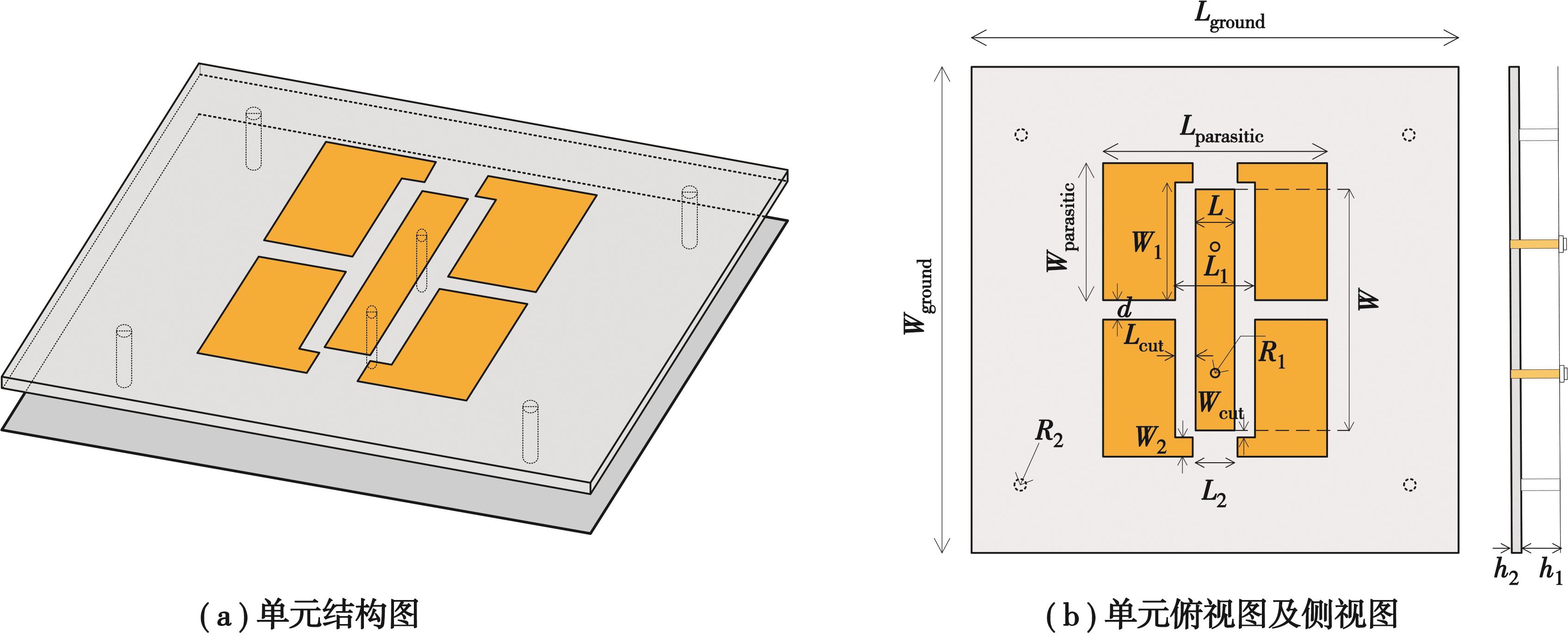 Abstract:To overcome the inherently narrow bandwidth of conventional microstrip antennas, this work proposes a wideband microstrip patch antenna using an L-shaped parasitic structure. The antenna consists of a main radiating patch and L-shaped parasitic elements, with an overall size of 0.83λ?×0.83λ?×0.083λ?, where λ? denotes the free-space wavelength at the 5 GHz center frequency. The main patch operates in the fundamental transverse magnetic (TM10) mode, while multiple resonances are introduced via electromagnetic coupling with the parasitic elements, thereby significantly extending the bandwidth. A Rogers 5880 substrate with a relative permittivity of 2.2 and a loss tangent of 0.000 9 was used to reduce the quality factor. A 180° out-of-phase differential feeding scheme was applied to suppress radiation pattern distortion. Simulation results show that the proposed antenna achieves a voltage standing wave ratio (VSWR) below 2 from 3.6 GHz to 6.6 GHz, corresponding to a 60% fractional bandwidth—six times wider than that of traditional microstrip designs. The antenna exhibits a peak gain of 9.8 dBi at 6.2 GHz, with gain variation within 1.5 dB across the operating band. The main beam remains stable, with a pointing deviation within 5°, and cross-polarization levels remain below -15 dB over 3.6 GHz to 6.3 GHz, reaching as low as -38 dB at the center frequency. This single-layer configuration achieves both broadband and high-gain performance, demonstrating strong potential for broadband wireless applications, including 5G communication and Wi-Fi systems.