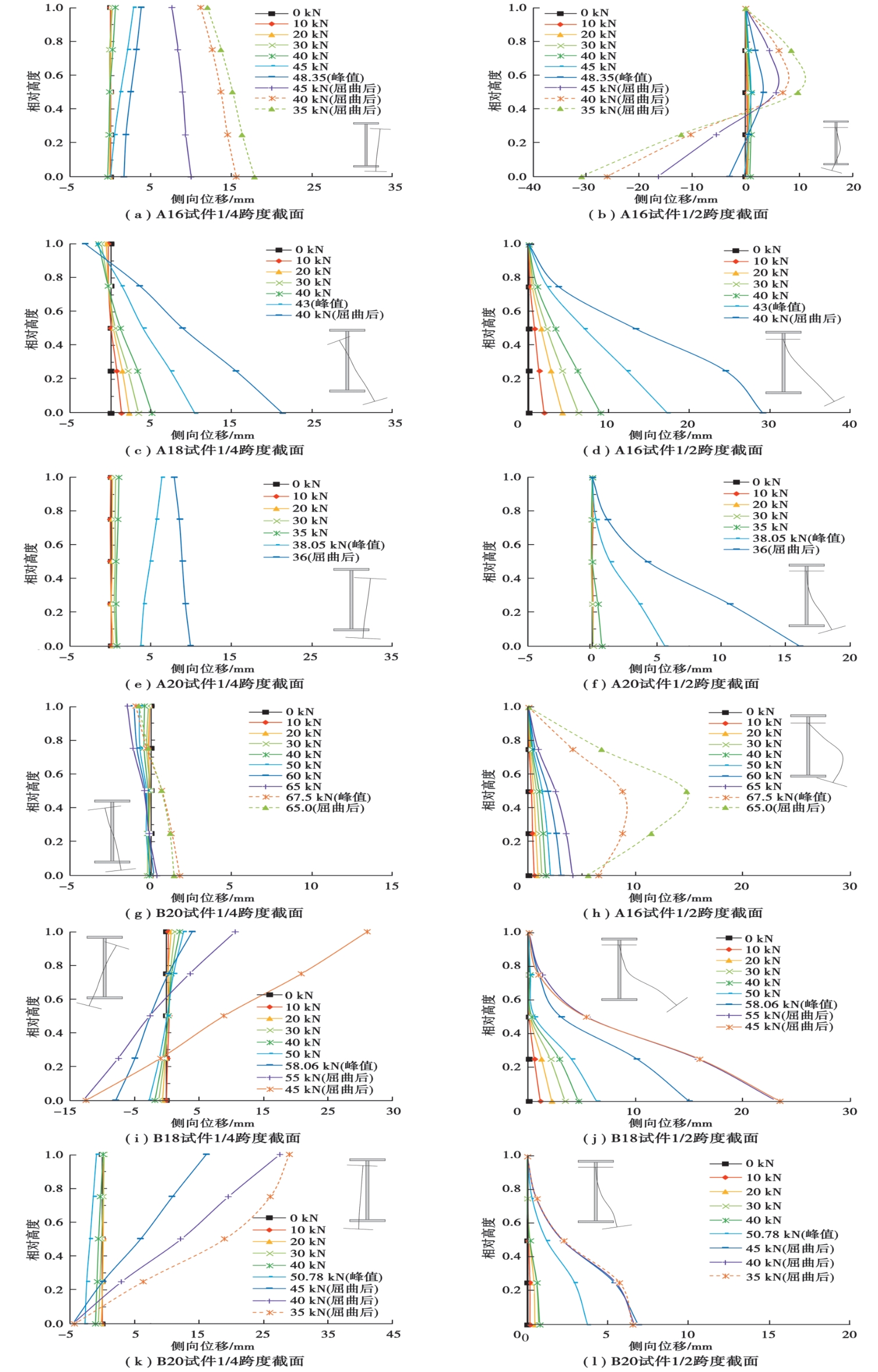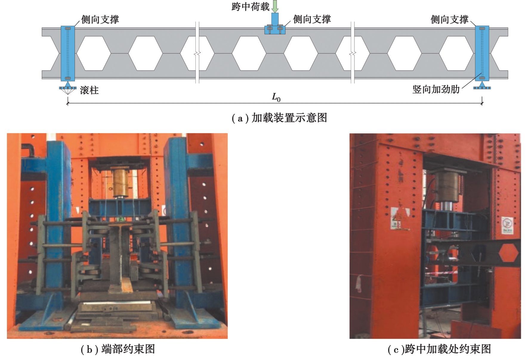 To investigate the distortional buckling performance of castellated beams, six castellated beam specimens were subjected to static load at the mid-span. The corresponding failure modes, load-vertical displacement responses, and web deformed shape curves of specimens were obtained. The results indicate that all six specimens failed in a distortional buckling mode. Specifically, the compressive flange of the entire specimens exhibited an S-shaped curve upon failure. Meanwhile, out-of-plane bulging deformation occurred in the web post section at the mid-span loading location. With the increase of castellated beam length, both the initial stiffness of the load-vertical displacement curve and the critical distortional buckling capacity reduced. Results of the distortional buckling strengths obtained from the experiments were further compared with the predications calculated using the modified method suggested by AS4100, AISC, and Nethercot and Trahair. The comparison results show that the predications of the AS4100 method and the Nethercot and Trahair approach are in good agreement with the test results.