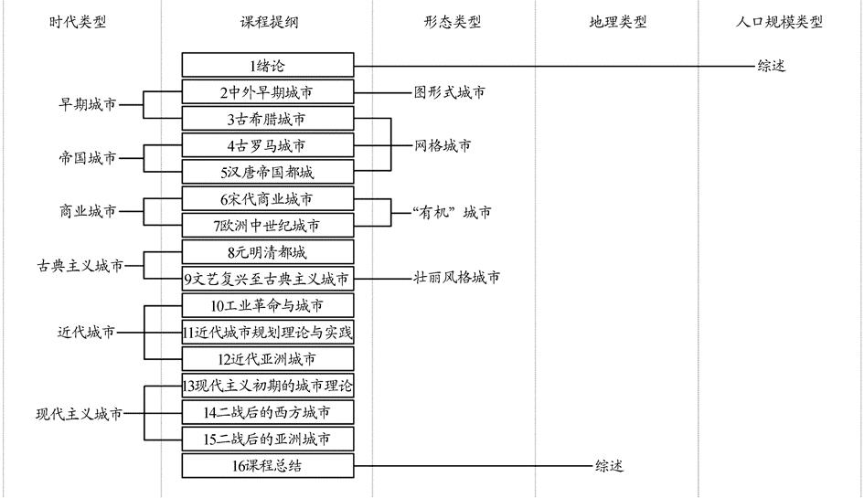 摘要:城市规划专业的城市史课程知识点时空跨度大且条目纷杂。通过教学实践及学生反馈发现,仅依靠现行教材以编年史为主线的教学结构,不足以使学生对古今中外的知识形成系统性认识,也难以使学生立体地把握城市史的发展脉络,将城市史知识与当下城市设计实践有效融合。为解决这些问题,提出构建城市史课程的知识体系。参考《中国建筑史》教材以编年史为经、以建筑功能类型为纬的结构框架,在城市史教学中加入以城市类型为轴的横向框架,对不同时代、不同地域的城市进行分类及比较,并进一步分析中外经典城市研究中的各种城市类型的特征及适宜的融入形式,包括城市的时代类型、形态类型、地理类型、人口规模类型和职能类型,形成综合多种分类方法、各取其长的“城市类型知识体系”。城市的时代类型是知识体系构建的基础;城市的形态类型及地理类型适宜作为知识体系的主轴;城市的人口规模类型适宜放入绪论部分;城市的职能类型适宜与具体的城市实例教学结合。将此知识体系应用于城市史课程教学实践,取得了初步效果。