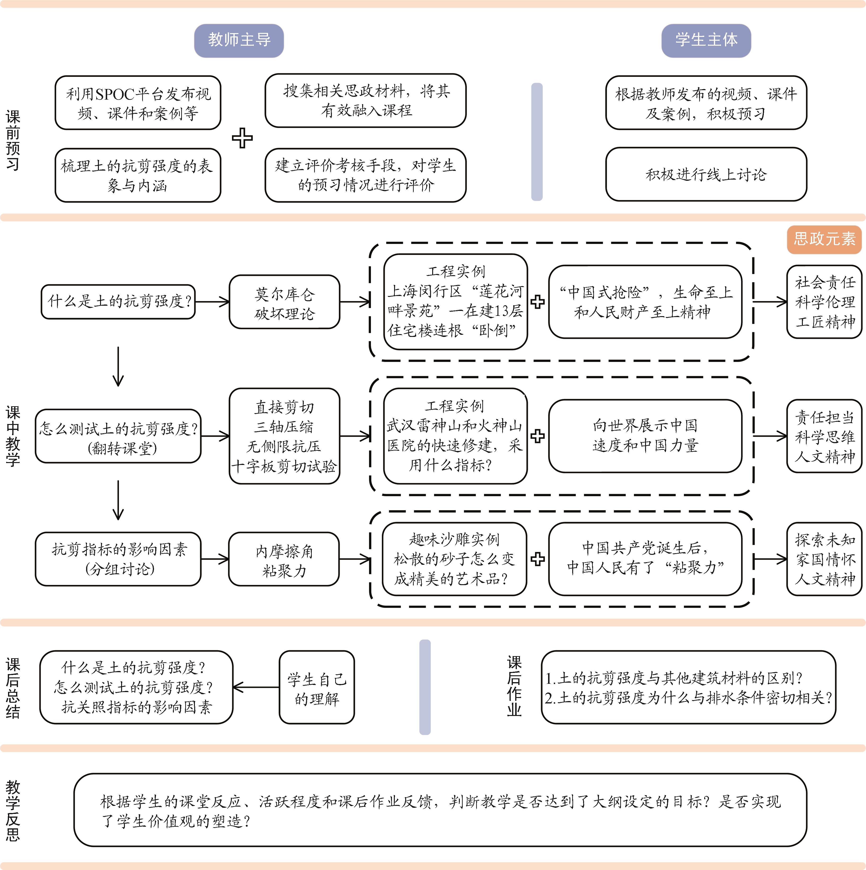 摘要:土力学与地基基础作为一门典型的土木工程专业基础课程,蕴含着丰富的思政元素,深入挖掘该课程中的思政元素,有助于实现全员育人、全程育人、全方位育人。结合《高等学校课程思政建设指导纲要》,将课程中的一级思政元素归纳为家国情怀、传统文化和科学创新三方面。通过名人故事和典型工程案例,展示了相关思政元素在土力学与地基基础课程中的具体体现。围绕土的抗剪强度理论、试验及工程应用等,设计了融入思政元素的专业课程教学方法,实现了专业知识与思政教育的有机融合。这种教学模式不仅提高了教学效果,而且培养了学生的爱国情怀、科学精神和创新精神,为学生的全面发展奠定了坚实基础。