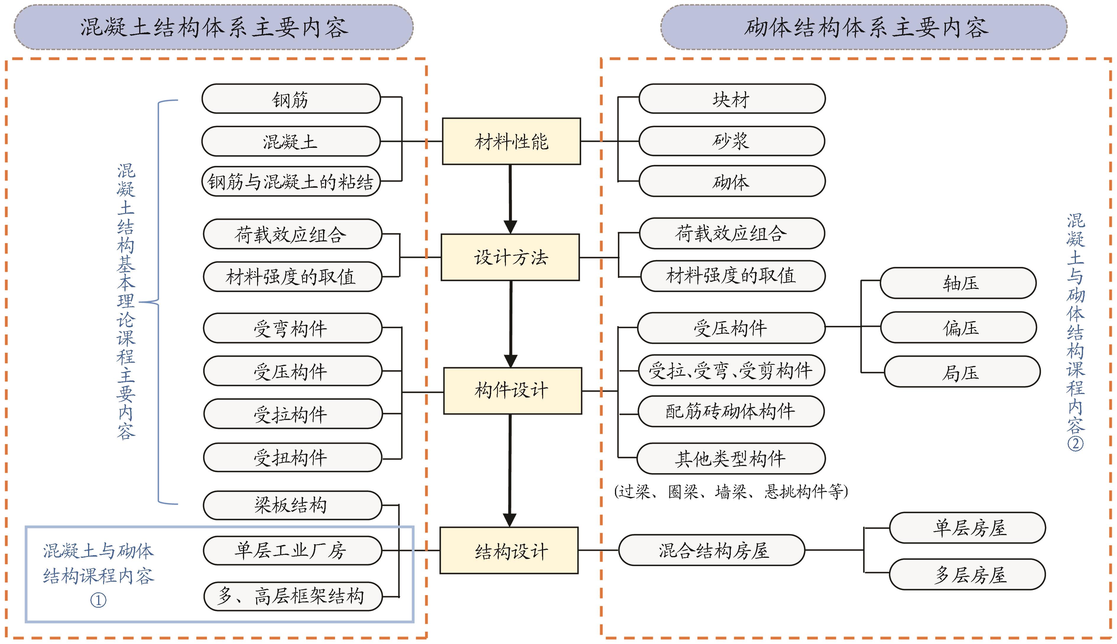 摘要:混凝土与砌体结构是土木工程专业的核心课程,主要由混凝土结构设计与砌体结构设计两部分组成,两者既相对独立又具有内在统一性。文章分析了混凝土与砌体结构的课程内容特点,明确了其与先修课程混凝土结构基本理论的内在关系,凝练总结了适用于混凝土结构体系与砌体结构体系的统一知识结构主线。提出了砌体结构与混凝土结构主要内容的比较点、比较目标,以及融合课堂主讲、专题讨论、课后分析、翻转课堂等方式于一体的比照式教学法。同时,构建了以理想信念教育、职业素养教育与科技创新教育为主的课程思政方法,并给出了针对具体课程内容的思政切入点与思政目标。