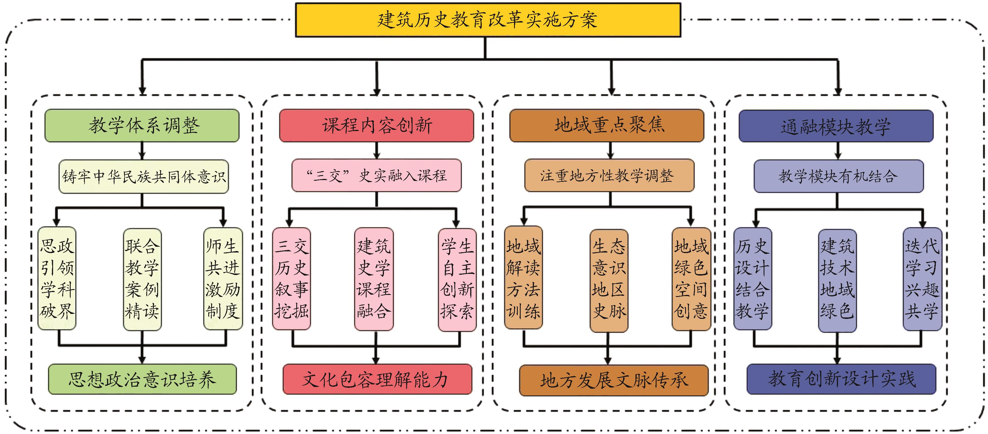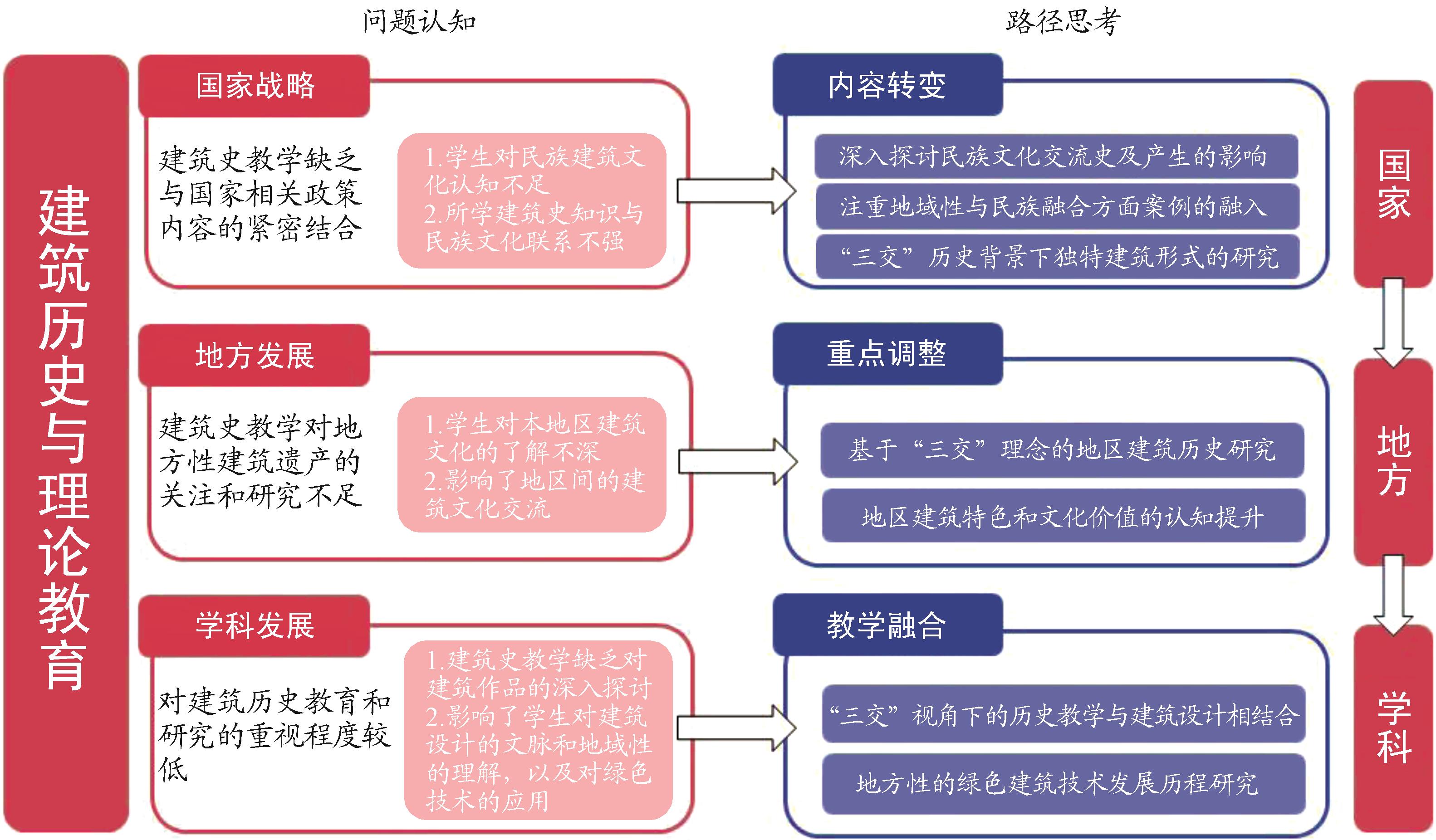 摘要:为铸牢中华民族共同体意识,将民族交流交往交融(以下简称“三交”)切实融入本科教育培养全过程,以建筑学专业建筑历史教学模块为切入,通过坚持“中华民族共同体”目标导向,审视当前教育现状,结合课程特点提出了三大改革策略:以“三交”史与建筑史课群为融通的内容新解,以地方性历史命题为训练的创新设计,以地域绿色为基础学习的可持续回应。研究认为,建筑历史模块教学改革应着眼于文脉知识的实际应用和跨领域能力培养,为建筑领域培养兼具传统文化理解能力和社会责任感的创新型、技能型人才。