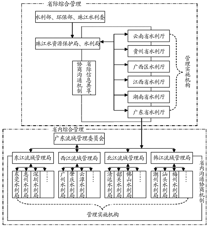 二、中国江河管理体制改革典型模式分析 (一) 区域协调为主,流域管理为辅—珠江管理体制改革模式珠江由西江、北江、东江和珠江三角洲诸河组成,流域总面积45.26万平方公里。其干流西江发源于云南省东北部,流经云南、贵州、广西、广东四省区及香港、澳门特别行政区。北江和东江水系几乎全部在广东境内。由于珠江支流繁多,流经省市众多,在广东境内流域面积大的原因,对于珠江的管理一直有着两个层次:一是省际层次,二是广东省内层次。“十一五”以来,特别是随着泛珠战略和《珠江三角洲地区改革发展规划纲要》的实施,珠江省际和省内管理都有了更好的平台,并逐步建立起省际、地市两个层次的区域行政管理协调机制,从而形成了“区域协调为主,流域管理为辅”的珠江管理体制模式。具体而言,该模式具有以下特征。