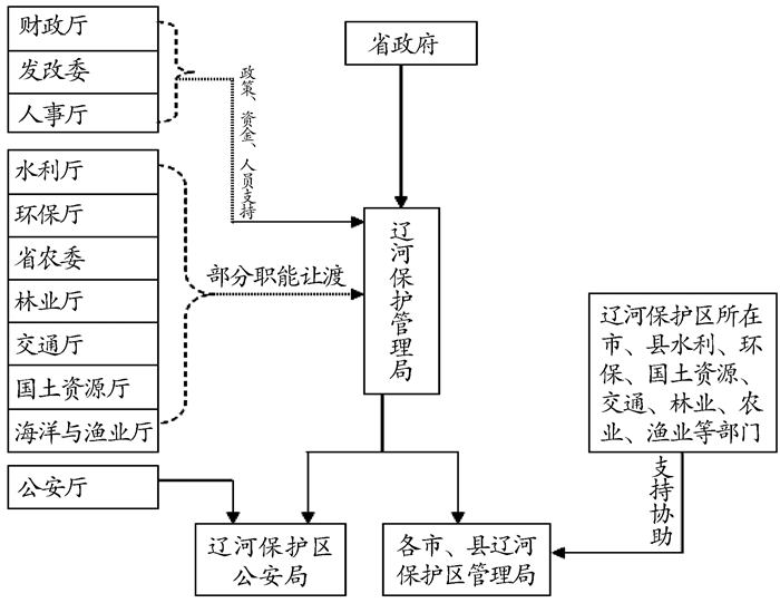 (二) 流域管理为主,区域行政管理为辅—辽河管理体制改革模式辽河干流全长538公里,全部在辽宁省境内,沿岸城市密集,且产业结构以重工业为主,污染严重。2010年5月,辽宁省委、省政府划定了辽河保护区,成立了辽河保护区管理局,对辽河保护区实行统一管理。根据改革方案,辽河保护区管理局,为正厅级建制,省政府直属事业编制,专门管理辽河保护区,推进辽河治理保护工作。这是中国首次出现的河流“划区设局”,它意味着“流域管理为主,区域行政管理为辅”的辽河管理体制的诞生。具体而言,该体制具有以下特征。