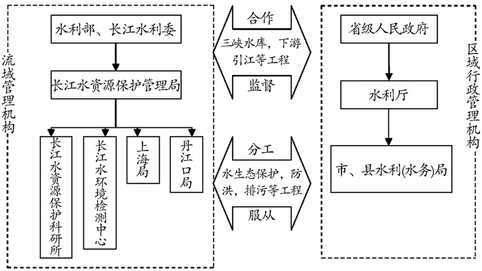 (三) 流域管理与区域行政管理并重—长江管理体制改革模式长江是中国第一大河流,长江流域从西到东约3 219公里,由北至南966公里余,流经11个省(自治区、直辖市)。针对长江流域贯穿省份地域多,对中国经济社会影响重大的特征,长江水资源管理主要是国家统一管理与区域行政区域管理相结合的管理模式。长江水利委员会(简称长江委)作为水利部派驻长江的流域机构,和沿江各地方水行政主管部门相结合,对长江流域进行共同治理。“流域管理与区域行政管理并重”的长江管理体制具有以下特征。