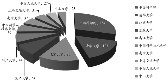 中国科学院共有44个下属科研院所获评优博论文,总数达184篇,占获奖论文总数的14.39%,并且相比排在第二和第三位的清华大学和北京大学,其获奖总数都在2倍左右。分析其原因,一方面因为中国科学院博士生培养规模庞大,2011年共有4 832人获得博士学位,相比其他高校和科研单位,评选基数较大;另一方面,中国科学院拥有320余位两院院士、4 200余名博士生导师,其以研究所为基础的高水平导师队伍和一流科研实践条件,为培养优秀博士生提供了肥沃的土壤。