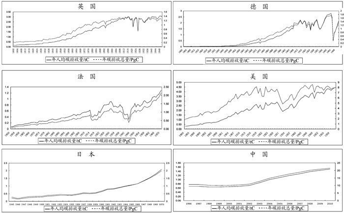 本研究由于数据来源的限制,没有剔除两次世界大战对6国的影响,同时人均碳排放也并非基于城市人口的人均碳排放,因此并不能完全反映城市化与碳排放之间的关系,这在一定程度上影响了检验的结果。如何将各国的发展模式、能源结构、城乡差距等因素考虑进去,将是下一步研究的重点。
