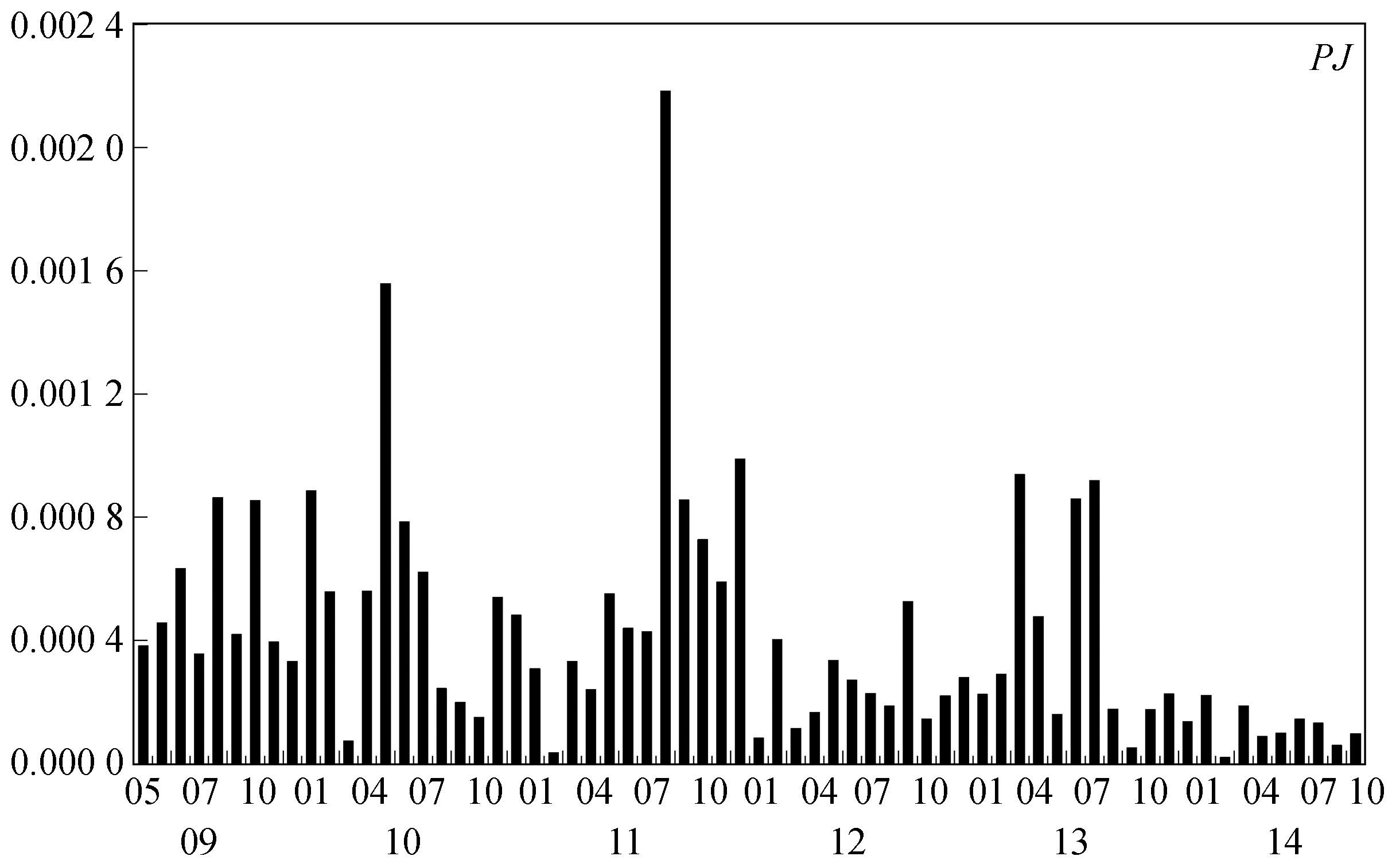 图 2 上证综指跳跃变差 (RJ) 月度图 |