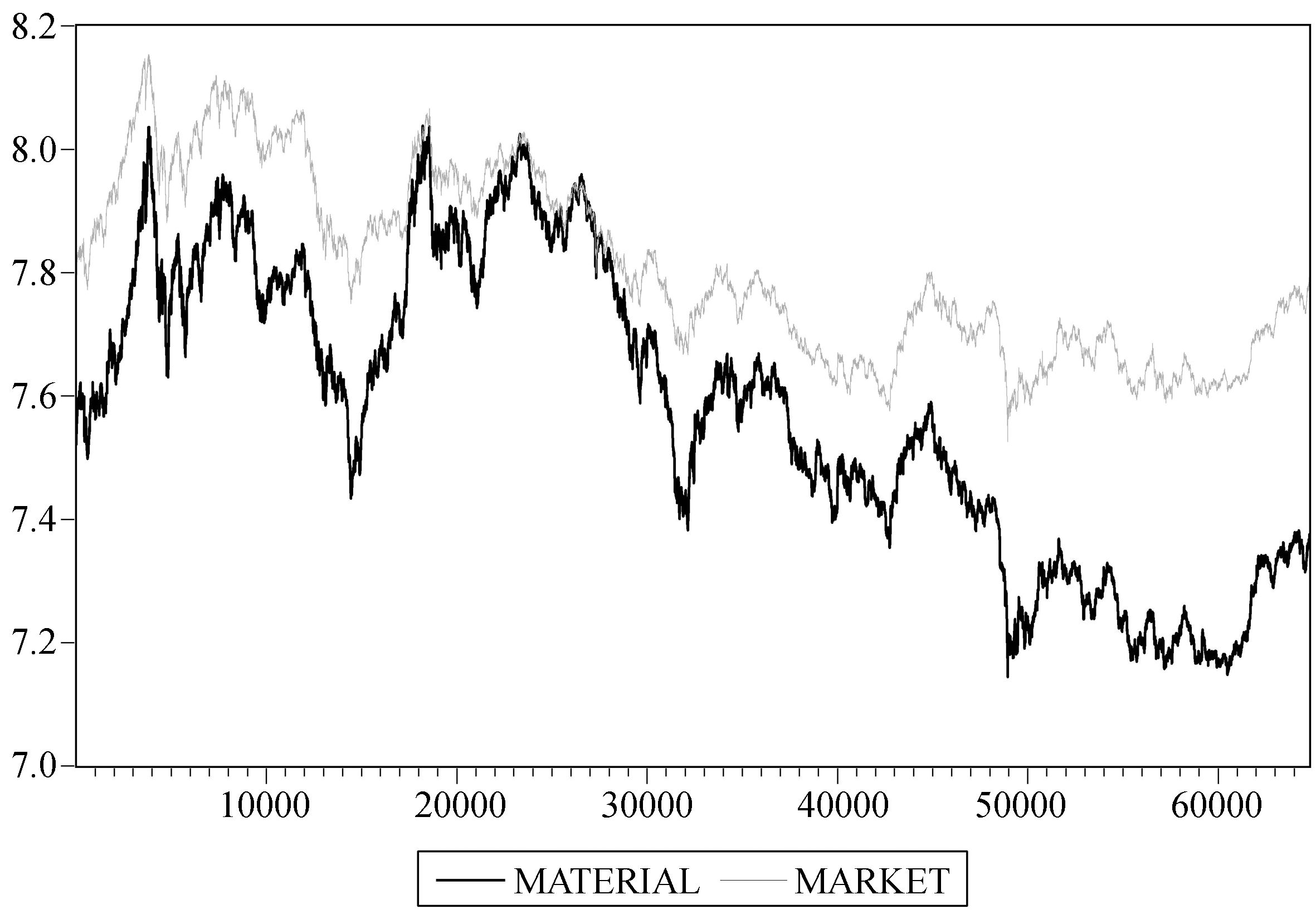 图 4 上证综指 (MARKET) 和材料指数 (MATERIAL) 走势图 |