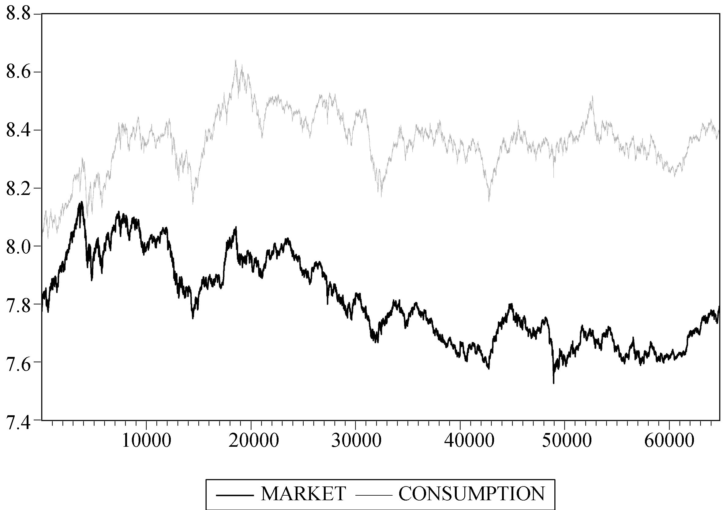 图 5 上证综指 (MARKET) 和消费指数 (CONSUMPTION) 走势图 |