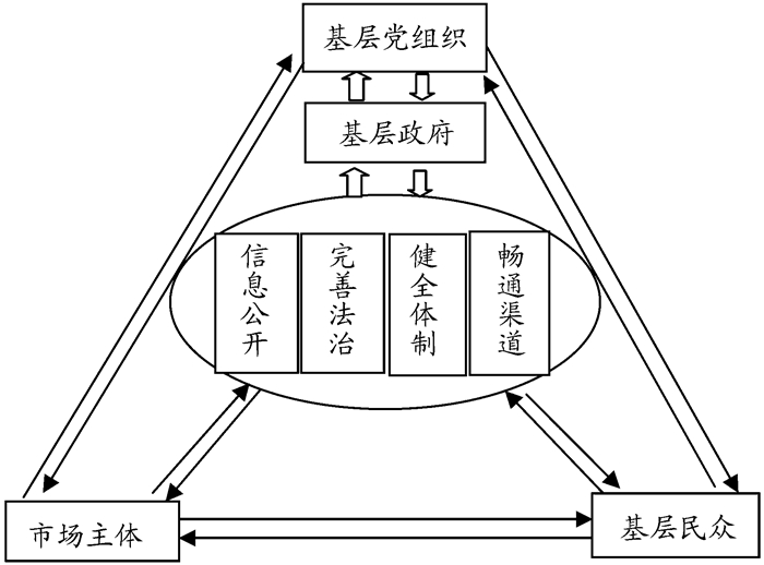 首先,执政党要完善顶层设计以厘清利益关系,为基层腐败治理提供基本条件和辨识规则,这是由执政党作为政治核心和领导核心的地位决定的。通过顶层设计,发挥执政党统揽全局、协调各方的核心优势,理顺基层党组织、基层政府、市场系统和社会系统的活动边界,防止市场主体、普通民众与基层党政权力勾肩搭背,为构建“亲”“清”政商关系、和谐政社关系奠定基础前提。如果各大主体之间的活动边界没有得到合理界定,基层党组织领导权和基层政府行政权很容易越过市场领域和社会系统的界限,与市场和社会结成错综复杂的利益关系网,干扰市场机制正常运行和社会健康发育。同样,市场主体和普通民众也很容易为了谋取私人利益而主动与委托权力交好,推动委托权力偏离公共规则运行。为此,必须通过构建和完善治理体系,切实转变基层党组织的管理方式和服务方式,完善基层政府运行体制机制,为加快经济社会发展提供政治支持和制度保障;加强市场主体培育,推进市场机制完善,健全市场体系规则,使资源配置在市场决定作用和政府管理服务作用中形成最优组合;提高基层民众素质,培育并规范社会组织发展,着力保障广大民众基本权益,使社会充满活力又和谐有序。在很大程度上,基层腐败治理成效取决于基层党组织、基层政府、市场主体和基层民众之间的权能边界确定及互动规则。无疑,完善顶层设计是推进基层治理体系和治理能力现代化的关键之举,是治理基层腐败的治本之策。