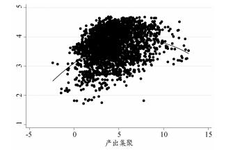 图 1 产出集聚与PM2.5散点分布和拟合曲线 |