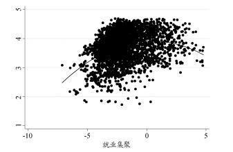 图 2 就业集聚与PM2.5散点分布和拟合曲线 |